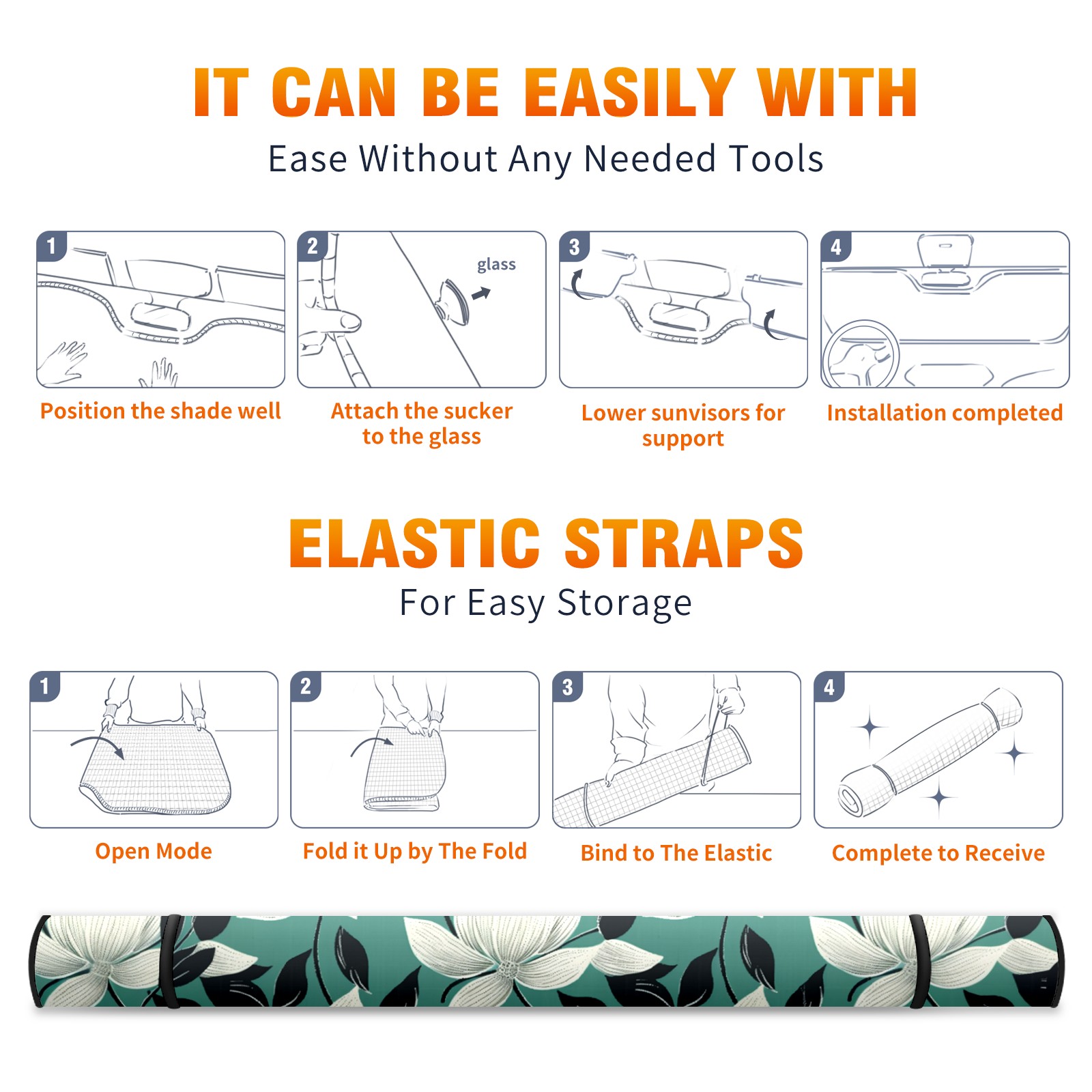 <b>ZXIVGOQFR Foldable Premium Car Windshield Sunshade is your great solution to reduce your car’s interior temperature dramatically! This is definitely a must-have item for your summer travel! </b> <br> ●<b>Size: 63"L x 33.5"W </b> <br></b> ●<b>Blocking Uv Rays & Heat Insulation<br></b> Our vehicle sunshade provides effective UV, sun, and summer heat protection .Maintains dashboards by preventing fading and cracking <br> ●<b>Easy-To-Store Folding Design Makes Storage Convenient <br></b> ZXIVGOQFR car sunshades come with removable suction cups and elastic bands that you can install easily and quickly, and the removable suction cups will not leave any marks on your windows when removed. Within seconds, windshield visor can be installed and removed. When not in use,the front windshield can be easily and effectively placed on the door pocket or the dashboard, which is beautiful and does not take up space in the car.<br> <br> <b>PUT UP A 'PROTECTIVE UMBRELLA' FOR YOUR BELOVED CAR!</b>