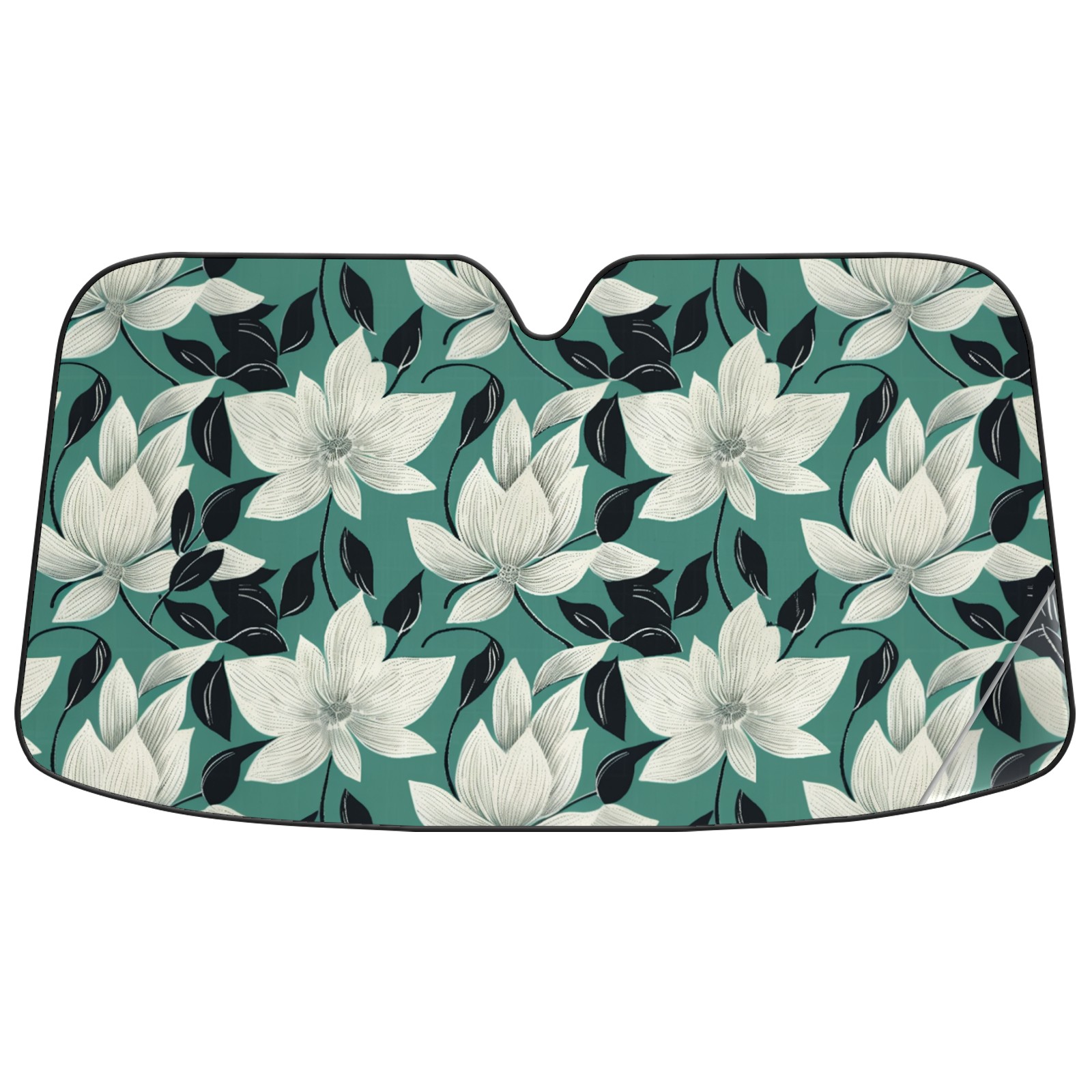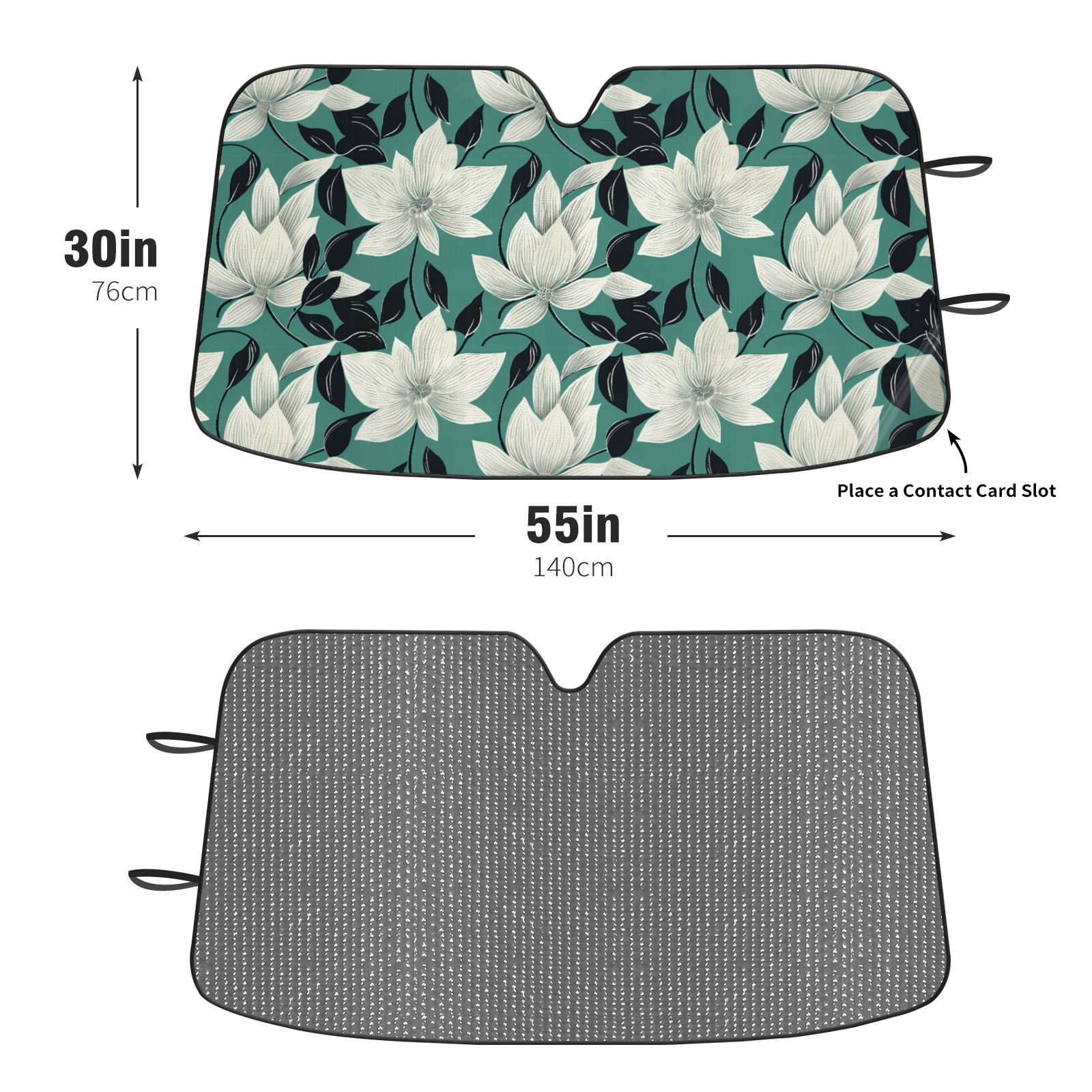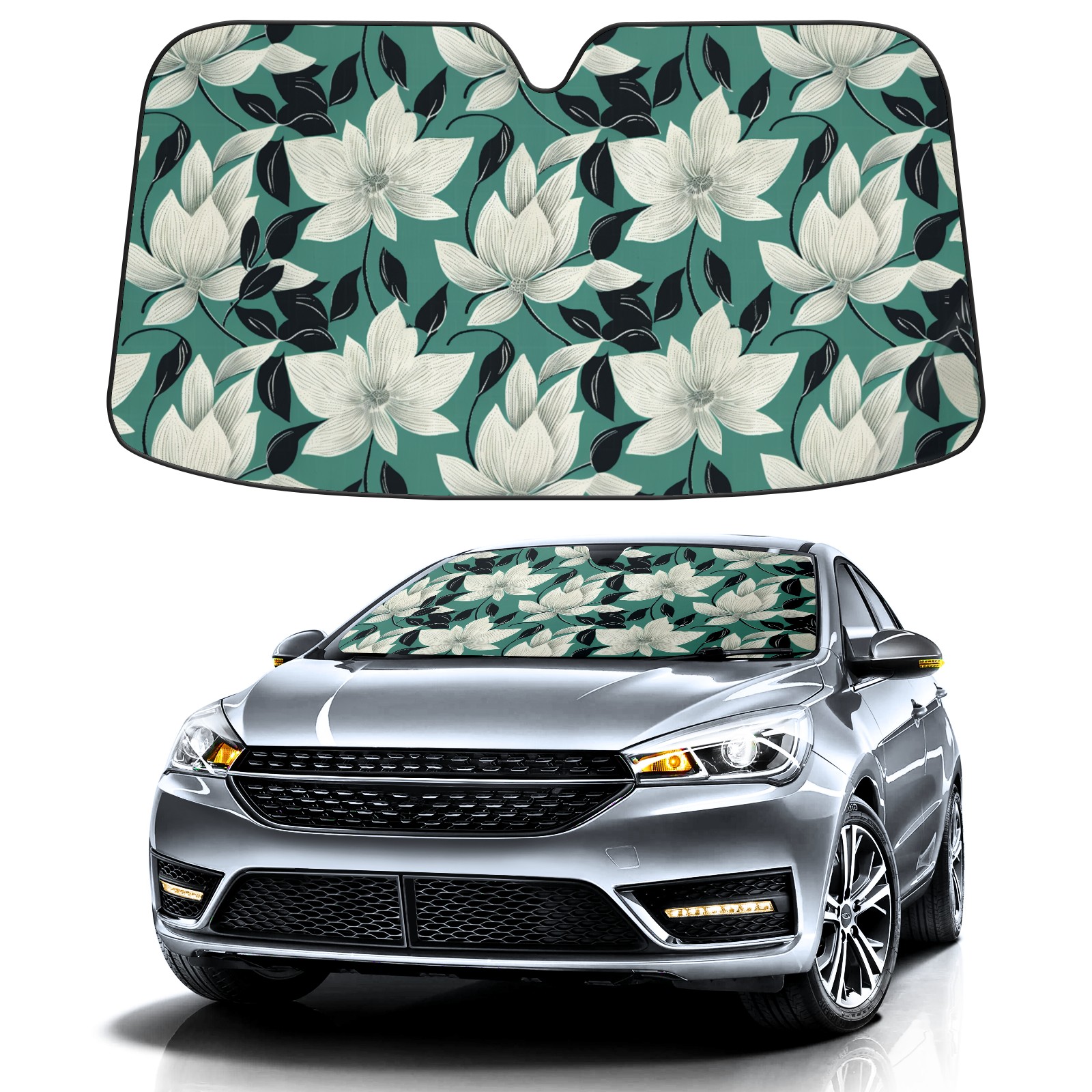 Car Windshield Sun Shade for Front Window Teal White Floral Foldable Vehicle Windshield Car Sun Visor Covers Automotive Window Protector Car Privacy Sun Blocker