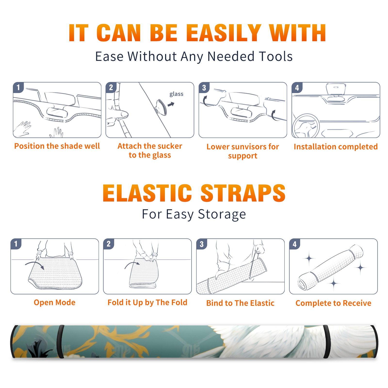 • <b>ZXIVGOQFR Foldable Premium Car Windshield Sunshade is your great solution to reduce your car’s interior temperature dramatically! This is definitely a must-have item for your summer travel! </b> <br> ●<b>Size: 63"L x 33.5"W </b> <br></b> ●<b>Blocking Uv Rays & Heat Insulation<br></b> Our vehicle sunshade provides effective UV, sun, and summer heat protection .Maintains dashboards by preventing fading and cracking <br> ●<b>Easy-To-Store Folding Design Makes Storage Convenient <br></b> ZXIVGOQFR car sunshades come with removable suction cups and elastic bands that you can install easily and quickly, and the removable suction cups will not leave any marks on your windows when removed. Within seconds, windshield visor can be installed and removed. When not in use,the front windshield can be easily and effectively placed on the door pocket or the dashboard, which is beautiful and does not take up space in the car.<br> <br> <b>PUT UP A 'PROTECTIVE UMBRELLA' FOR YOUR BELOVED CAR!</b>