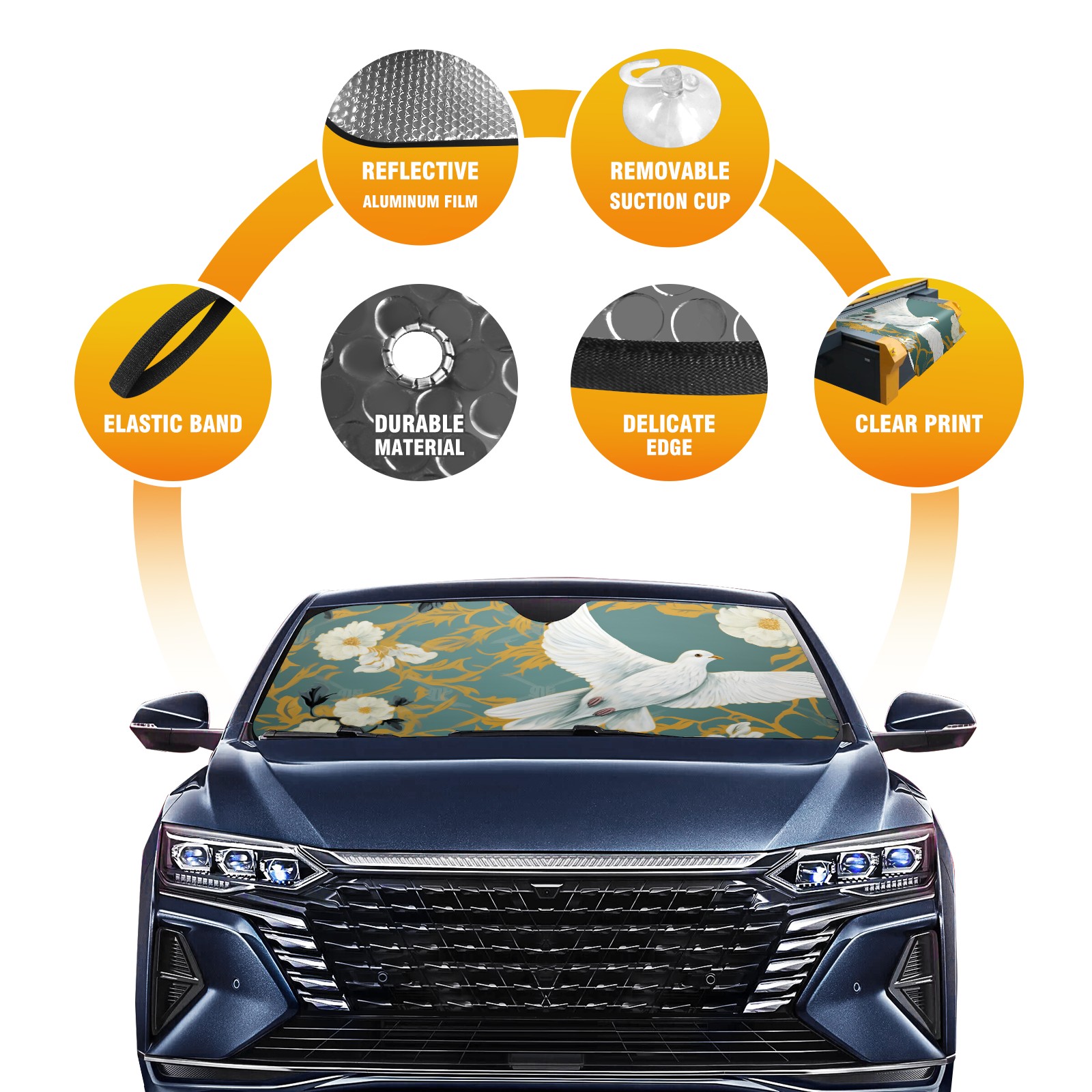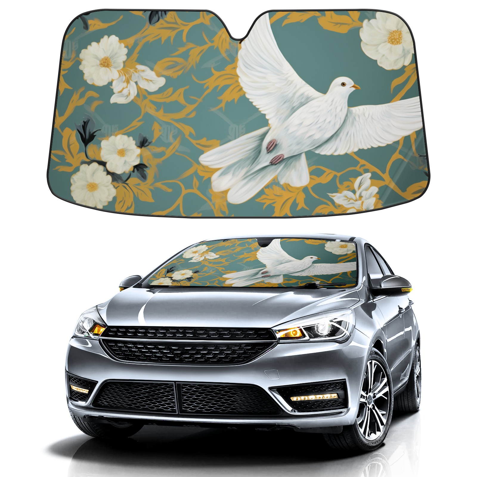 Car Windshield Sun Shade for Front Window Dove Theme Flower Foldable Vehicle Windshield Car Sun Visor Covers Automotive Window Protector Car Privacy Sun Blocker