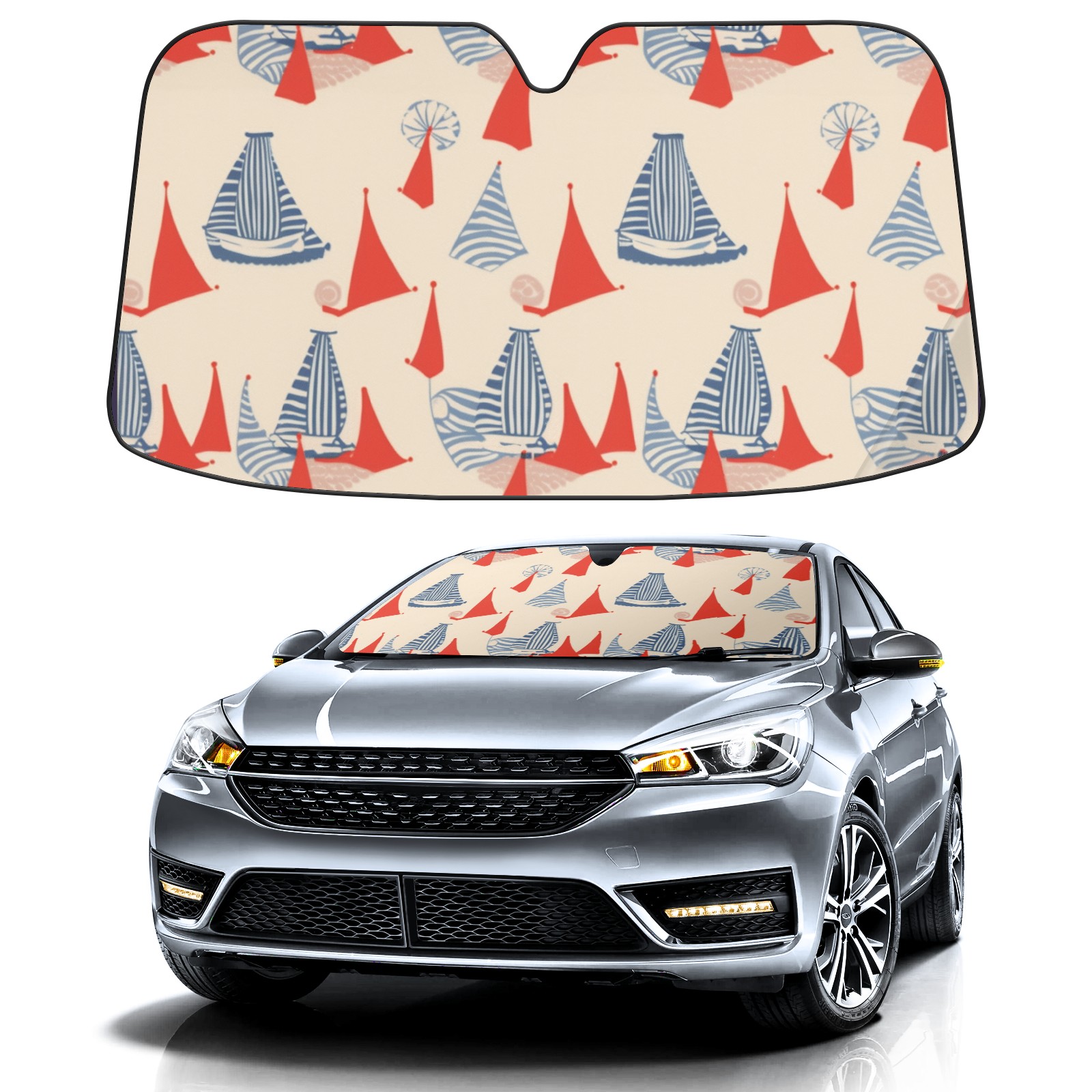 Car Windshield Sun Shade for Front Window Canvas Sailboats Foldable Vehicle Windshield Car Sun Visor Covers Automotive Window Protector Car Privacy Sun Blocker