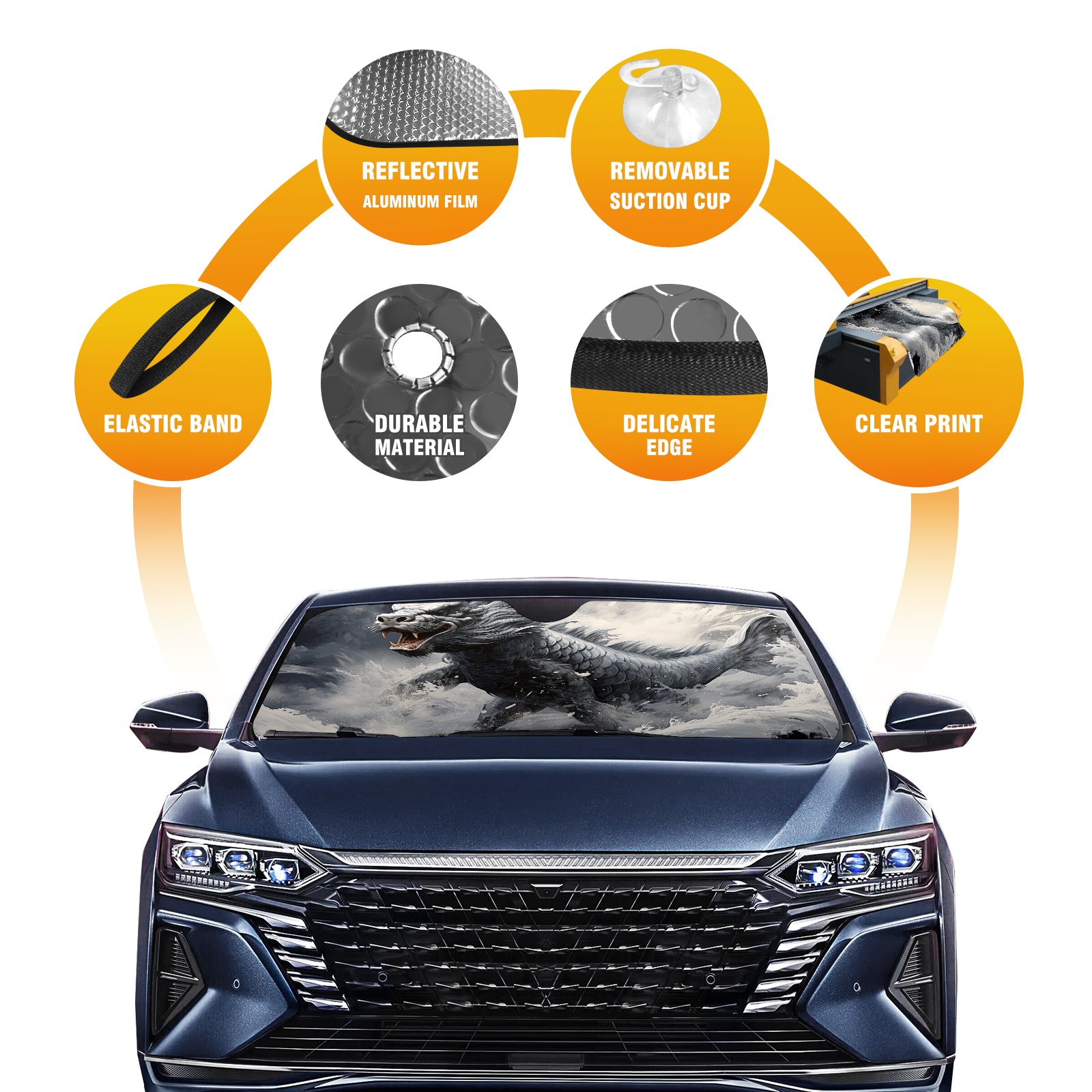 <b>ZXIVGOQFR Foldable Premium Car Windshield Sunshade is your great solution to reduce your car’s interior temperature dramatically! This is definitely a must-have item for your summer travel! </b> <br> ●<b>Size: 63"L x 33.5"W </b> <br></b> ●<b>Blocking Uv Rays & Heat Insulation<br></b> Our vehicle sunshade provides effective UV, sun, and summer heat protection .Maintains dashboards by preventing fading and cracking <br> ●<b>Easy-To-Store Folding Design Makes Storage Convenient <br></b> ZXIVGOQFR car sunshades come with removable suction cups and elastic bands that you can install easily and quickly, and the removable suction cups will not leave any marks on your windows when removed. Within seconds, windshield visor can be installed and removed. When not in use,the front windshield can be easily and effectively placed on the door pocket or the dashboard, which is beautiful and does not take up space in the car.<br> <br> <b>PUT UP A 'PROTECTIVE UMBRELLA' FOR YOUR BELOVED CAR!</b>