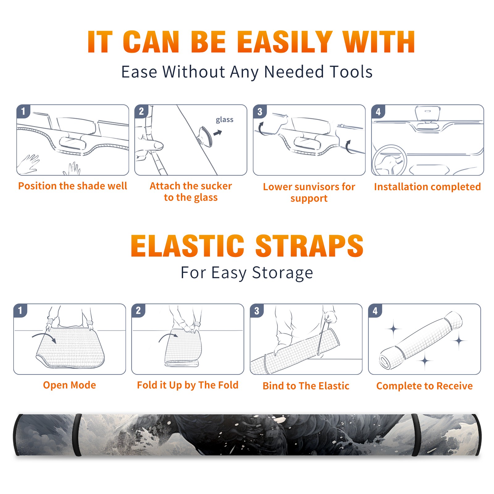 • <b>ZXIVGOQFR Foldable Premium Car Windshield Sunshade is your great solution to reduce your car’s interior temperature dramatically! This is definitely a must-have item for your summer travel! </b> <br> ●<b>Size: 63"L x 33.5"W </b> <br></b> ●<b>Blocking Uv Rays & Heat Insulation<br></b> Our vehicle sunshade provides effective UV, sun, and summer heat protection .Maintains dashboards by preventing fading and cracking <br> ●<b>Easy-To-Store Folding Design Makes Storage Convenient <br></b> ZXIVGOQFR car sunshades come with removable suction cups and elastic bands that you can install easily and quickly, and the removable suction cups will not leave any marks on your windows when removed. Within seconds, windshield visor can be installed and removed. When not in use,the front windshield can be easily and effectively placed on the door pocket or the dashboard, which is beautiful and does not take up space in the car.<br> <br> <b>PUT UP A 'PROTECTIVE UMBRELLA' FOR YOUR BELOVED CAR!</b>