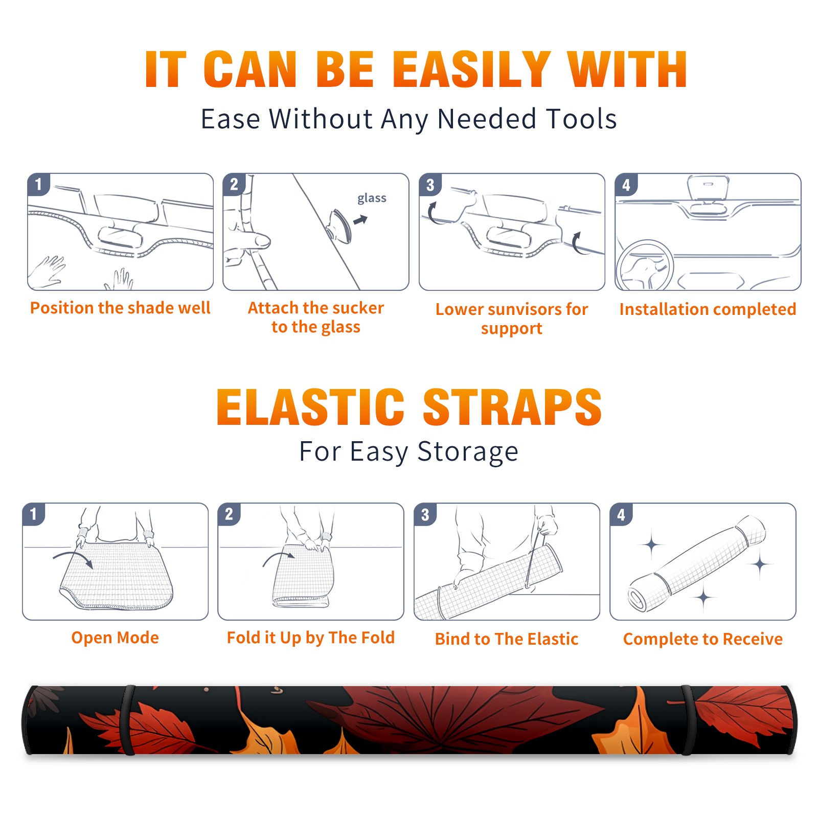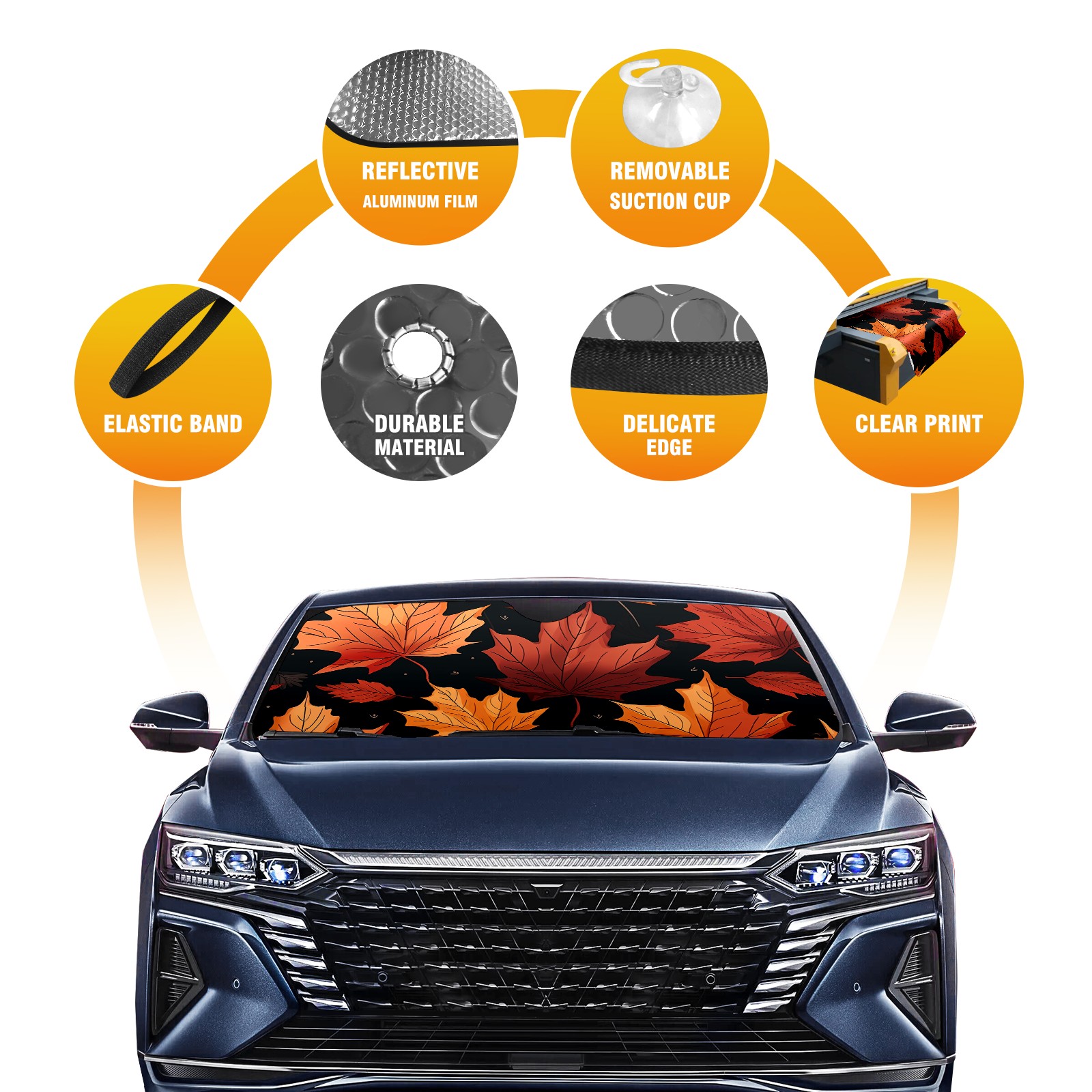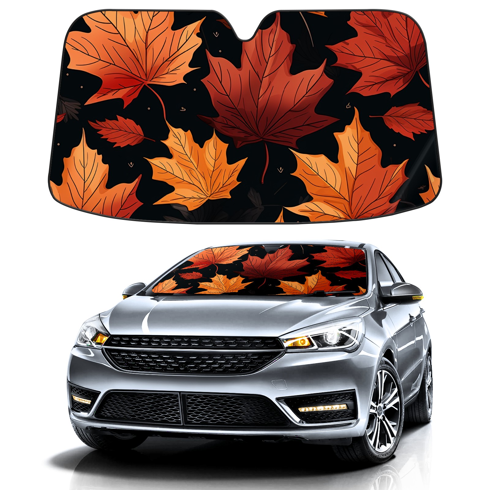 Car Windshield Sun Shade for Front Window Maple Leaves (1) Foldable Vehicle Windshield Car Sun Visor Covers Automotive Window Protector Car Privacy Sun Blocker