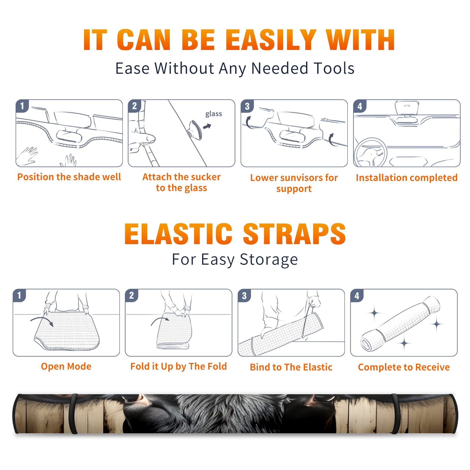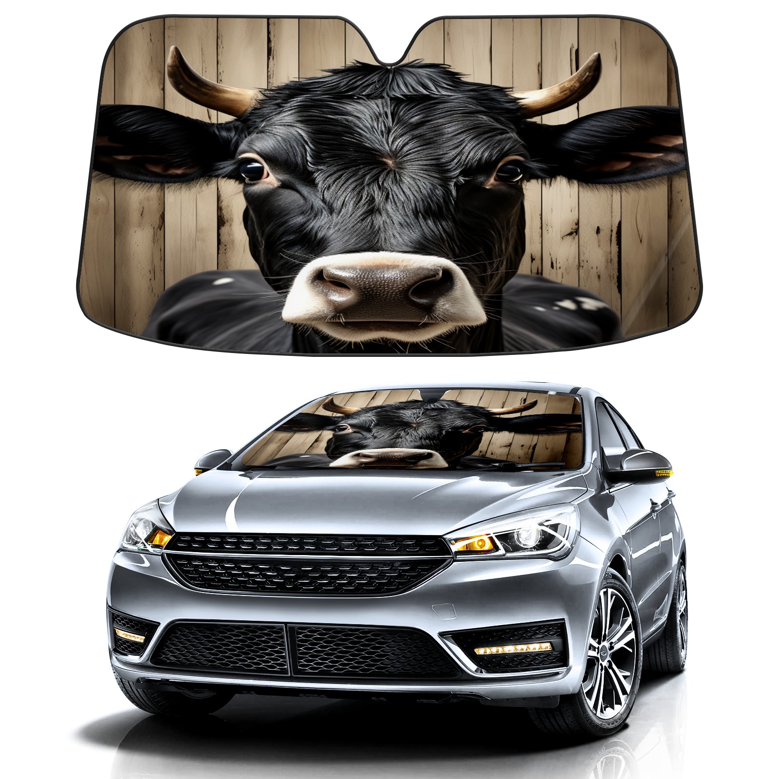 Car Windshield Sun Shade for Front Window Cow On Vintage Wood (3) Foldable Vehicle Windshield Car Sun Visor Covers Automotive Window Protector Car Privacy Sun Blocker
