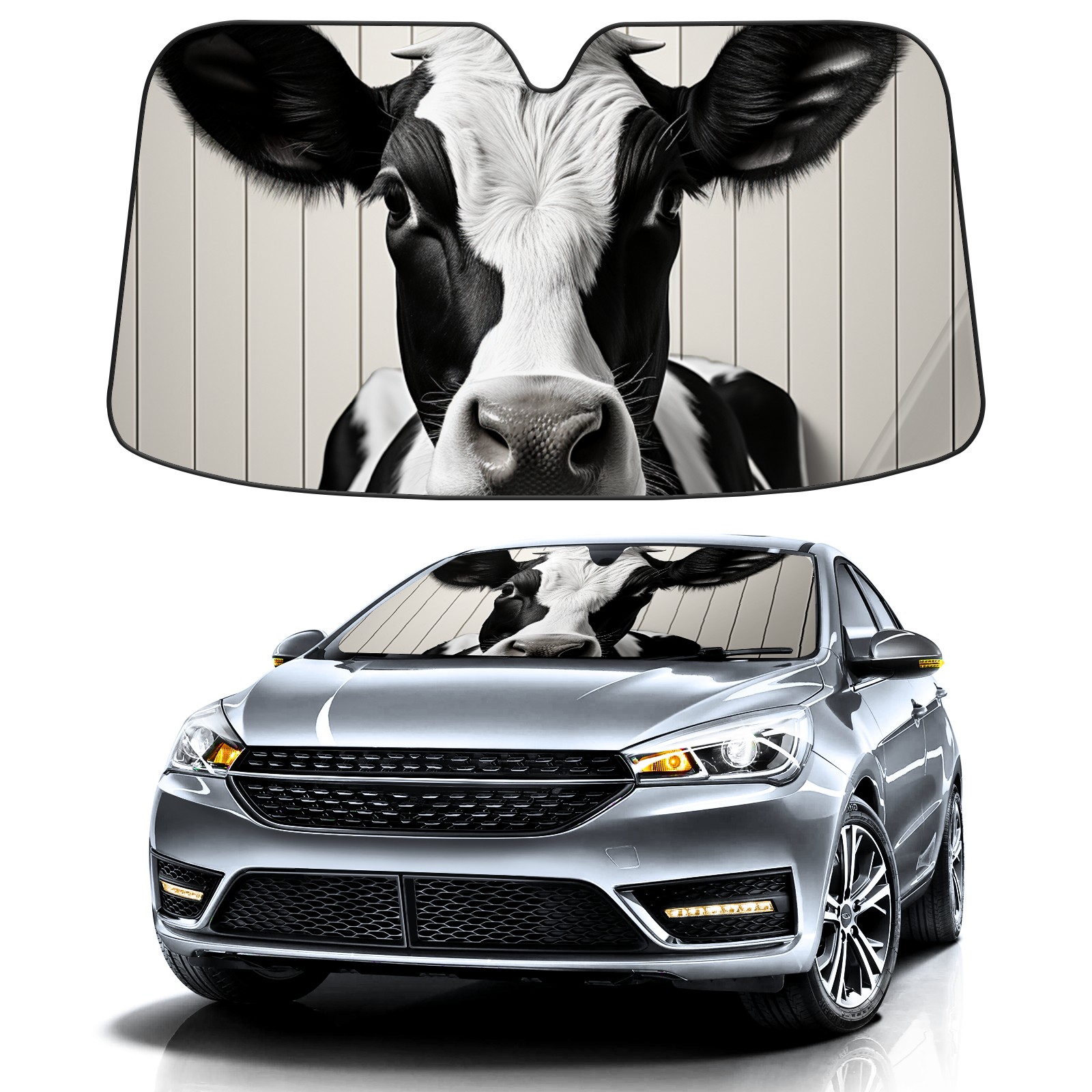Car Windshield Sun Shade for Front Window Cow On Vintage Wood (1) Foldable Vehicle Windshield Car Sun Visor Covers Automotive Window Protector Car Privacy Sun Blocker