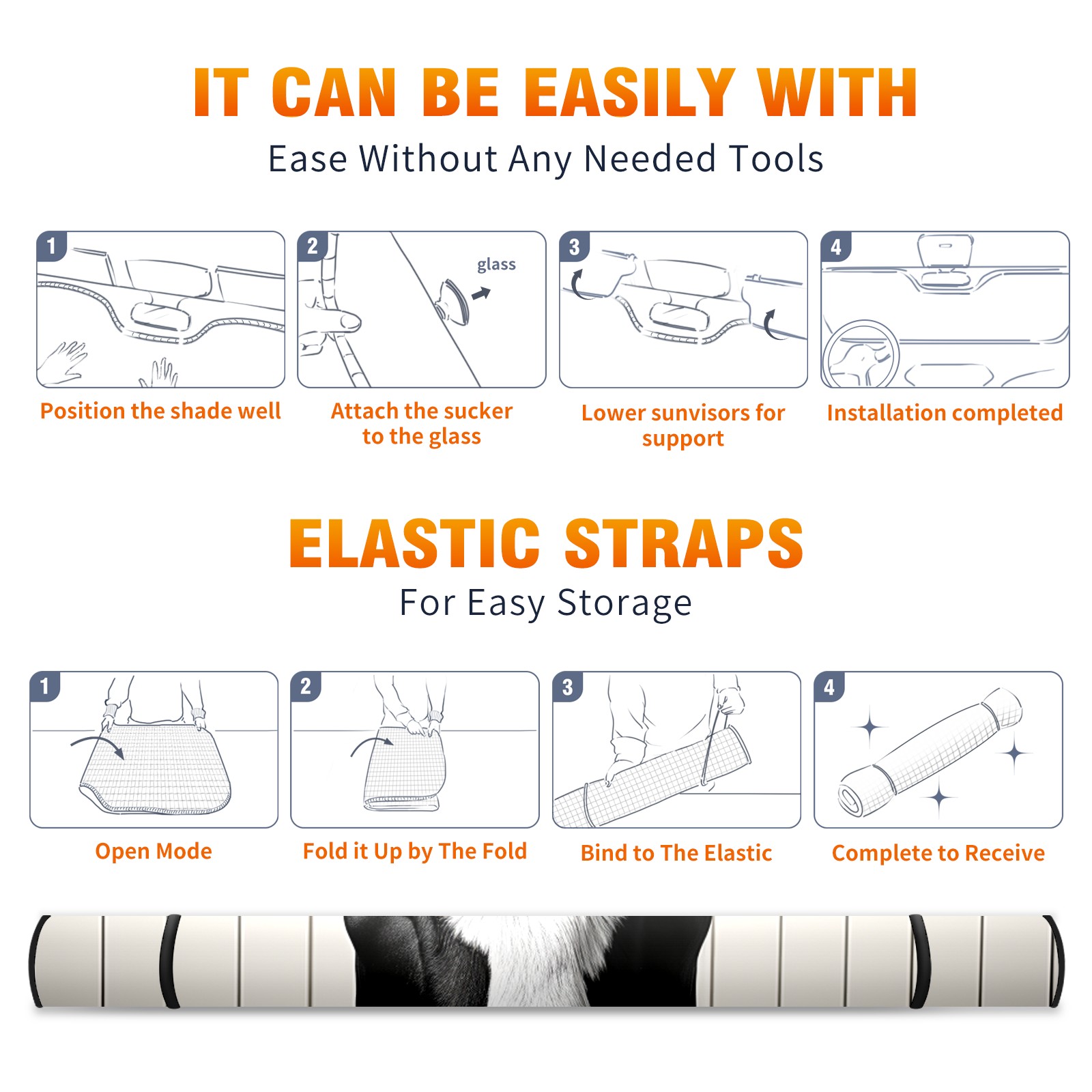 • <b>ZXIVGOQFR Foldable Premium Car Windshield Sunshade is your great solution to reduce your car’s interior temperature dramatically! This is definitely a must-have item for your summer travel! </b> <br> ●<b>Size: 63"L x 33.5"W </b> <br></b> ●<b>Blocking Uv Rays & Heat Insulation<br></b> Our vehicle sunshade provides effective UV, sun, and summer heat protection .Maintains dashboards by preventing fading and cracking <br> ●<b>Easy-To-Store Folding Design Makes Storage Convenient <br></b> ZXIVGOQFR car sunshades come with removable suction cups and elastic bands that you can install easily and quickly, and the removable suction cups will not leave any marks on your windows when removed. Within seconds, windshield visor can be installed and removed. When not in use,the front windshield can be easily and effectively placed on the door pocket or the dashboard, which is beautiful and does not take up space in the car.<br> <br> <b>PUT UP A 'PROTECTIVE UMBRELLA' FOR YOUR BELOVED CAR!</b>