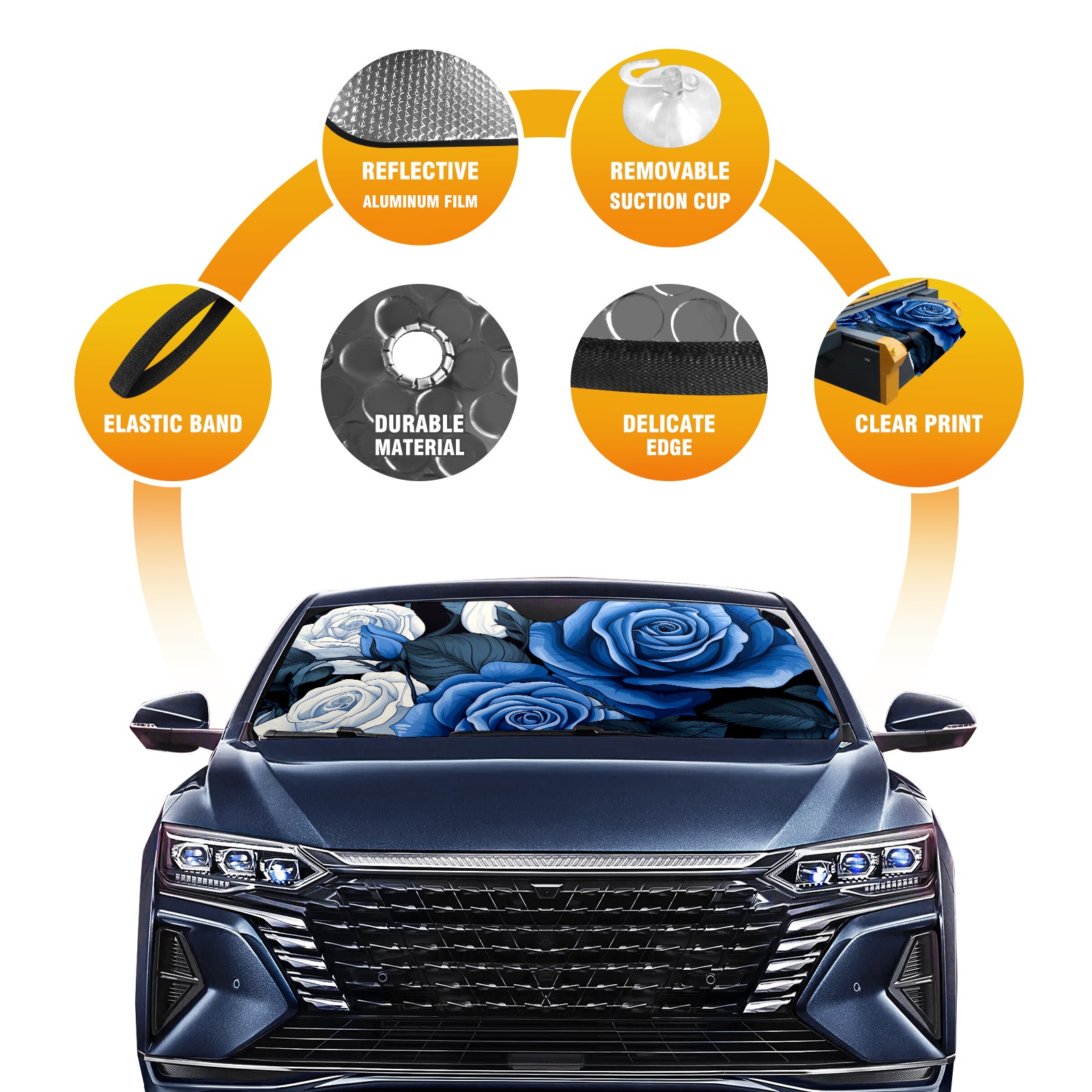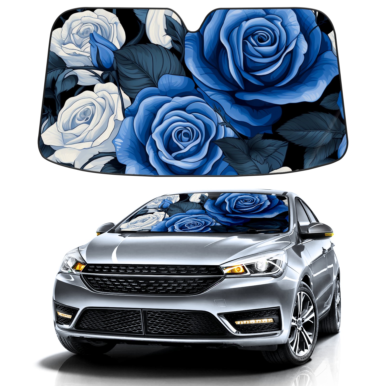 Car Windshield Sun Shade for Front Window Blue Roses Flower (4) Foldable Vehicle Windshield Car Sun Visor Covers Automotive Window Protector Car Privacy Sun Blocker