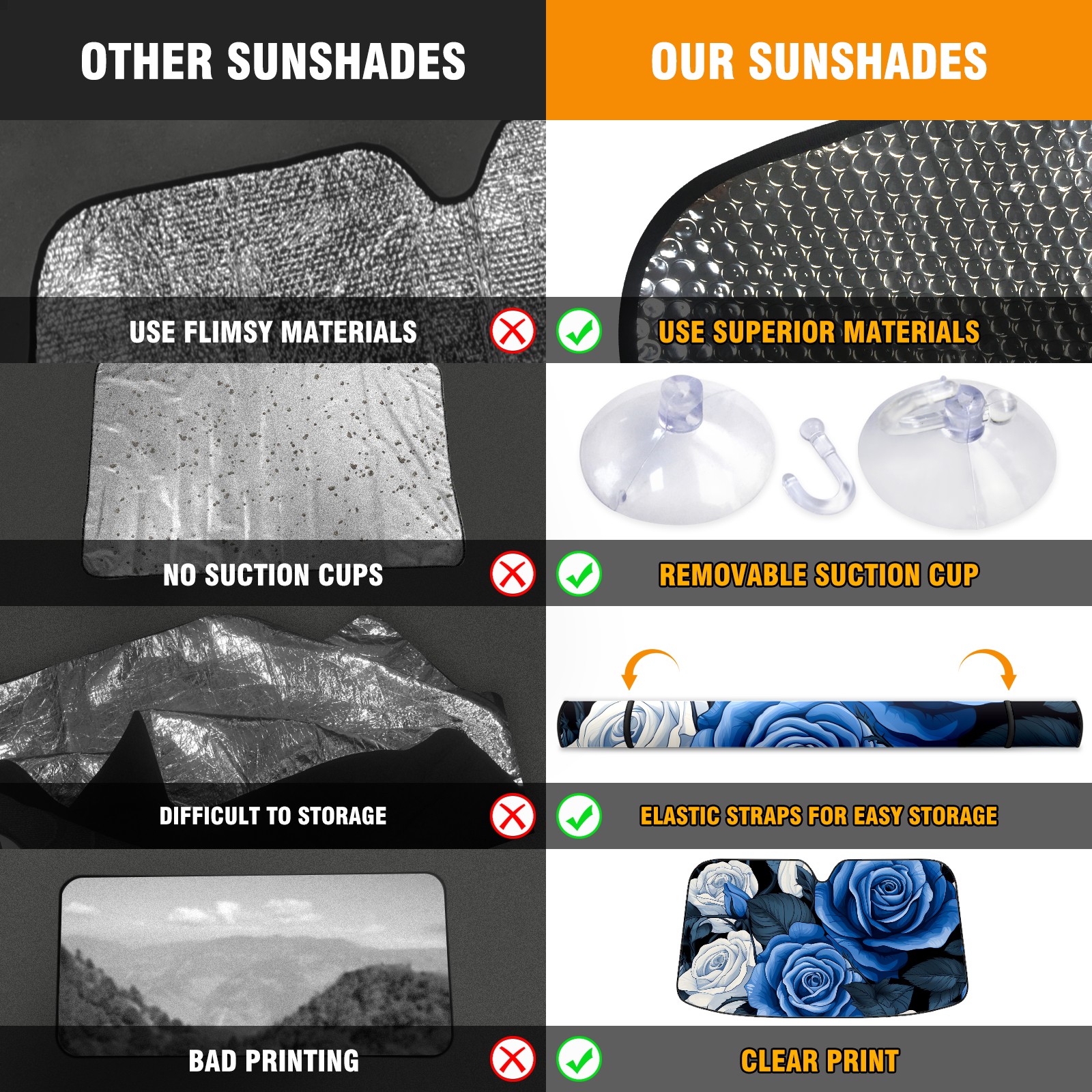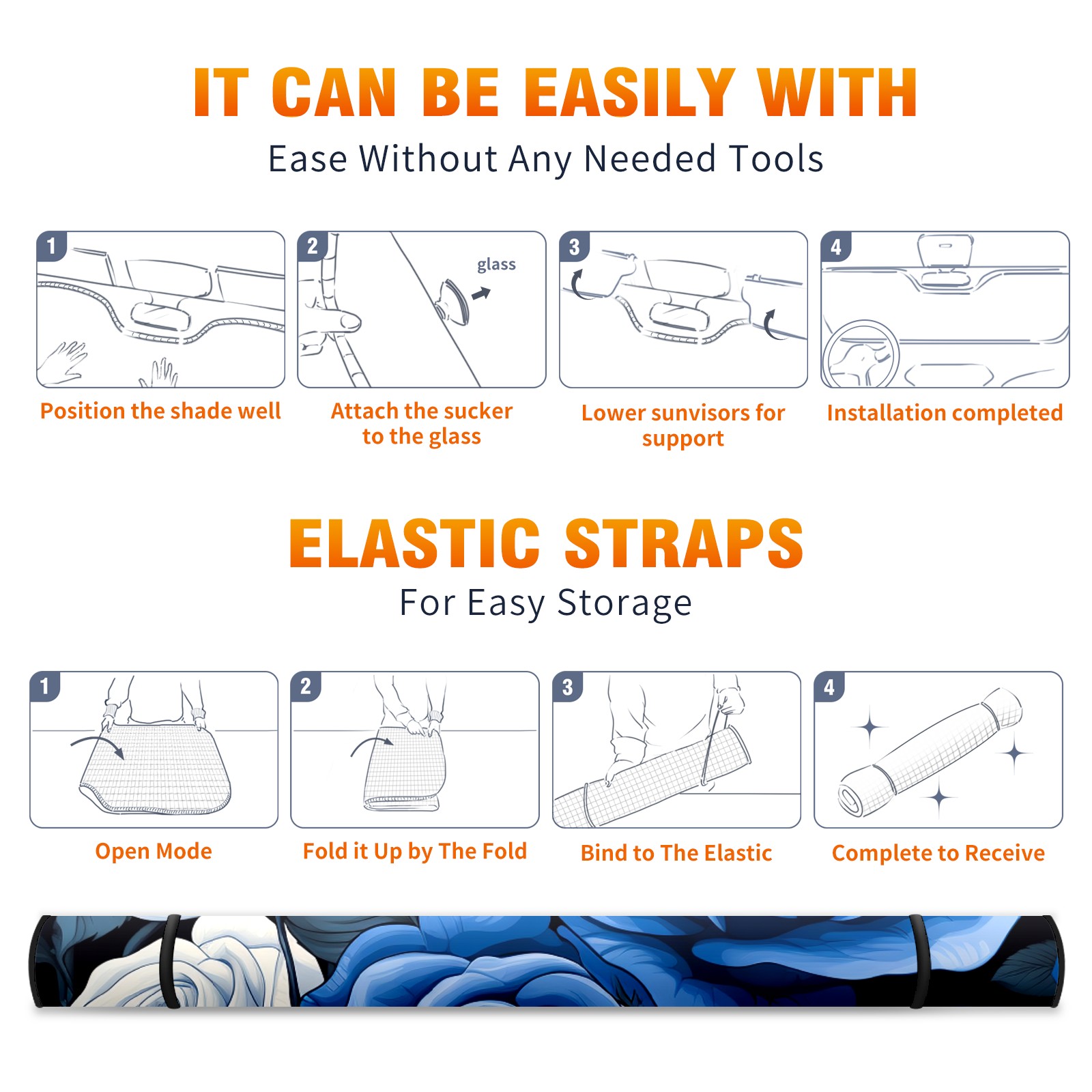 • <b>ZXIVGOQFR Foldable Premium Car Windshield Sunshade is your great solution to reduce your car’s interior temperature dramatically! This is definitely a must-have item for your summer travel! </b> <br> ●<b>Size: 63"L x 33.5"W </b> <br></b> ●<b>Blocking Uv Rays & Heat Insulation<br></b> Our vehicle sunshade provides effective UV, sun, and summer heat protection .Maintains dashboards by preventing fading and cracking <br> ●<b>Easy-To-Store Folding Design Makes Storage Convenient <br></b> ZXIVGOQFR car sunshades come with removable suction cups and elastic bands that you can install easily and quickly, and the removable suction cups will not leave any marks on your windows when removed. Within seconds, windshield visor can be installed and removed. When not in use,the front windshield can be easily and effectively placed on the door pocket or the dashboard, which is beautiful and does not take up space in the car.<br> <br> <b>PUT UP A 'PROTECTIVE UMBRELLA' FOR YOUR BELOVED CAR!</b>