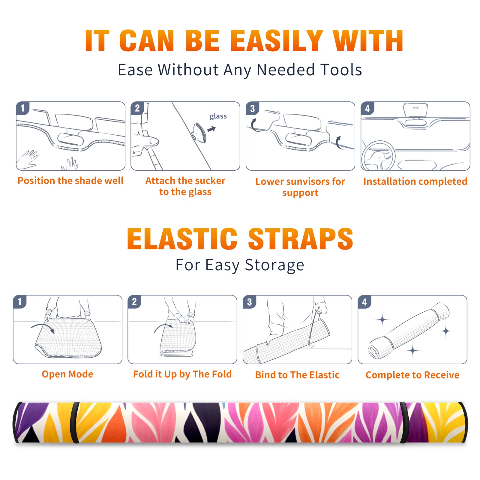<b>ZXIVGOQFR Foldable Premium Car Windshield Sunshade is your great solution to reduce your car’s interior temperature dramatically! This is definitely a must-have item for your summer travel! </b> <br> ●<b>Size: 63"L x 33.5"W </b> <br></b> ●<b>Blocking Uv Rays & Heat Insulation<br></b> Our vehicle sunshade provides effective UV, sun, and summer heat protection .Maintains dashboards by preventing fading and cracking <br> ●<b>Easy-To-Store Folding Design Makes Storage Convenient <br></b> ZXIVGOQFR car sunshades come with removable suction cups and elastic bands that you can install easily and quickly, and the removable suction cups will not leave any marks on your windows when removed. Within seconds, windshield visor can be installed and removed. When not in use,the front windshield can be easily and effectively placed on the door pocket or the dashboard, which is beautiful and does not take up space in the car.<br> <br> <b>PUT UP A 'PROTECTIVE UMBRELLA' FOR YOUR BELOVED CAR!</b>