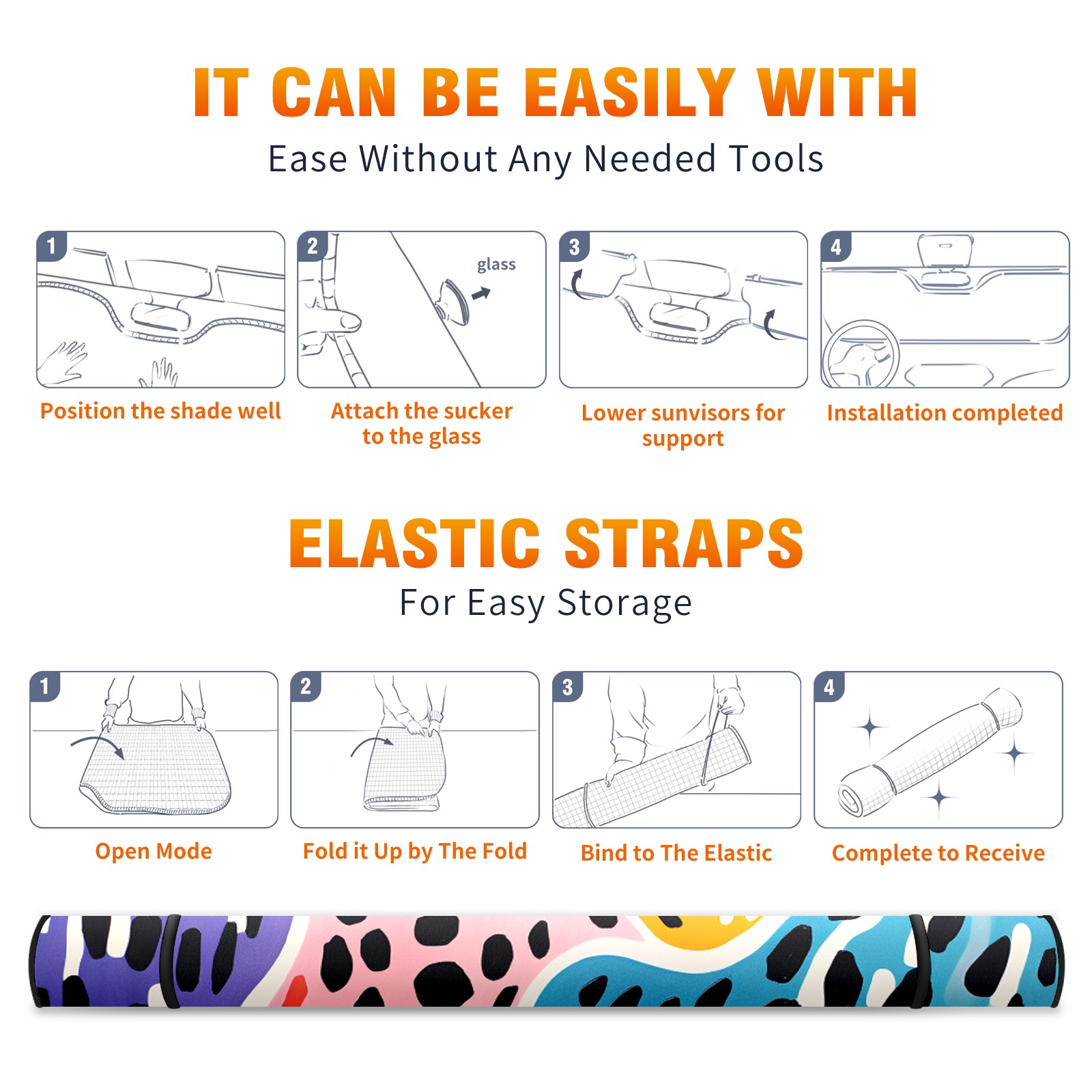 • <b>ZXIVGOQFR Foldable Premium Car Windshield Sunshade is your great solution to reduce your car’s interior temperature dramatically! This is definitely a must-have item for your summer travel! </b> <br> ●<b>Size: 63"L x 33.5"W </b> <br></b> ●<b>Blocking Uv Rays & Heat Insulation<br></b> Our vehicle sunshade provides effective UV, sun, and summer heat protection .Maintains dashboards by preventing fading and cracking <br> ●<b>Easy-To-Store Folding Design Makes Storage Convenient <br></b> ZXIVGOQFR car sunshades come with removable suction cups and elastic bands that you can install easily and quickly, and the removable suction cups will not leave any marks on your windows when removed. Within seconds, windshield visor can be installed and removed. When not in use,the front windshield can be easily and effectively placed on the door pocket or the dashboard, which is beautiful and does not take up space in the car.<br> <br> <b>PUT UP A 'PROTECTIVE UMBRELLA' FOR YOUR BELOVED CAR!</b>
