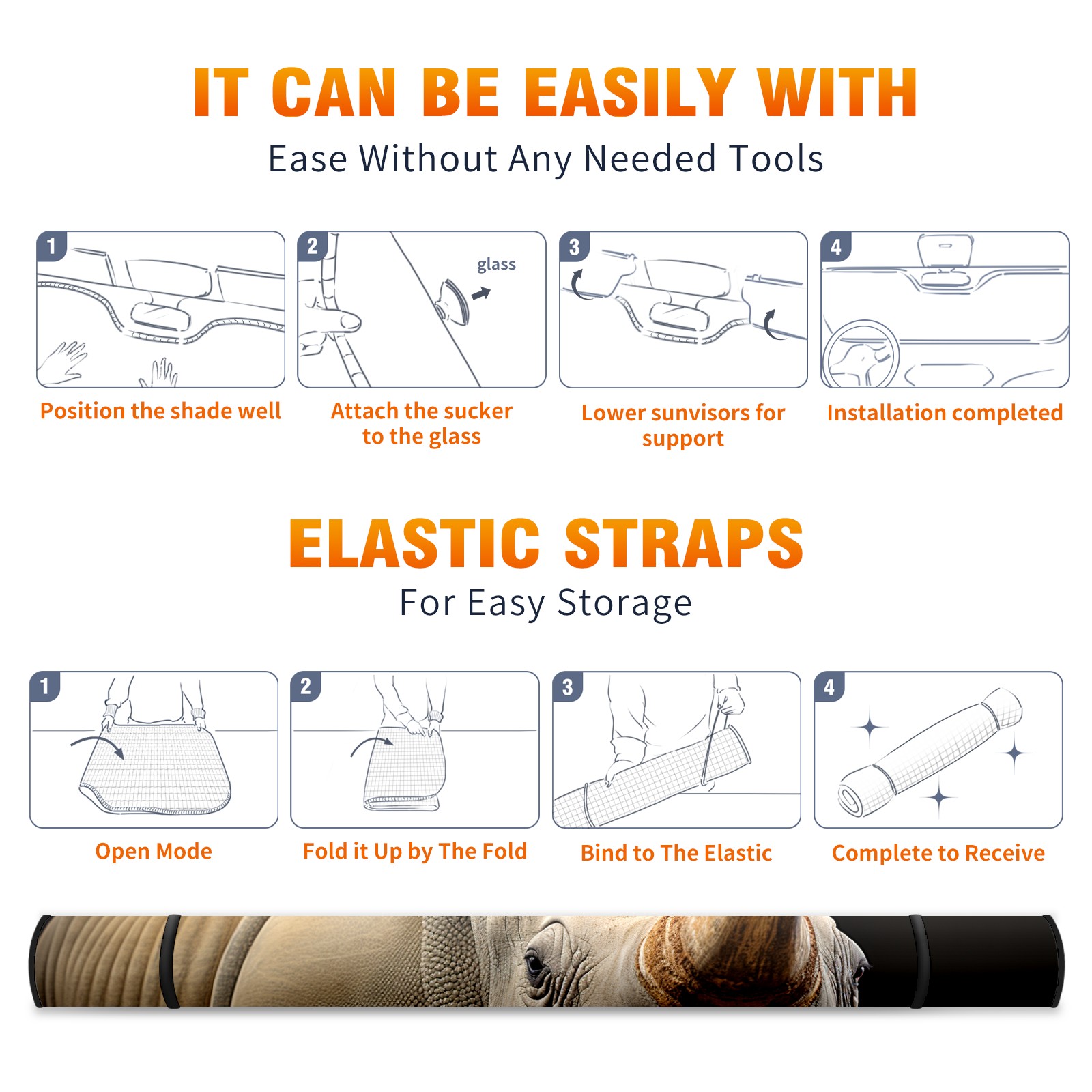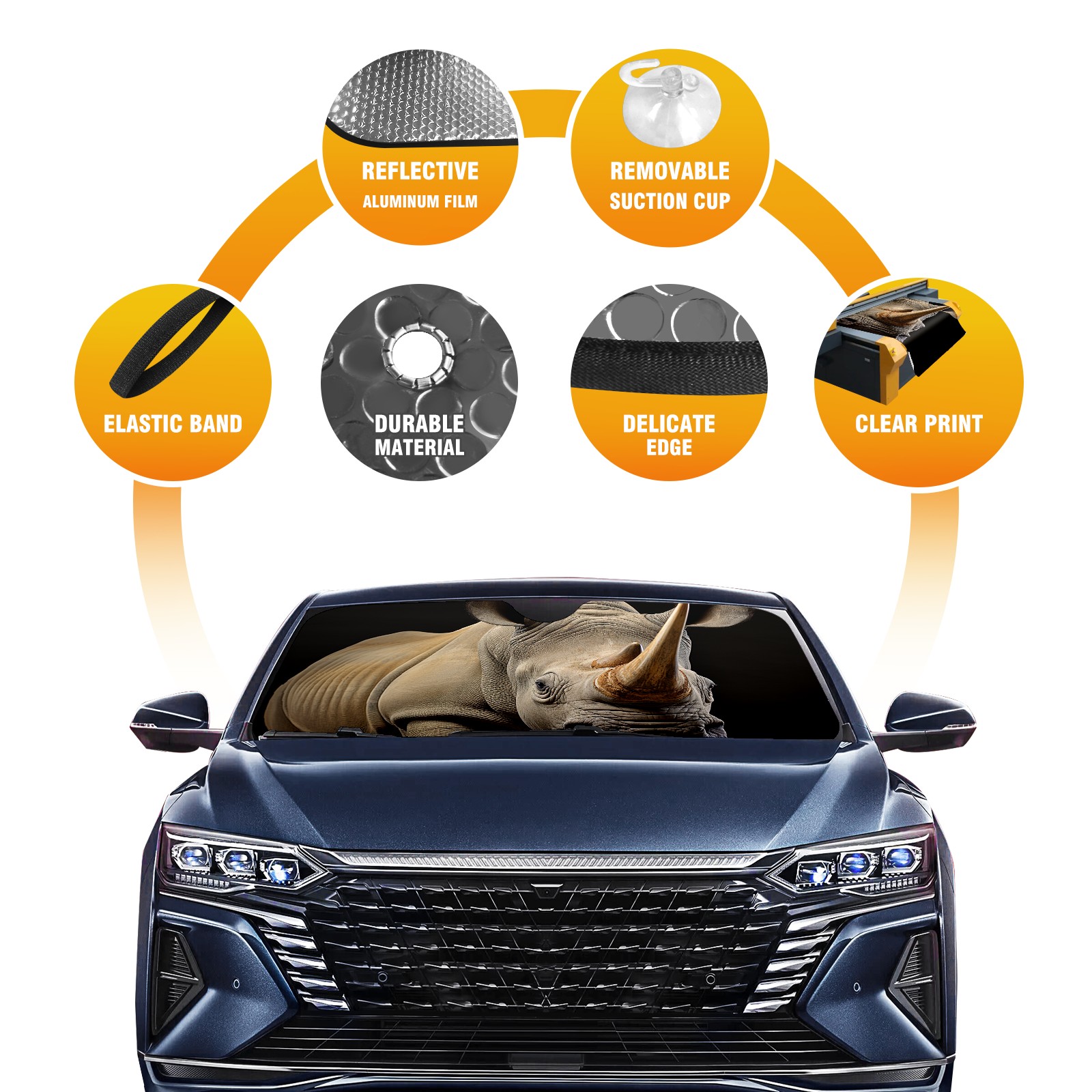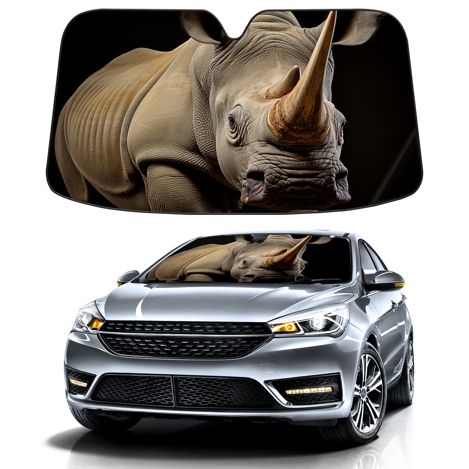Car Windshield Sun Shade for Front Window White Rhino Foldable Vehicle Windshield Car Sun Visor Covers Automotive Window Protector Car Privacy Sun Blocker