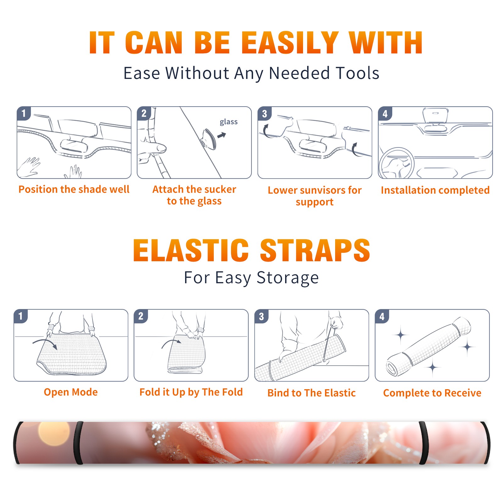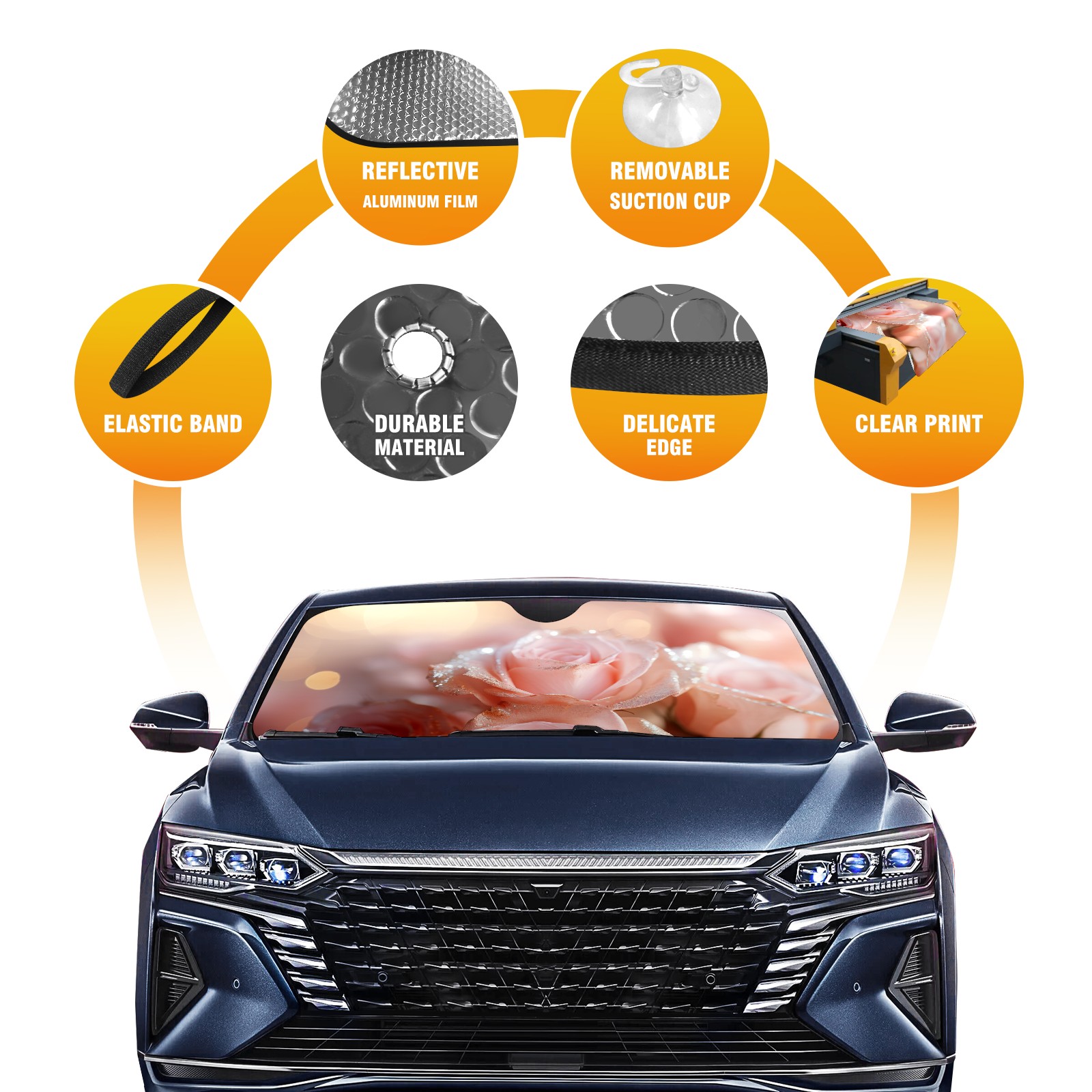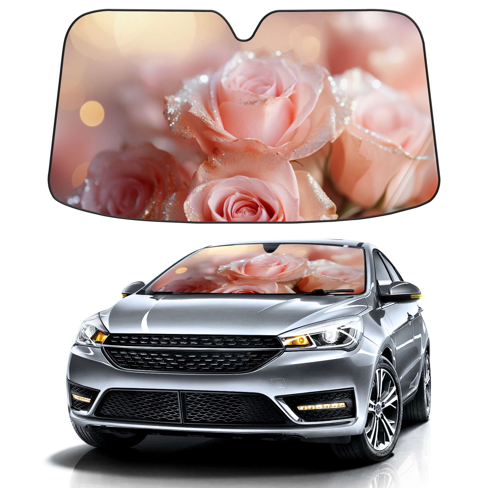 Car Windshield Sun Shade for Front Window Pink Gold1 Foldable Vehicle Windshield Car Sun Visor Covers Automotive Window Protector Car Privacy Sun Blocker