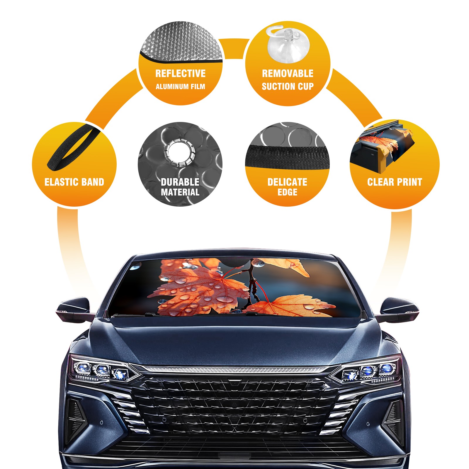 Car Windshield Sun Shade for Front Window Maple Leaves2 Foldable Vehicle Windshield Car Sun Visor Covers Automotive Window Protector Car Privacy Sun Blocker