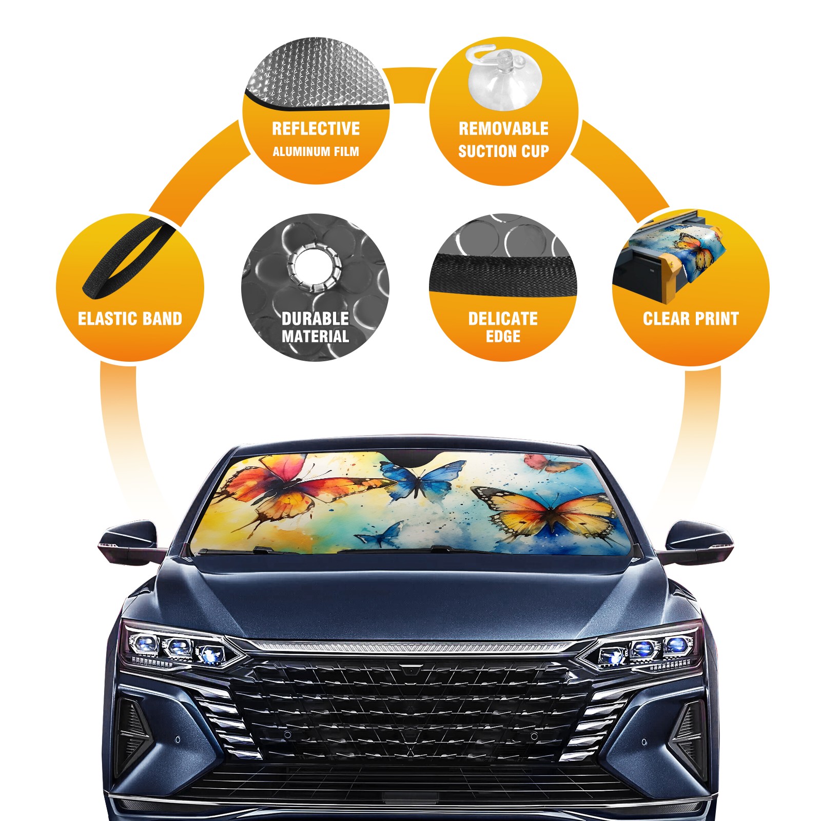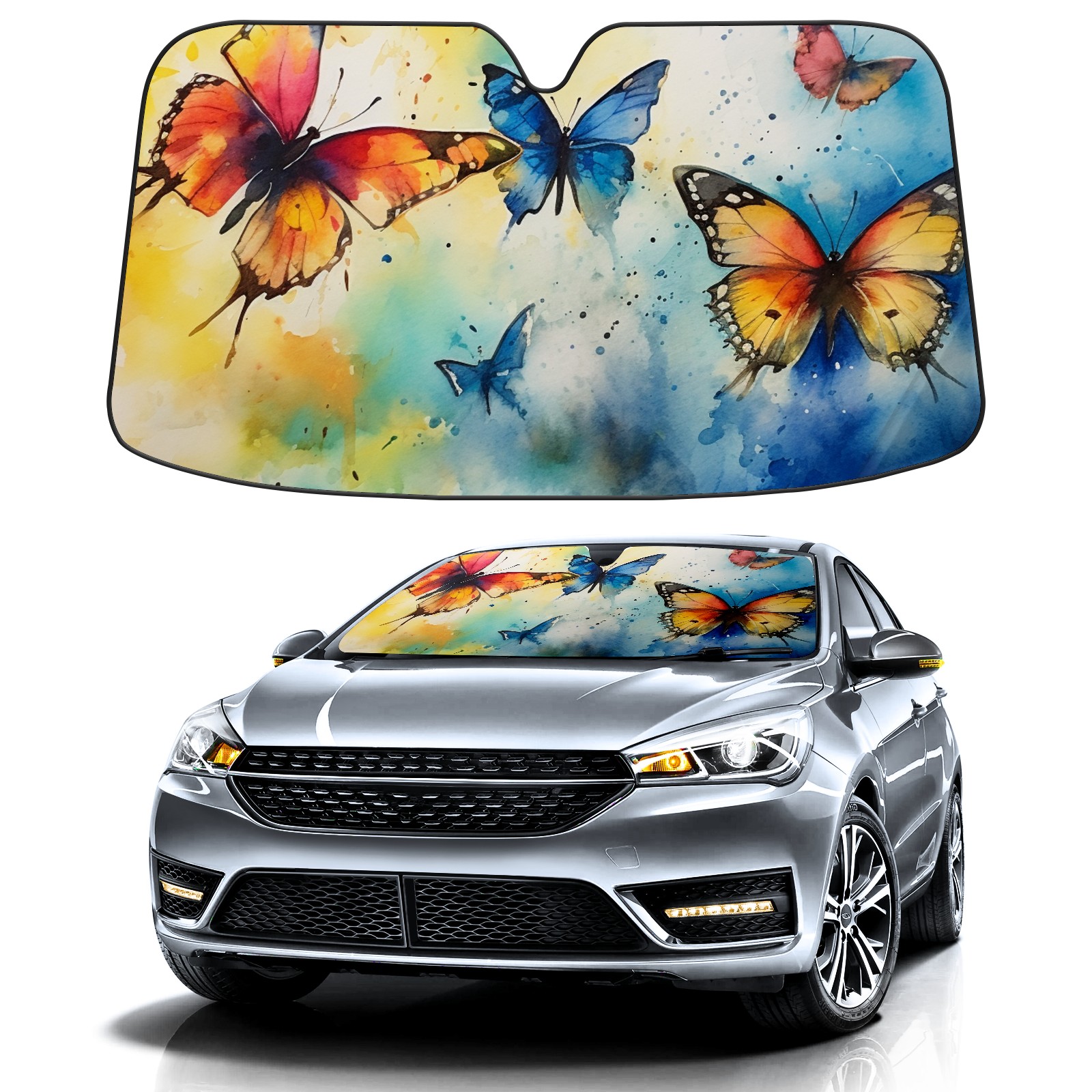 Car Windshield Sun Shade for Front Window Butterflie1 Foldable Vehicle Windshield Car Sun Visor Covers Automotive Window Protector Car Privacy Sun Blocker