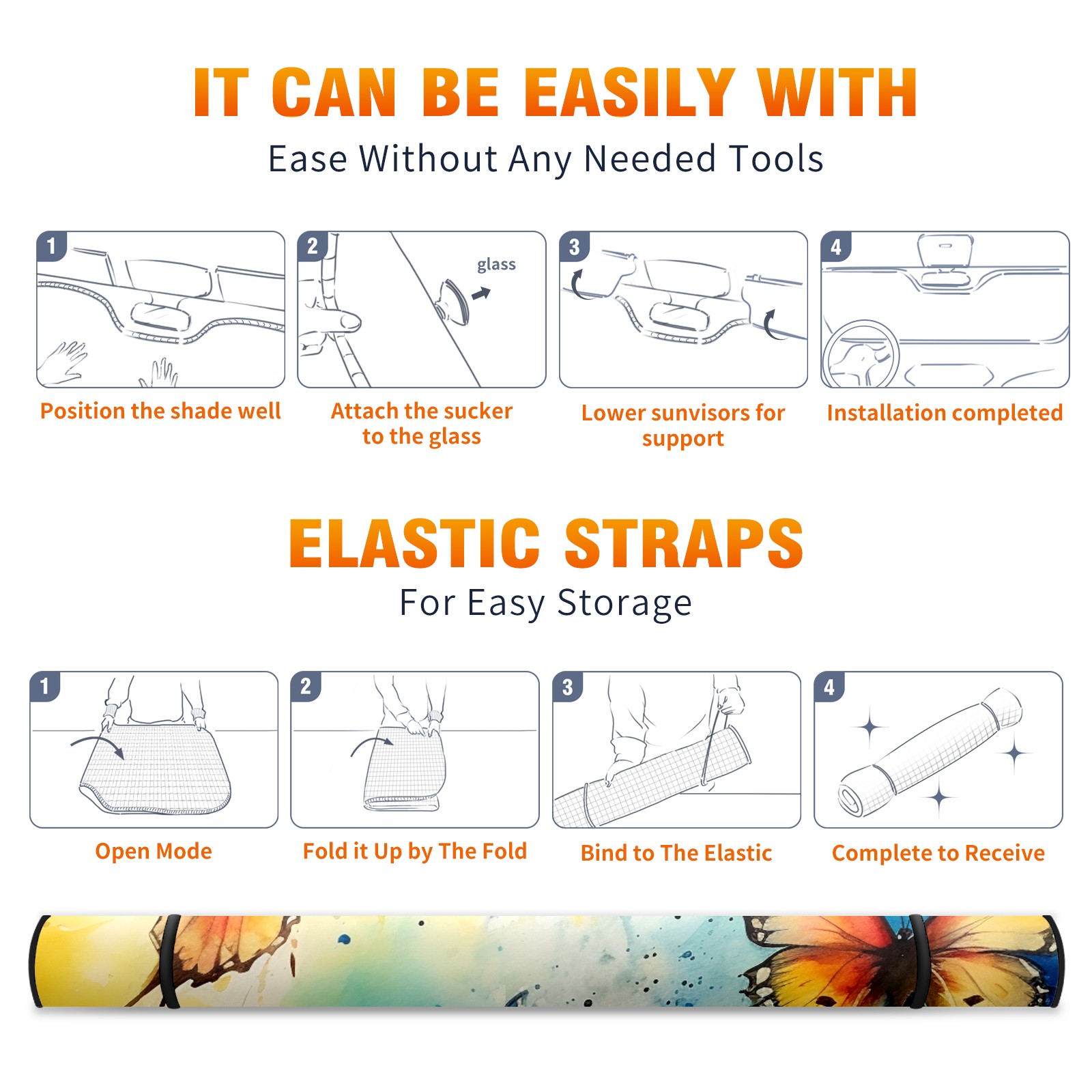 • <b>ZXIVGOQFR Foldable Premium Car Windshield Sunshade is your great solution to reduce your car’s interior temperature dramatically! This is definitely a must-have item for your summer travel! </b> <br> ●<b>Size: 63"L x 33.5"W </b> <br></b> ●<b>Blocking Uv Rays & Heat Insulation<br></b> Our vehicle sunshade provides effective UV, sun, and summer heat protection .Maintains dashboards by preventing fading and cracking <br> ●<b>Easy-To-Store Folding Design Makes Storage Convenient <br></b> ZXIVGOQFR car sunshades come with removable suction cups and elastic bands that you can install easily and quickly, and the removable suction cups will not leave any marks on your windows when removed. Within seconds, windshield visor can be installed and removed. When not in use,the front windshield can be easily and effectively placed on the door pocket or the dashboard, which is beautiful and does not take up space in the car.<br> <br> <b>PUT UP A 'PROTECTIVE UMBRELLA' FOR YOUR BELOVED CAR!</b>