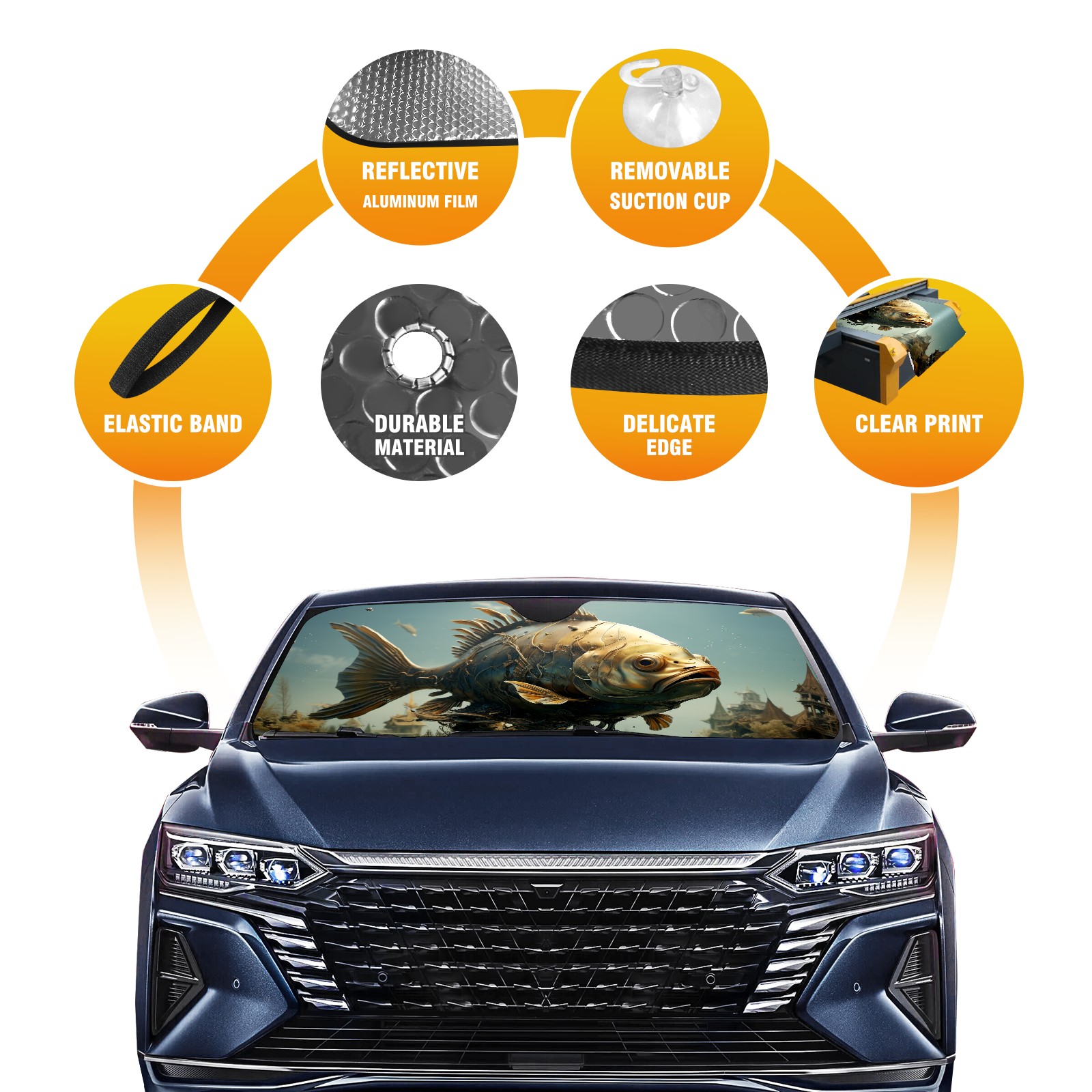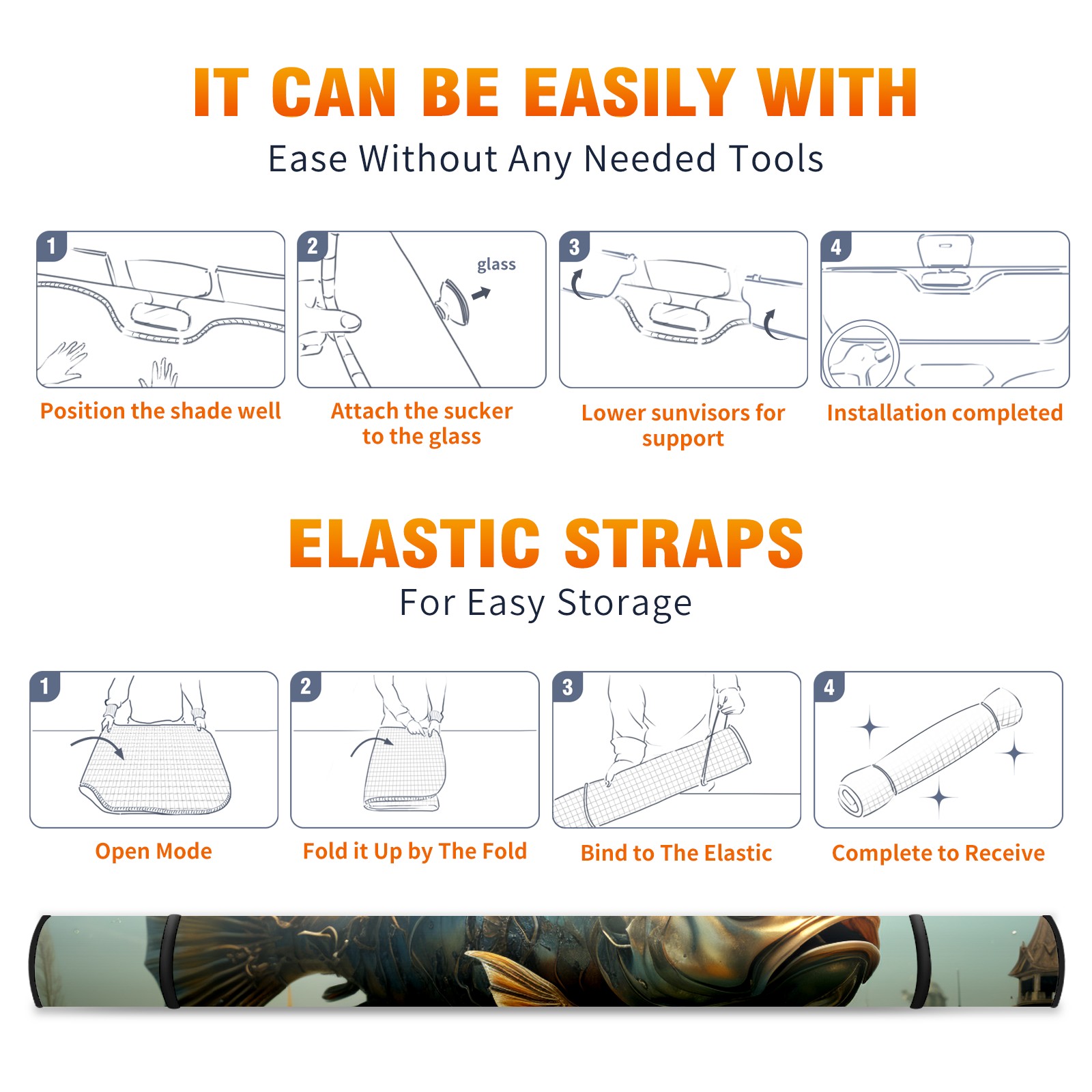 <b>ZXIVGOQFR Foldable Premium Car Windshield Sunshade is your great solution to reduce your car’s interior temperature dramatically! This is definitely a must-have item for your summer travel! </b> <br> ●<b>Size: 63"L x 33.5"W </b> <br></b> ●<b>Blocking Uv Rays & Heat Insulation<br></b> Our vehicle sunshade provides effective UV, sun, and summer heat protection .Maintains dashboards by preventing fading and cracking <br> ●<b>Easy-To-Store Folding Design Makes Storage Convenient <br></b> ZXIVGOQFR car sunshades come with removable suction cups and elastic bands that you can install easily and quickly, and the removable suction cups will not leave any marks on your windows when removed. Within seconds, windshield visor can be installed and removed. When not in use,the front windshield can be easily and effectively placed on the door pocket or the dashboard, which is beautiful and does not take up space in the car.<br> <br> <b>PUT UP A 'PROTECTIVE UMBRELLA' FOR YOUR BELOVED CAR!</b>