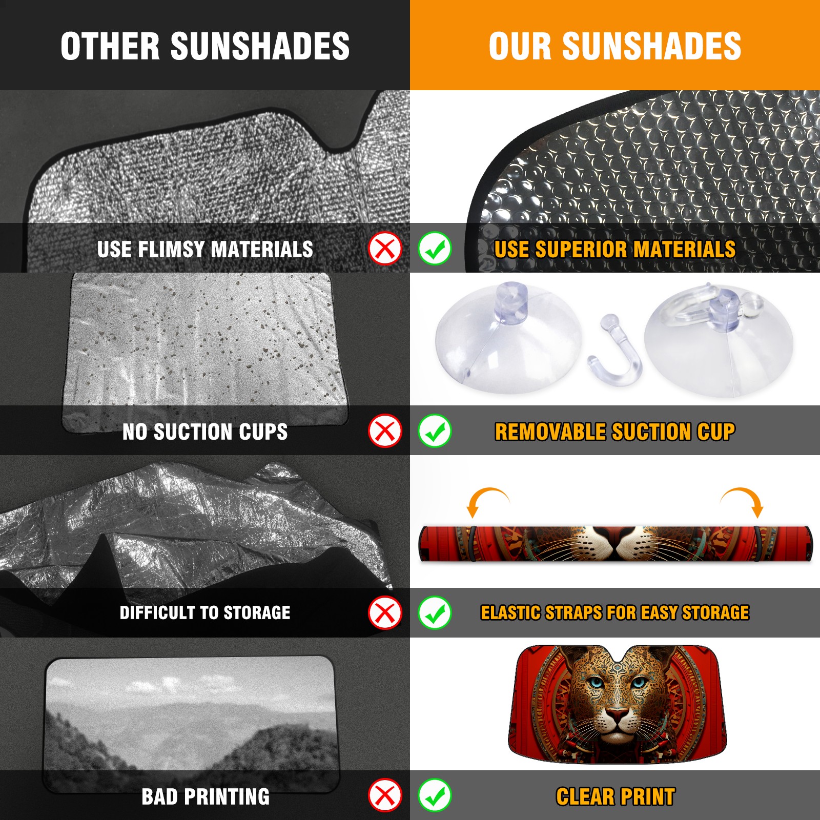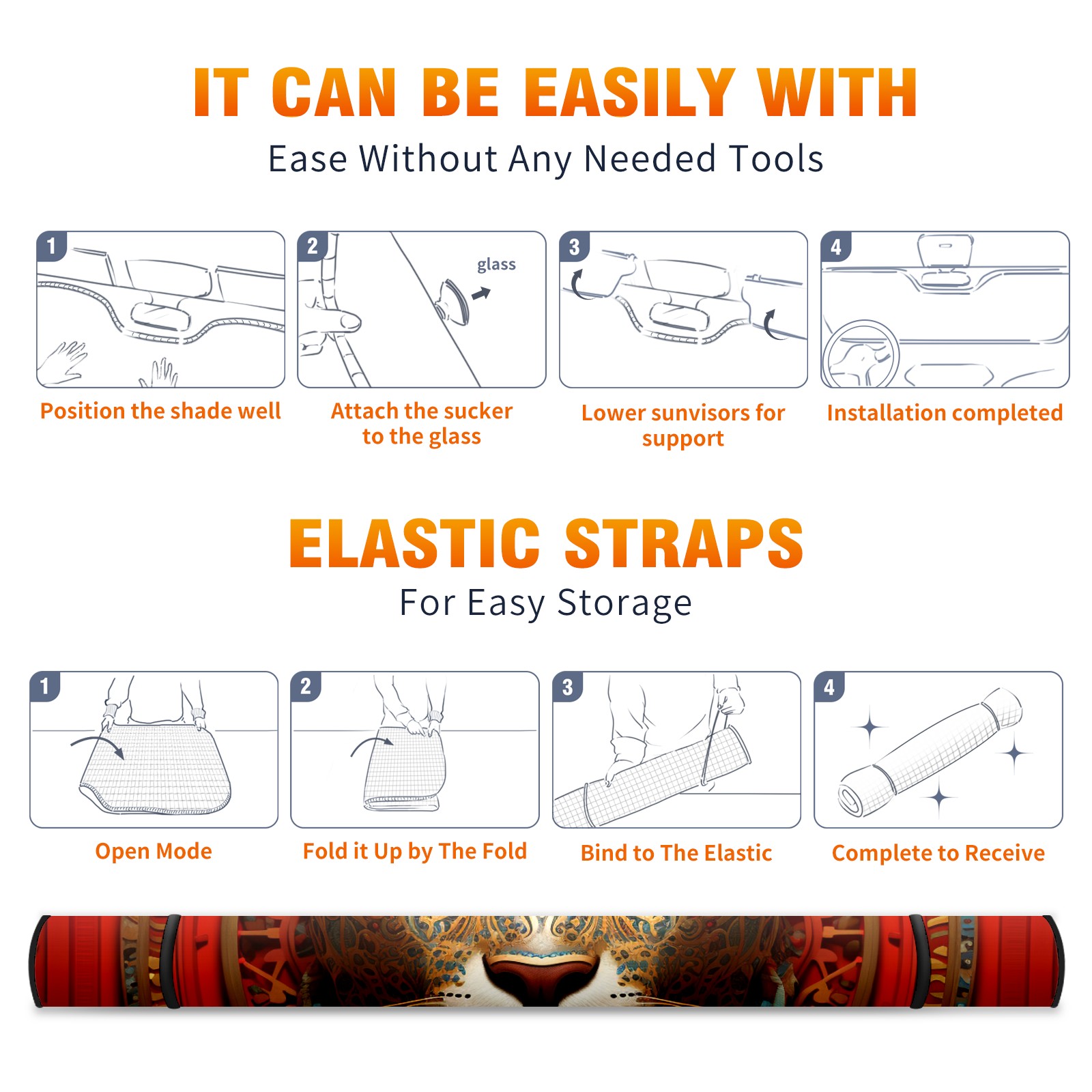 • <b>ZXIVGOQFR Foldable Premium Car Windshield Sunshade is your great solution to reduce your car’s interior temperature dramatically! This is definitely a must-have item for your summer travel! </b> <br> ●<b>Size: 63"L x 33.5"W </b> <br></b> ●<b>Blocking Uv Rays & Heat Insulation<br></b> Our vehicle sunshade provides effective UV, sun, and summer heat protection .Maintains dashboards by preventing fading and cracking <br> ●<b>Easy-To-Store Folding Design Makes Storage Convenient <br></b> ZXIVGOQFR car sunshades come with removable suction cups and elastic bands that you can install easily and quickly, and the removable suction cups will not leave any marks on your windows when removed. Within seconds, windshield visor can be installed and removed. When not in use,the front windshield can be easily and effectively placed on the door pocket or the dashboard, which is beautiful and does not take up space in the car.<br> <br> <b>PUT UP A 'PROTECTIVE UMBRELLA' FOR YOUR BELOVED CAR!</b>