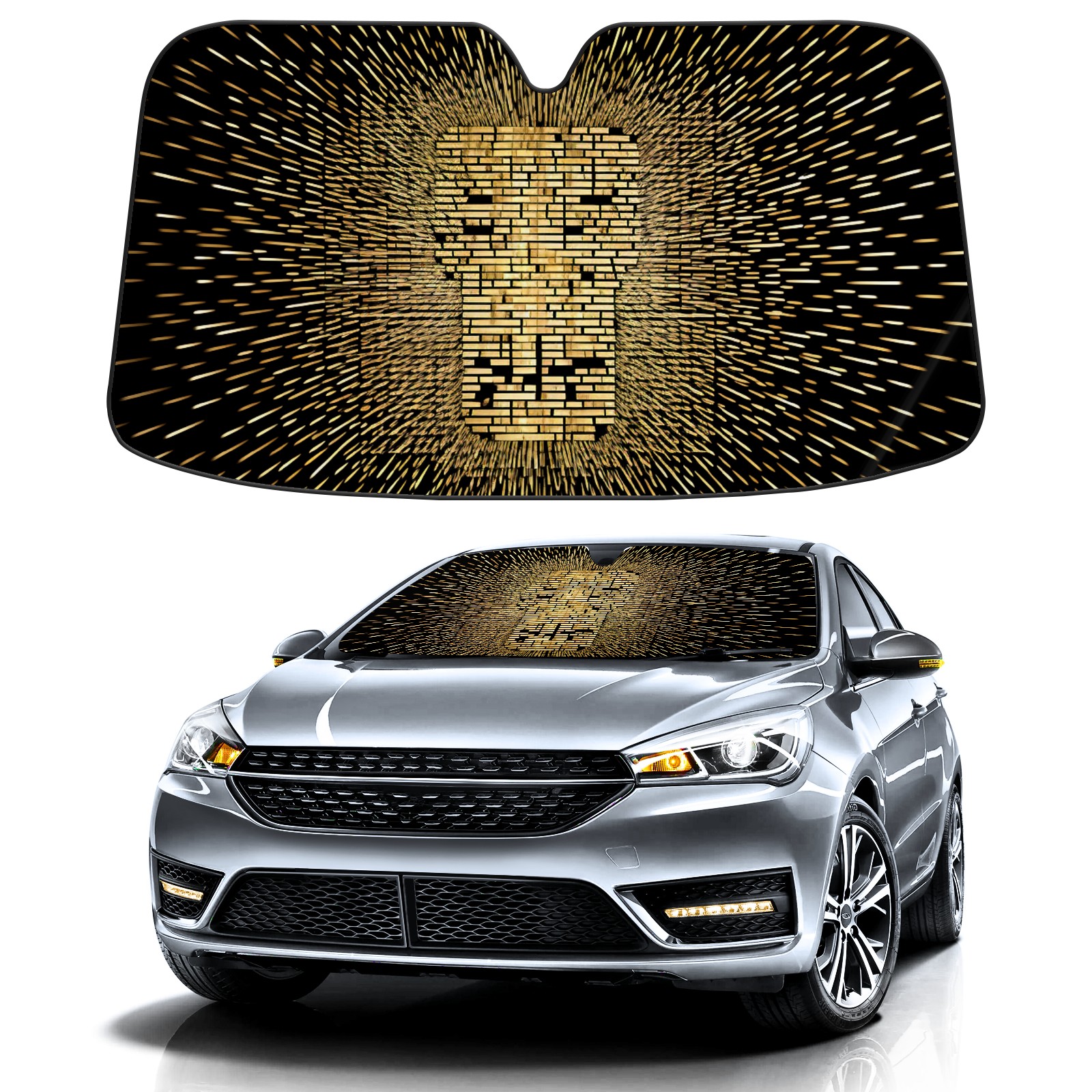 <b>ZXIVGOQFR Foldable Premium Car Windshield Sunshade is your great solution to reduce your car’s interior temperature dramatically! This is definitely a must-have item for your summer travel! </b> <br> ●<b>Size: 63"L x 33.5"W </b> <br></b> ●<b>Blocking Uv Rays & Heat Insulation<br></b> Our vehicle sunshade provides effective UV, sun, and summer heat protection .Maintains dashboards by preventing fading and cracking <br> ●<b>Easy-To-Store Folding Design Makes Storage Convenient <br></b> ZXIVGOQFR car sunshades come with removable suction cups and elastic bands that you can install easily and quickly, and the removable suction cups will not leave any marks on your windows when removed. Within seconds, windshield visor can be installed and removed. When not in use,the front windshield can be easily and effectively placed on the door pocket or the dashboard, which is beautiful and does not take up space in the car.<br> <br> <b>PUT UP A 'PROTECTIVE UMBRELLA' FOR YOUR BELOVED CAR!</b>