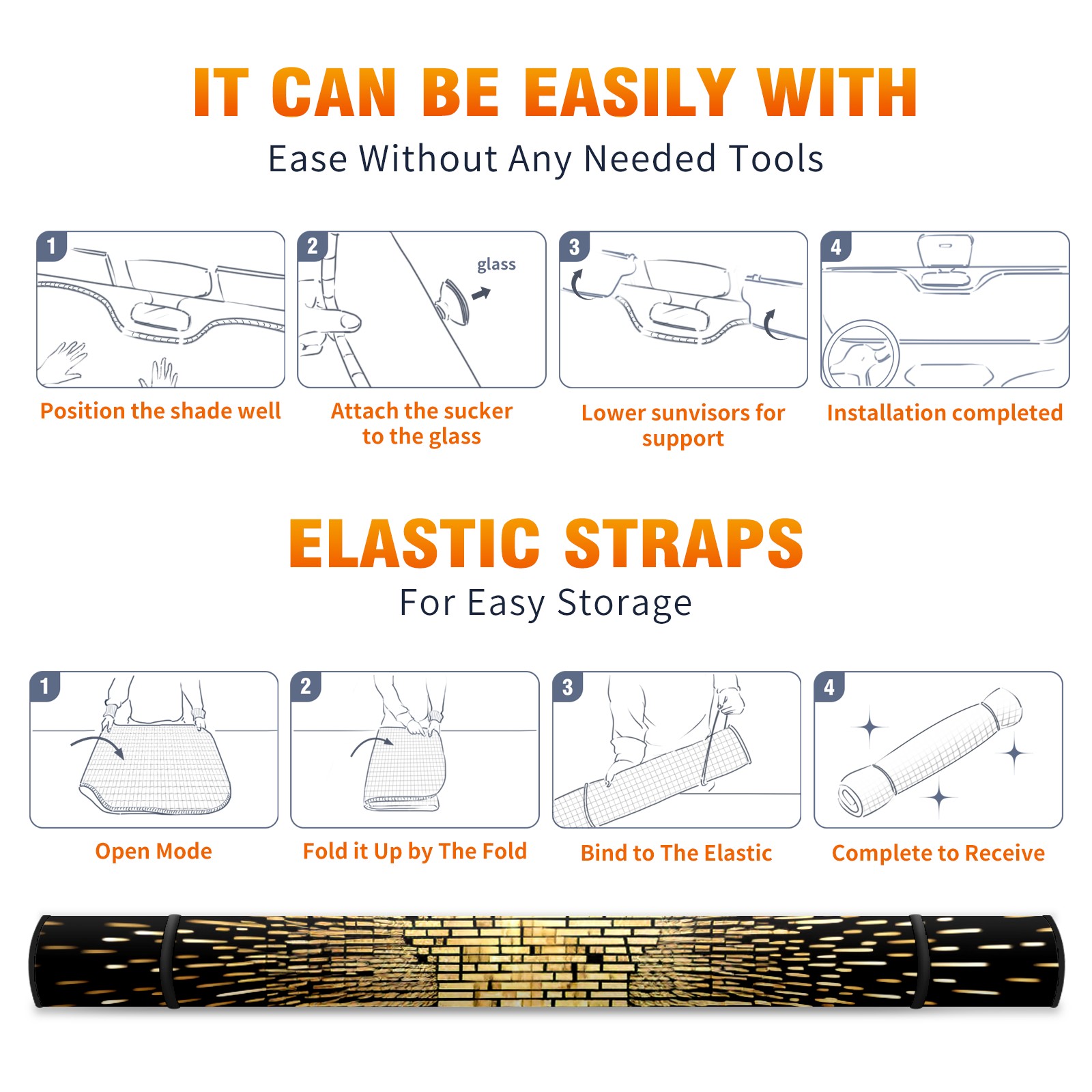 • <b>ZXIVGOQFR Foldable Premium Car Windshield Sunshade is your great solution to reduce your car’s interior temperature dramatically! This is definitely a must-have item for your summer travel! </b> <br> ●<b>Size: 63"L x 33.5"W </b> <br></b> ●<b>Blocking Uv Rays & Heat Insulation<br></b> Our vehicle sunshade provides effective UV, sun, and summer heat protection .Maintains dashboards by preventing fading and cracking <br> ●<b>Easy-To-Store Folding Design Makes Storage Convenient <br></b> ZXIVGOQFR car sunshades come with removable suction cups and elastic bands that you can install easily and quickly, and the removable suction cups will not leave any marks on your windows when removed. Within seconds, windshield visor can be installed and removed. When not in use,the front windshield can be easily and effectively placed on the door pocket or the dashboard, which is beautiful and does not take up space in the car.<br> <br> <b>PUT UP A 'PROTECTIVE UMBRELLA' FOR YOUR BELOVED CAR!</b>