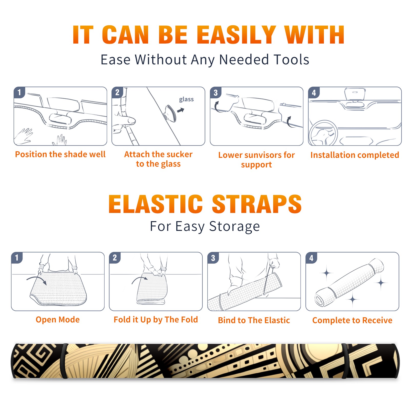 <b>ZXIVGOQFR Foldable Premium Car Windshield Sunshade is your great solution to reduce your car’s interior temperature dramatically! This is definitely a must-have item for your summer travel! </b> <br> ●<b>Size: 63"L x 33.5"W </b> <br></b> ●<b>Blocking Uv Rays & Heat Insulation<br></b> Our vehicle sunshade provides effective UV, sun, and summer heat protection .Maintains dashboards by preventing fading and cracking <br> ●<b>Easy-To-Store Folding Design Makes Storage Convenient <br></b> ZXIVGOQFR car sunshades come with removable suction cups and elastic bands that you can install easily and quickly, and the removable suction cups will not leave any marks on your windows when removed. Within seconds, windshield visor can be installed and removed. When not in use,the front windshield can be easily and effectively placed on the door pocket or the dashboard, which is beautiful and does not take up space in the car.<br> <br> <b>PUT UP A 'PROTECTIVE UMBRELLA' FOR YOUR BELOVED CAR!</b>
