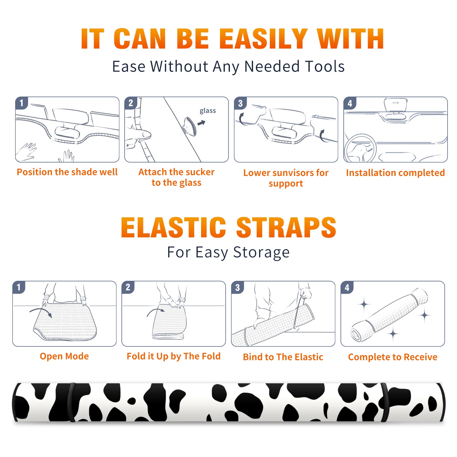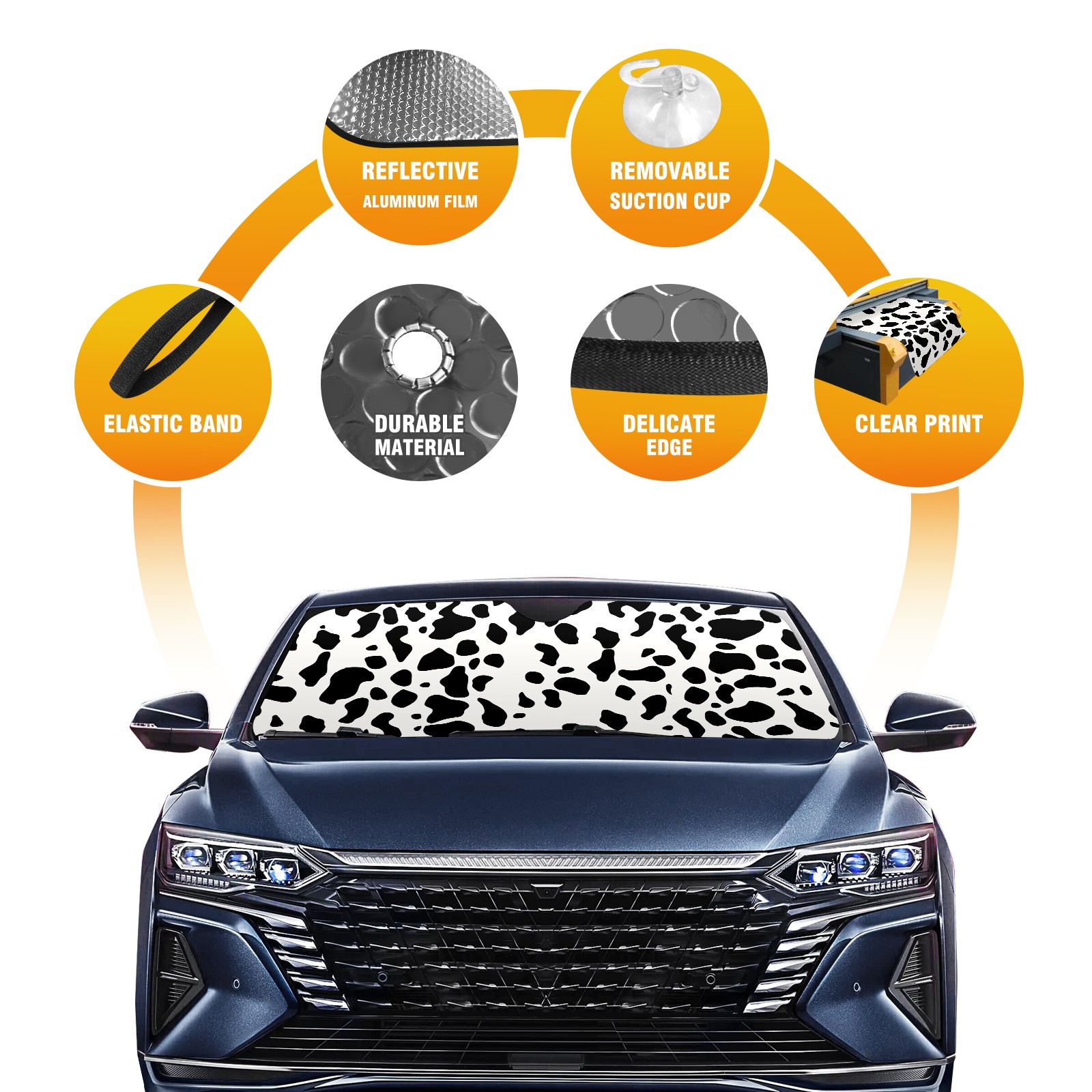 <b>ZXIVGOQFR Foldable Premium Car Windshield Sunshade is your great solution to reduce your car’s interior temperature dramatically! This is definitely a must-have item for your summer travel! </b> <br> ●<b>Size: 63"L x 33.5"W </b> <br></b> ●<b>Blocking Uv Rays & Heat Insulation<br></b> Our vehicle sunshade provides effective UV, sun, and summer heat protection .Maintains dashboards by preventing fading and cracking <br> ●<b>Easy-To-Store Folding Design Makes Storage Convenient <br></b> ZXIVGOQFR car sunshades come with removable suction cups and elastic bands that you can install easily and quickly, and the removable suction cups will not leave any marks on your windows when removed. Within seconds, windshield visor can be installed and removed. When not in use,the front windshield can be easily and effectively placed on the door pocket or the dashboard, which is beautiful and does not take up space in the car.<br> <br> <b>PUT UP A 'PROTECTIVE UMBRELLA' FOR YOUR BELOVED CAR!</b>