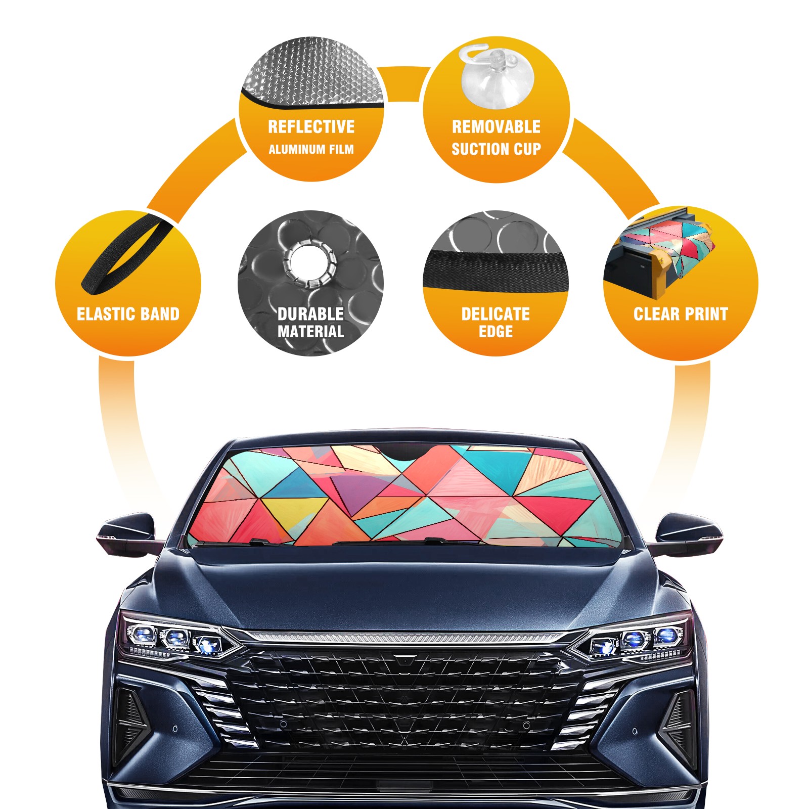 Car Windshield Sun Shade for Front Window Abstract Geometry(12) Foldable Vehicle Windshield Car Sun Visor Covers Automotive Window Protector Car Privacy Sun Blocker