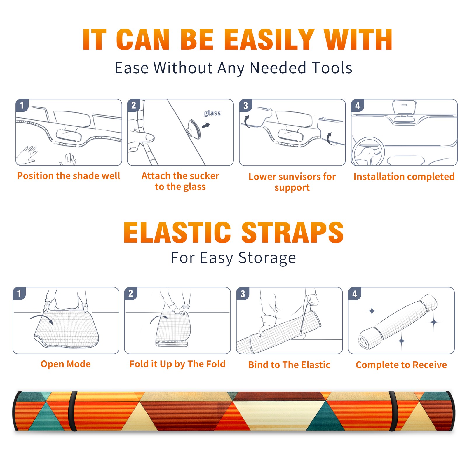 • <b>ZXIVGOQFR Foldable Premium Car Windshield Sunshade is your great solution to reduce your car’s interior temperature dramatically! This is definitely a must-have item for your summer travel! </b> <br> ●<b>Size: 63"L x 33.5"W </b> <br></b> ●<b>Blocking Uv Rays & Heat Insulation<br></b> Our vehicle sunshade provides effective UV, sun, and summer heat protection .Maintains dashboards by preventing fading and cracking <br> ●<b>Easy-To-Store Folding Design Makes Storage Convenient <br></b> ZXIVGOQFR car sunshades come with removable suction cups and elastic bands that you can install easily and quickly, and the removable suction cups will not leave any marks on your windows when removed. Within seconds, windshield visor can be installed and removed. When not in use,the front windshield can be easily and effectively placed on the door pocket or the dashboard, which is beautiful and does not take up space in the car.<br> <br> <b>PUT UP A 'PROTECTIVE UMBRELLA' FOR YOUR BELOVED CAR!</b>