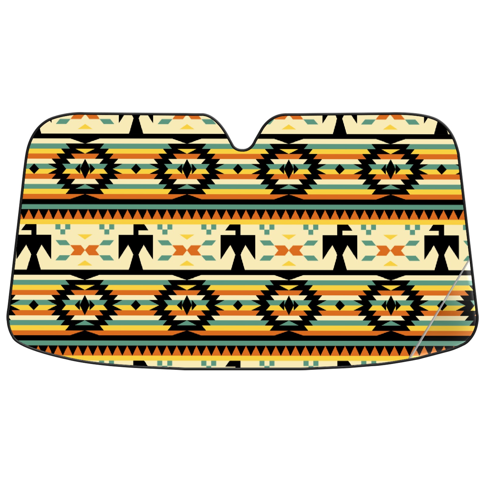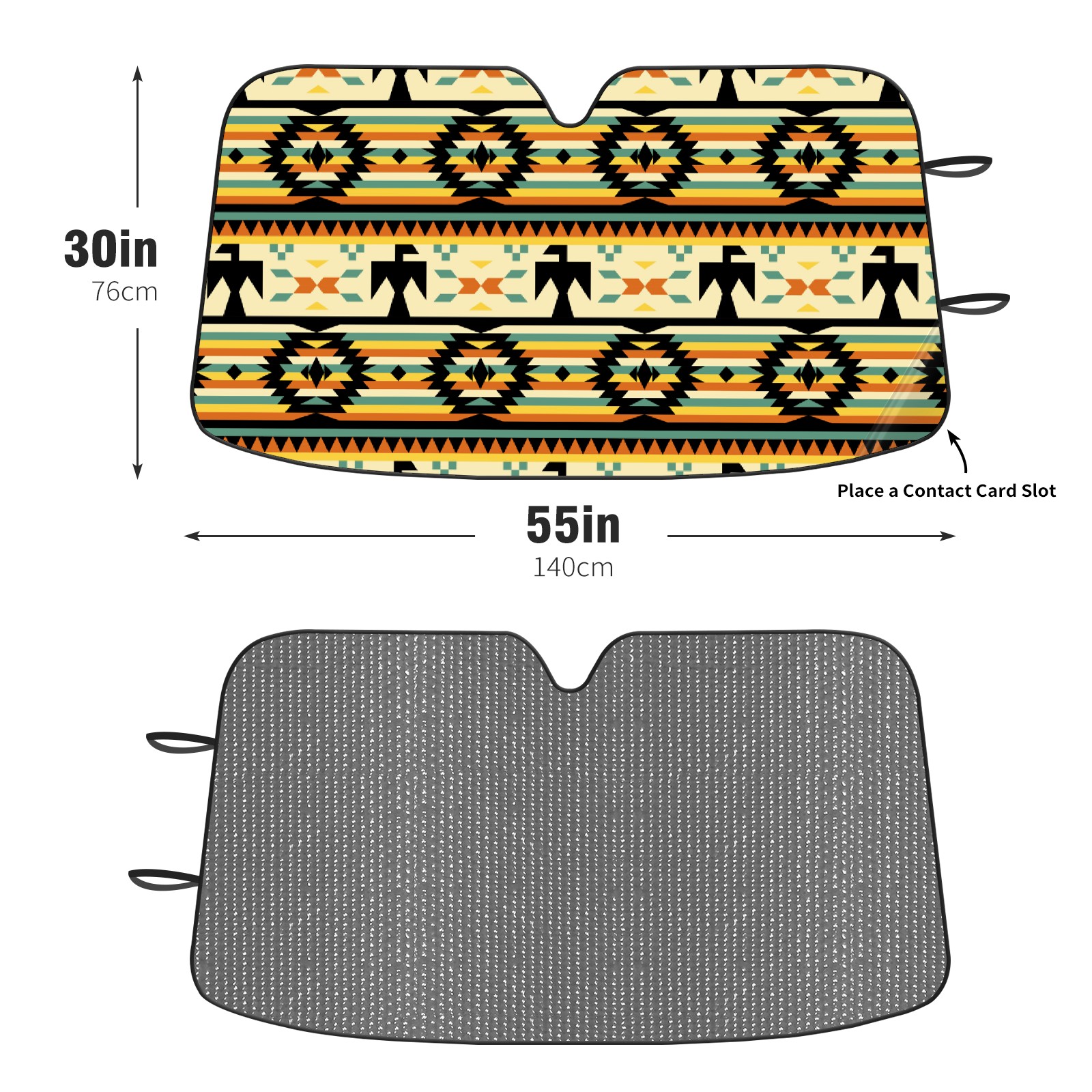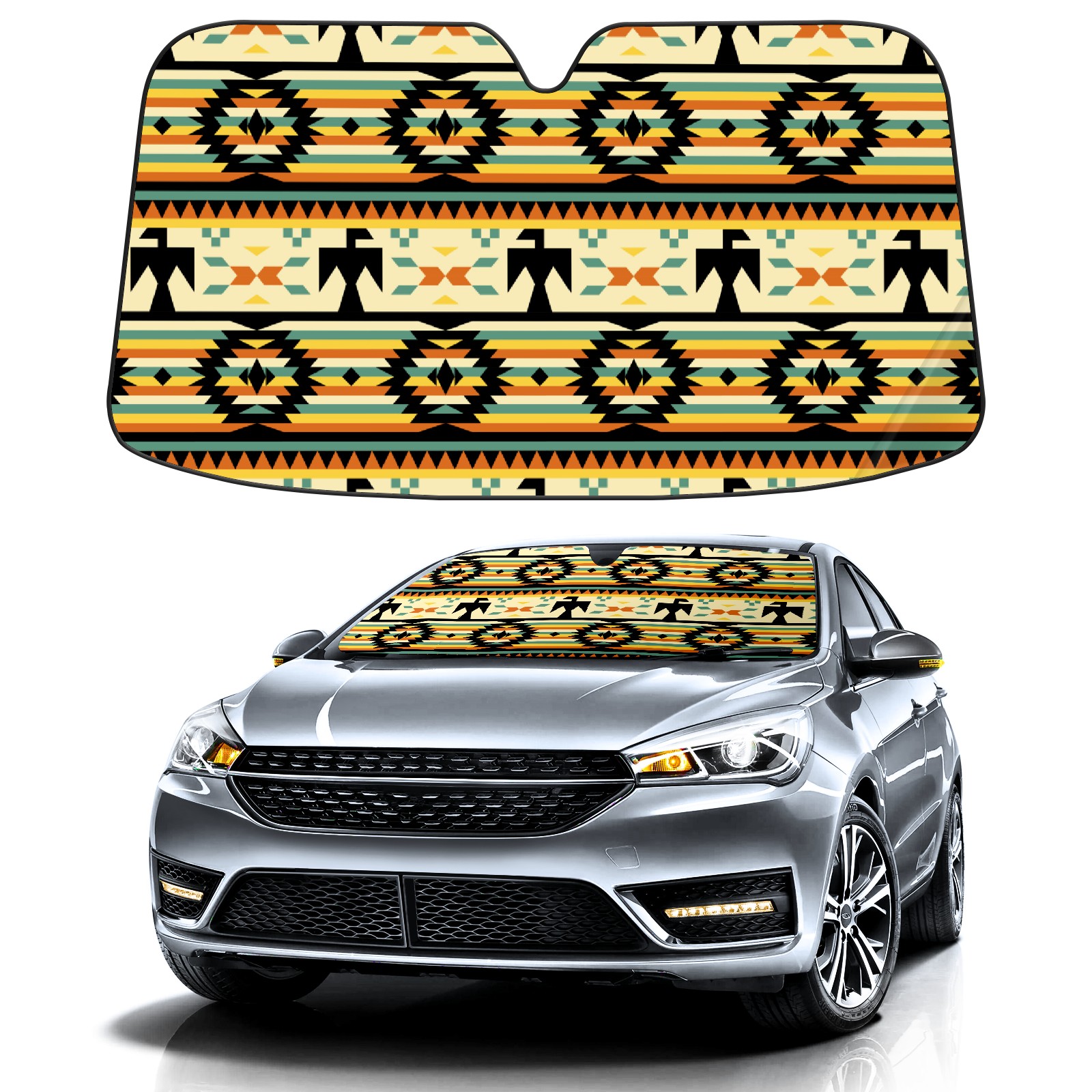 Car Windshield Sun Shade for Front Window Native American Stripe Geometry Foldable Vehicle Windshield Car Sun Visor Covers Automotive Window Protector Car Privacy Sun Blocker