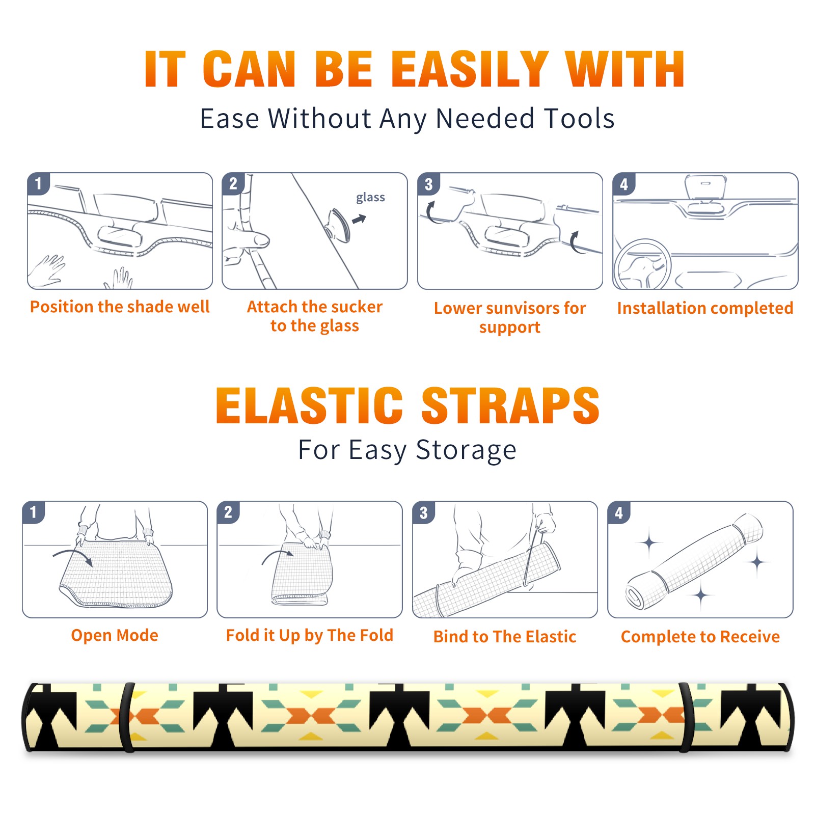 <b>ZXIVGOQFR Foldable Premium Car Windshield Sunshade is your great solution to reduce your car’s interior temperature dramatically! This is definitely a must-have item for your summer travel! </b> <br> ●<b>Size: 63"L x 33.5"W </b> <br></b> ●<b>Blocking Uv Rays & Heat Insulation<br></b> Our vehicle sunshade provides effective UV, sun, and summer heat protection .Maintains dashboards by preventing fading and cracking <br> ●<b>Easy-To-Store Folding Design Makes Storage Convenient <br></b> ZXIVGOQFR car sunshades come with removable suction cups and elastic bands that you can install easily and quickly, and the removable suction cups will not leave any marks on your windows when removed. Within seconds, windshield visor can be installed and removed. When not in use,the front windshield can be easily and effectively placed on the door pocket or the dashboard, which is beautiful and does not take up space in the car.<br> <br> <b>PUT UP A 'PROTECTIVE UMBRELLA' FOR YOUR BELOVED CAR!</b>