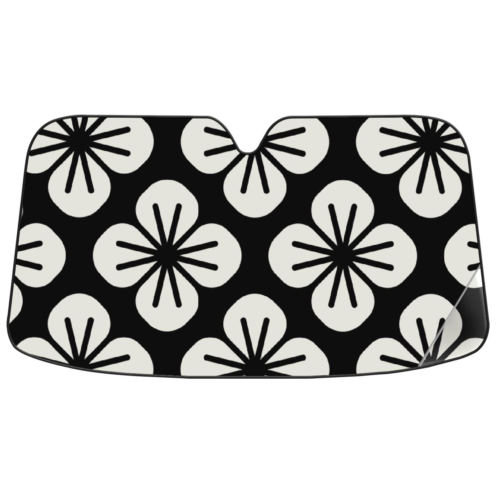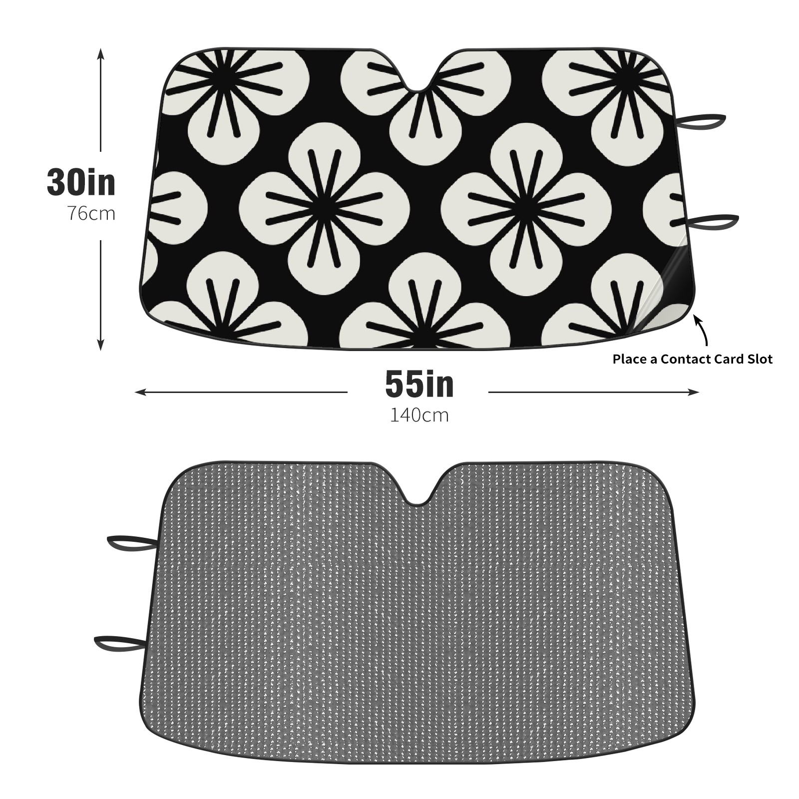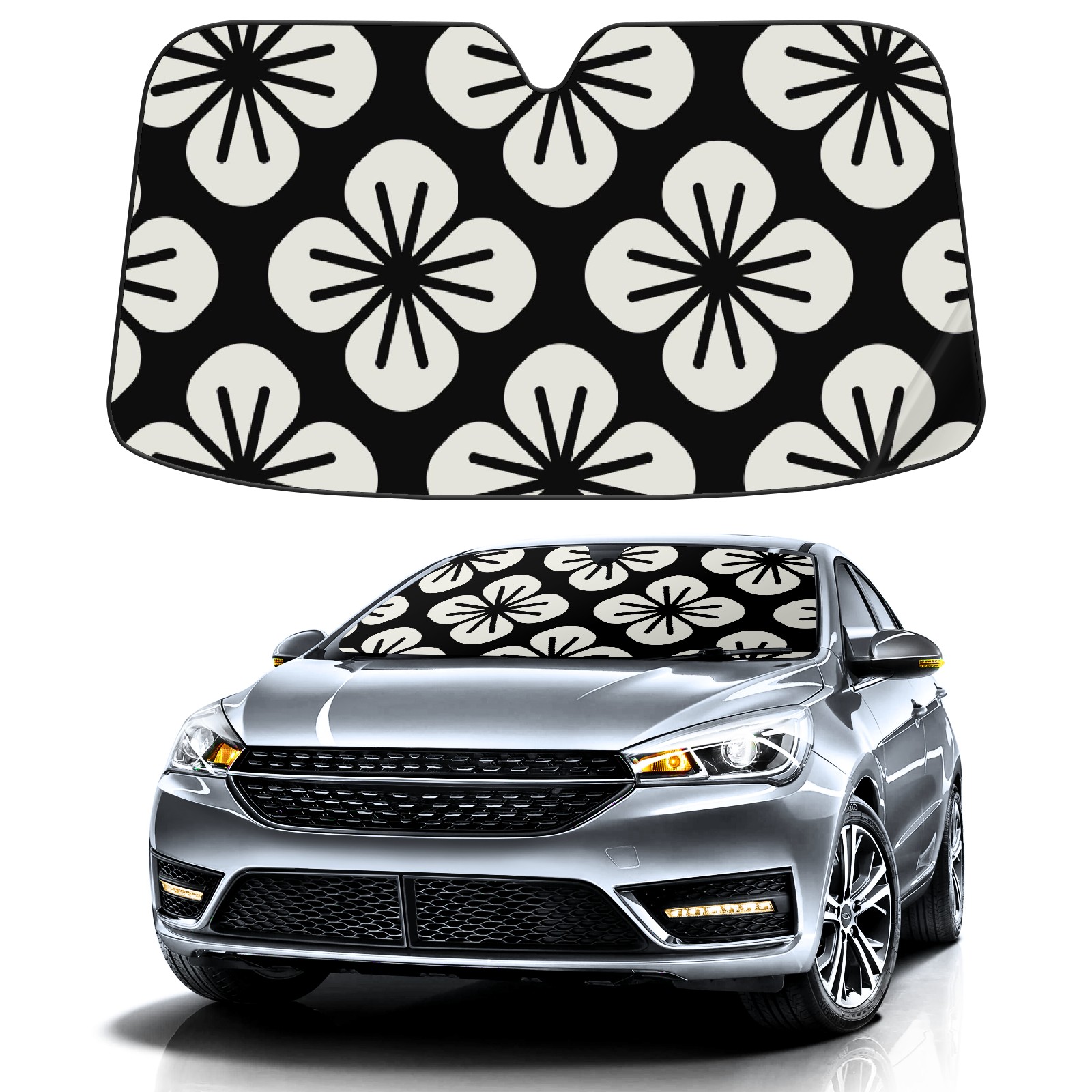 Car Windshield Sun Shade for Front Window Creative Black Geometry Linear Flower Foldable Vehicle Windshield Car Sun Visor Covers Automotive Window Protector Car Privacy Sun Blocker