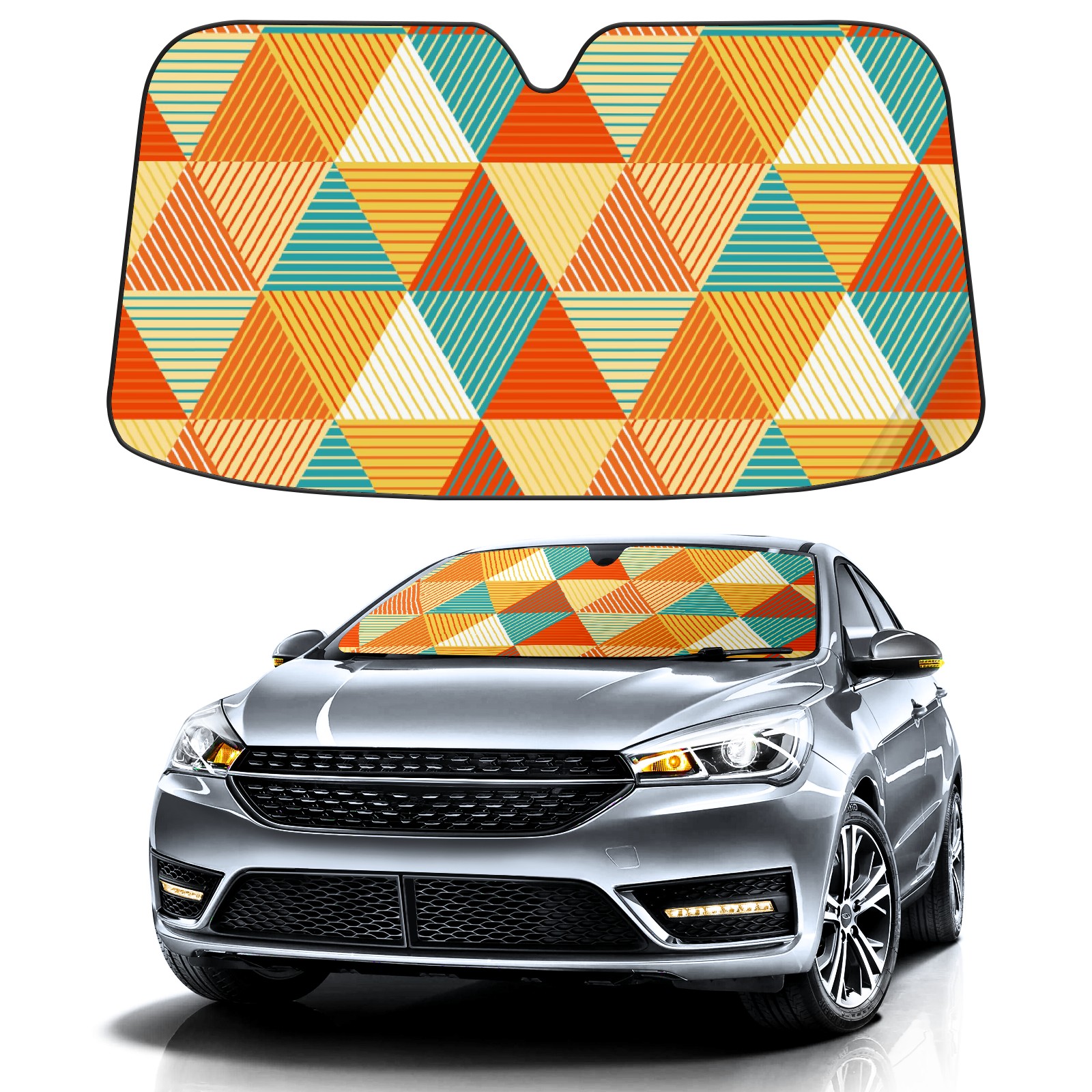Car Windshield Sun Shade for Front Window Colorful Triangle Geometry Foldable Vehicle Windshield Car Sun Visor Covers Automotive Window Protector Car Privacy Sun Blocker