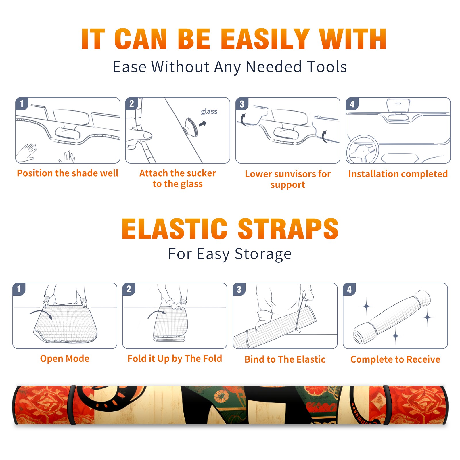 • <b>ZXIVGOQFR Foldable Premium Car Windshield Sunshade is your great solution to reduce your car’s interior temperature dramatically! This is definitely a must-have item for your summer travel! </b> <br> ●<b>Size: 63"L x 33.5"W </b> <br></b> ●<b>Blocking Uv Rays & Heat Insulation<br></b> Our vehicle sunshade provides effective UV, sun, and summer heat protection .Maintains dashboards by preventing fading and cracking <br> ●<b>Easy-To-Store Folding Design Makes Storage Convenient <br></b> ZXIVGOQFR car sunshades come with removable suction cups and elastic bands that you can install easily and quickly, and the removable suction cups will not leave any marks on your windows when removed. Within seconds, windshield visor can be installed and removed. When not in use,the front windshield can be easily and effectively placed on the door pocket or the dashboard, which is beautiful and does not take up space in the car.<br> <br> <b>PUT UP A 'PROTECTIVE UMBRELLA' FOR YOUR BELOVED CAR!</b>