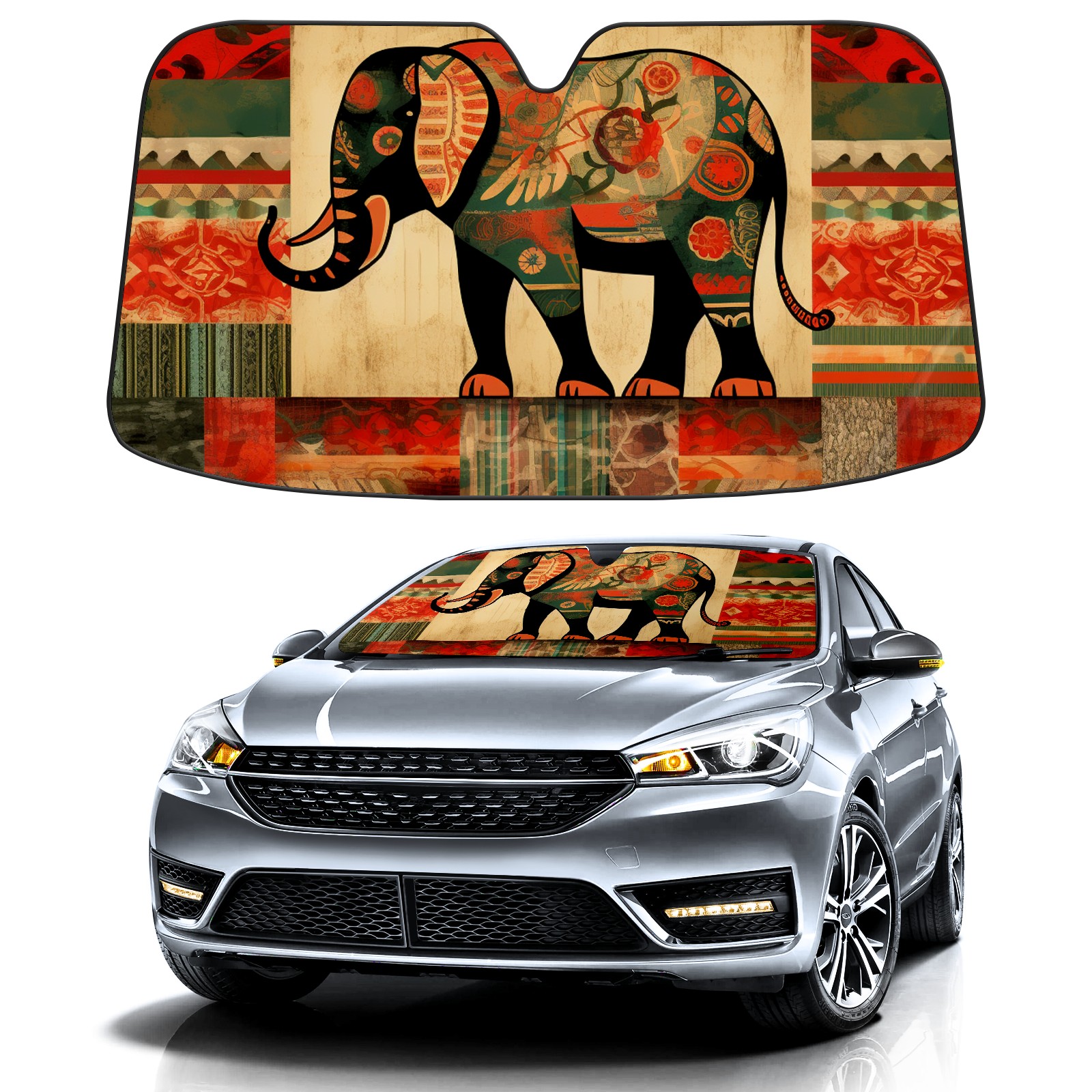 Car Windshield Sun Shade for Front Window Red Brown Elephant (2) Foldable Vehicle Windshield Car Sun Visor Covers Automotive Window Protector Car Privacy Sun Blocker