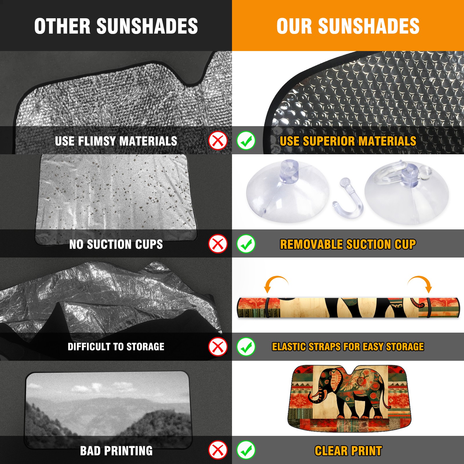 <b>ZXIVGOQFR Foldable Premium Car Windshield Sunshade is your great solution to reduce your car’s interior temperature dramatically! This is definitely a must-have item for your summer travel! </b> <br> ●<b>Size: 63"L x 33.5"W </b> <br></b> ●<b>Blocking Uv Rays & Heat Insulation<br></b> Our vehicle sunshade provides effective UV, sun, and summer heat protection .Maintains dashboards by preventing fading and cracking <br> ●<b>Easy-To-Store Folding Design Makes Storage Convenient <br></b> ZXIVGOQFR car sunshades come with removable suction cups and elastic bands that you can install easily and quickly, and the removable suction cups will not leave any marks on your windows when removed. Within seconds, windshield visor can be installed and removed. When not in use,the front windshield can be easily and effectively placed on the door pocket or the dashboard, which is beautiful and does not take up space in the car.<br> <br> <b>PUT UP A 'PROTECTIVE UMBRELLA' FOR YOUR BELOVED CAR!</b>
