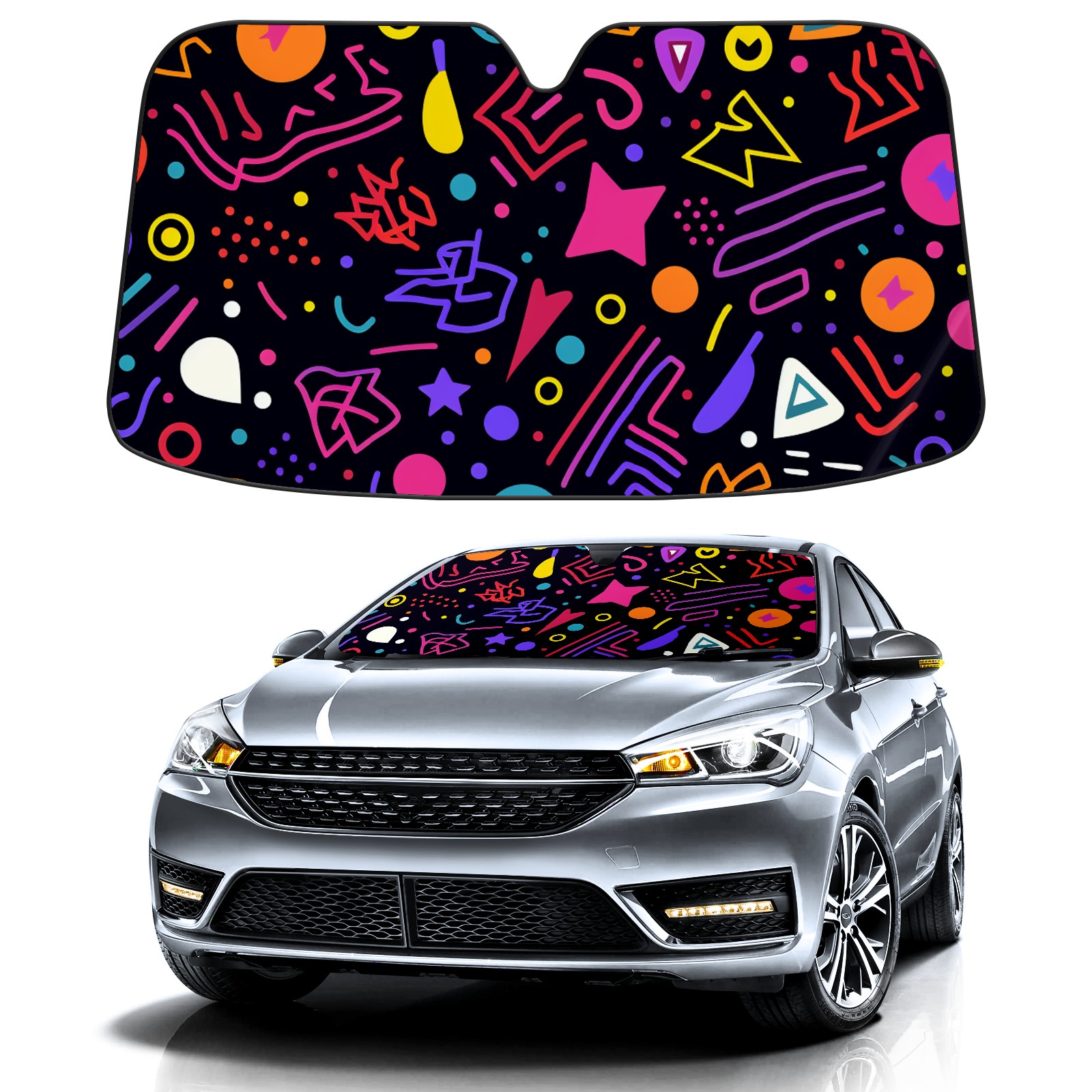 Car Windshield Sun Shade for Front Window Colorful Pattern (6) Foldable Vehicle Windshield Car Sun Visor Covers Automotive Window Protector Car Privacy Sun Blocker