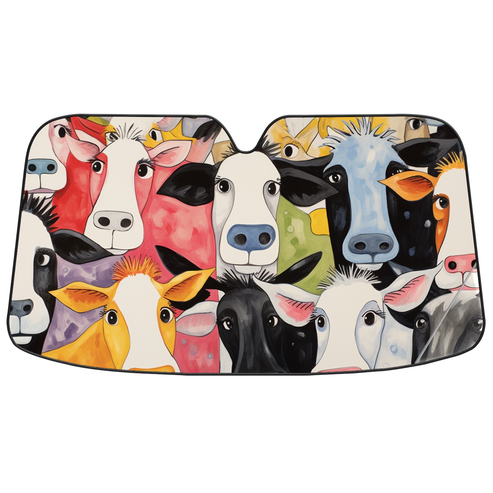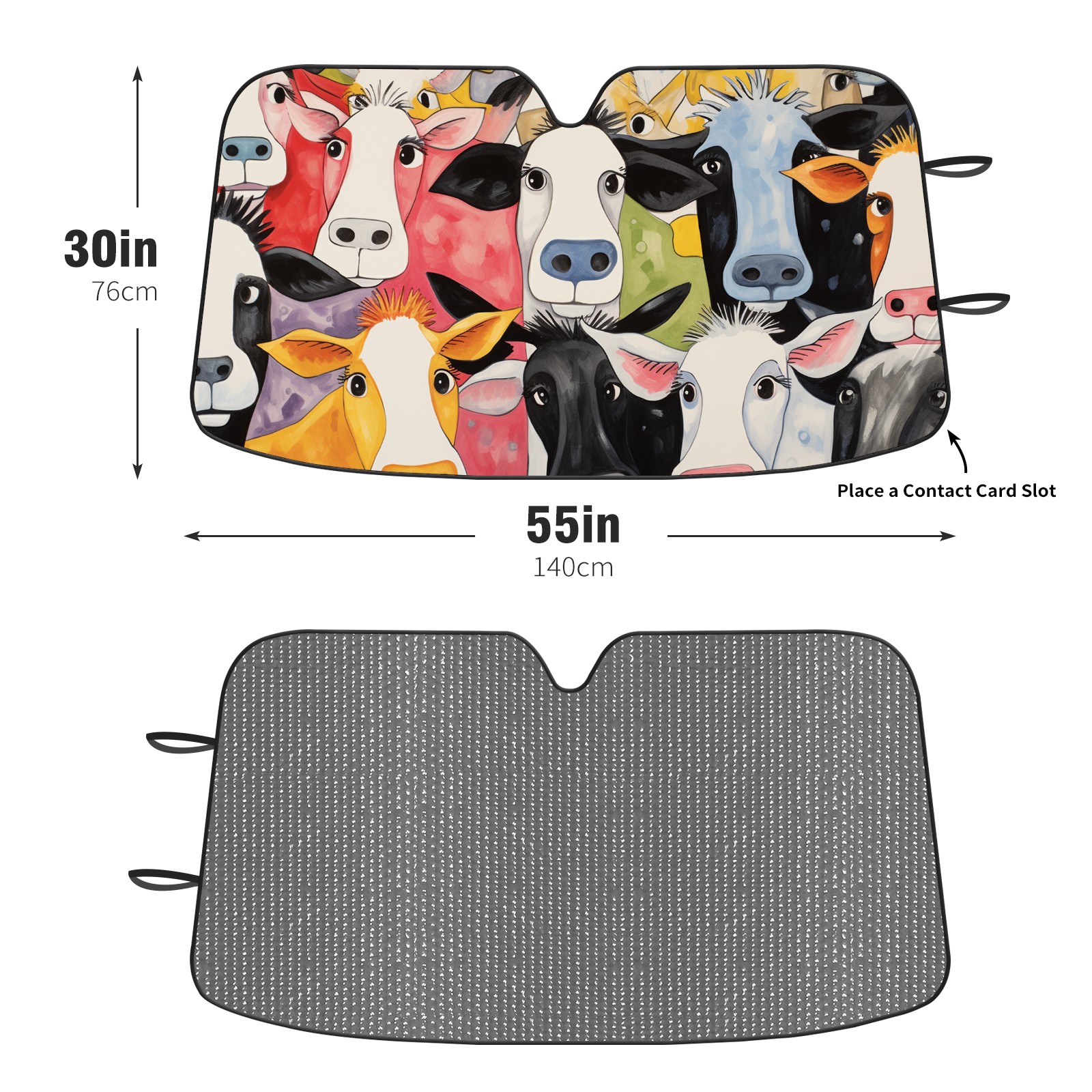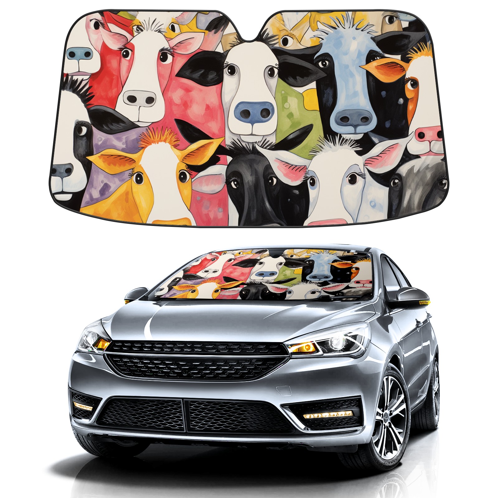 Car Windshield Sun Shade for Front Window Vintage Painted Funny Cute Cow Foldable Vehicle Windshield Car Sun Visor Covers Automotive Window Protector Car Privacy Sun Blocker
