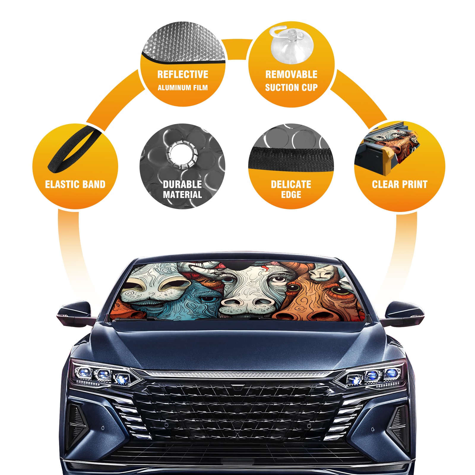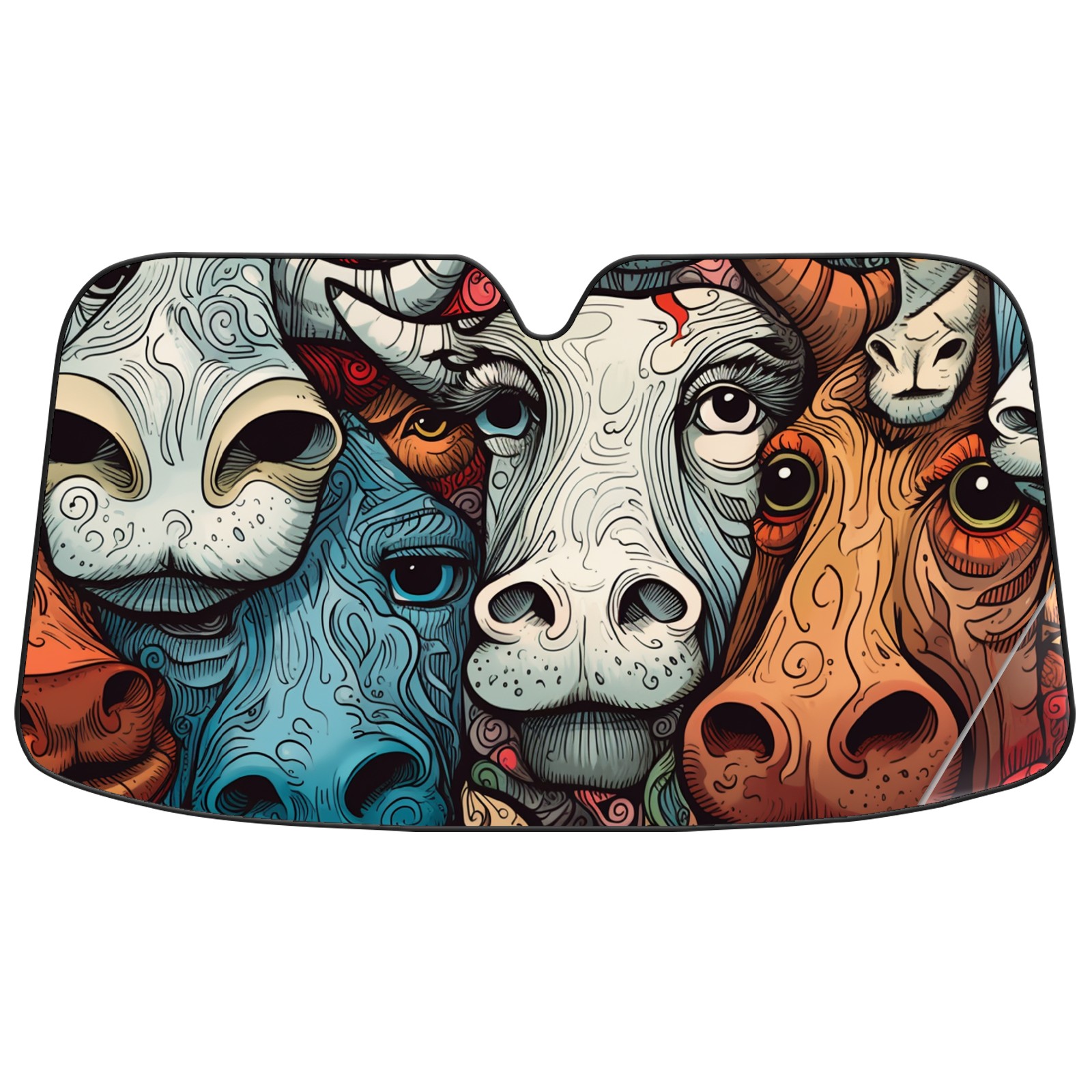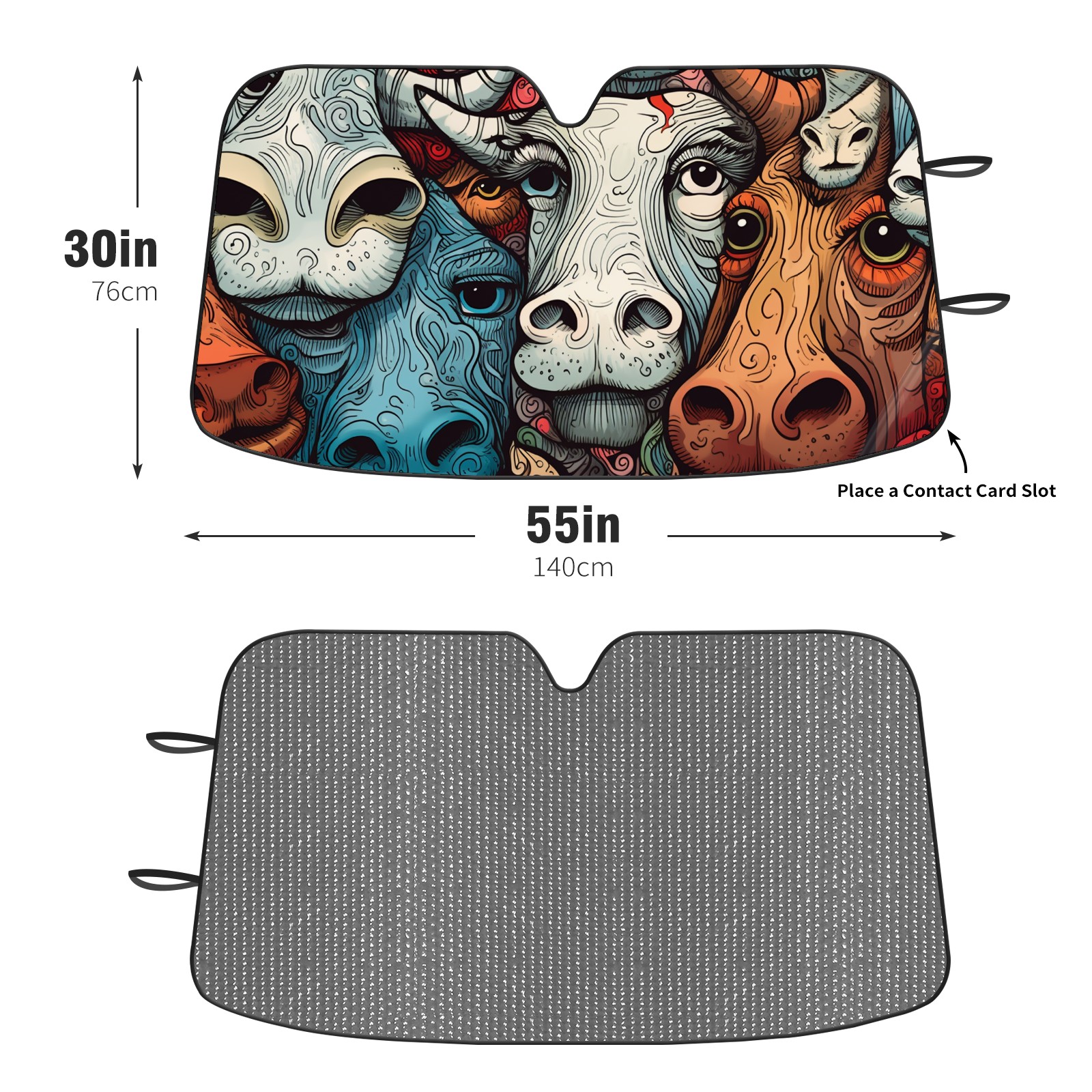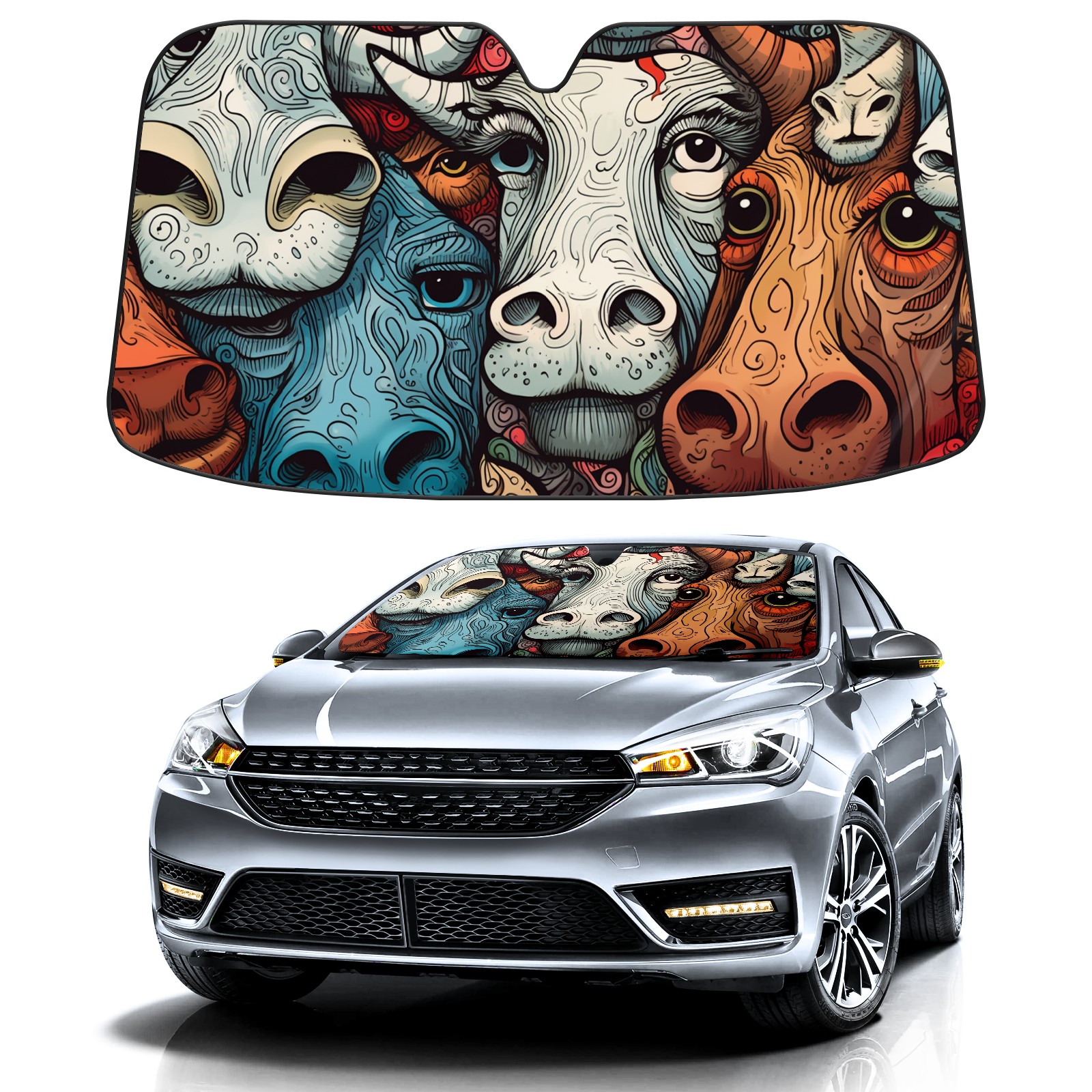 Car Windshield Sun Shade for Front Window Vintage Painted Funny Cow Foldable Vehicle Windshield Car Sun Visor Covers Automotive Window Protector Car Privacy Sun Blocker