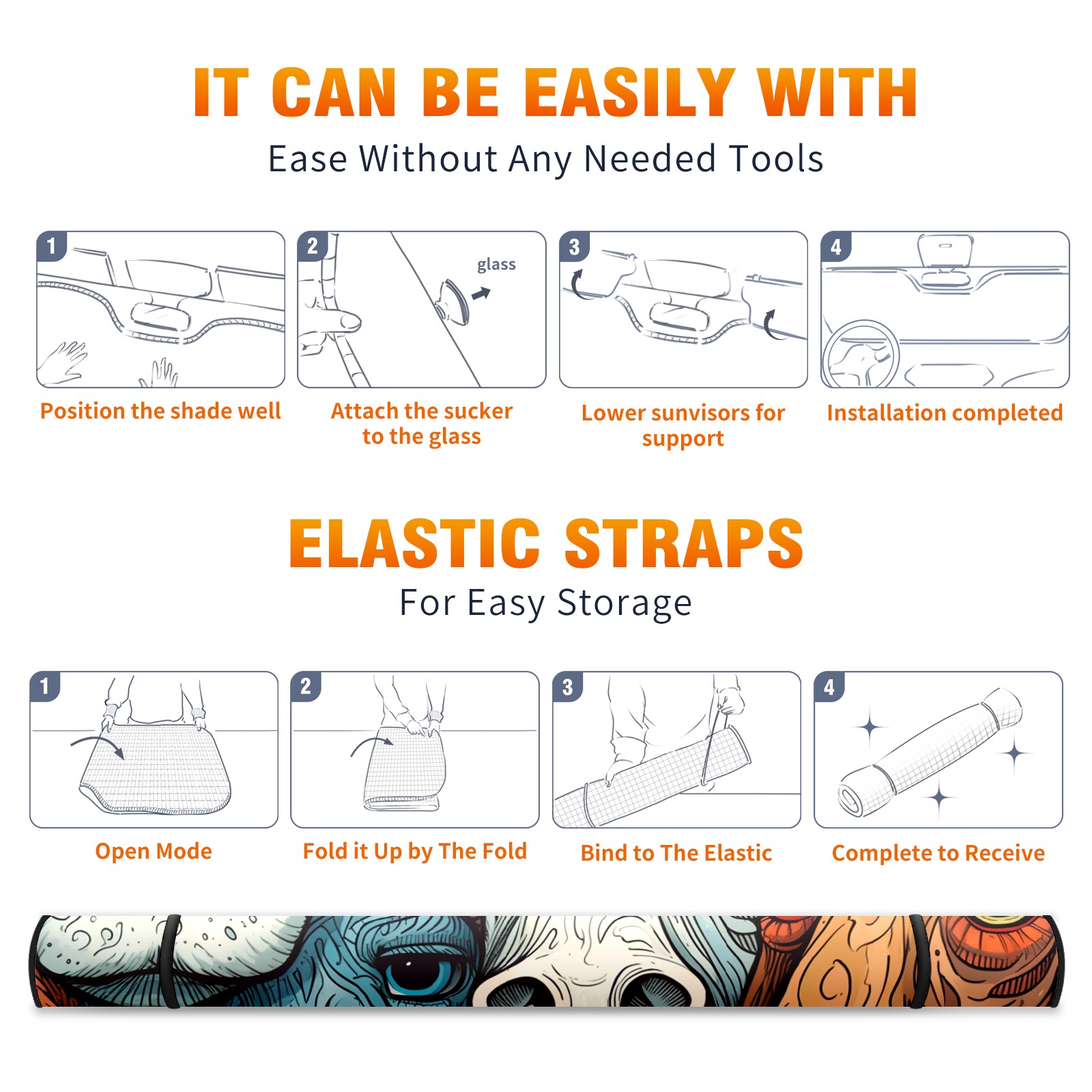 <b>ZXIVGOQFR Foldable Premium Car Windshield Sunshade is your great solution to reduce your car’s interior temperature dramatically! This is definitely a must-have item for your summer travel! </b> <br> ●<b>Size: 63"L x 33.5"W </b> <br></b> ●<b>Blocking Uv Rays & Heat Insulation<br></b> Our vehicle sunshade provides effective UV, sun, and summer heat protection .Maintains dashboards by preventing fading and cracking <br> ●<b>Easy-To-Store Folding Design Makes Storage Convenient <br></b> ZXIVGOQFR car sunshades come with removable suction cups and elastic bands that you can install easily and quickly, and the removable suction cups will not leave any marks on your windows when removed. Within seconds, windshield visor can be installed and removed. When not in use,the front windshield can be easily and effectively placed on the door pocket or the dashboard, which is beautiful and does not take up space in the car.<br> <br> <b>PUT UP A 'PROTECTIVE UMBRELLA' FOR YOUR BELOVED CAR!</b>