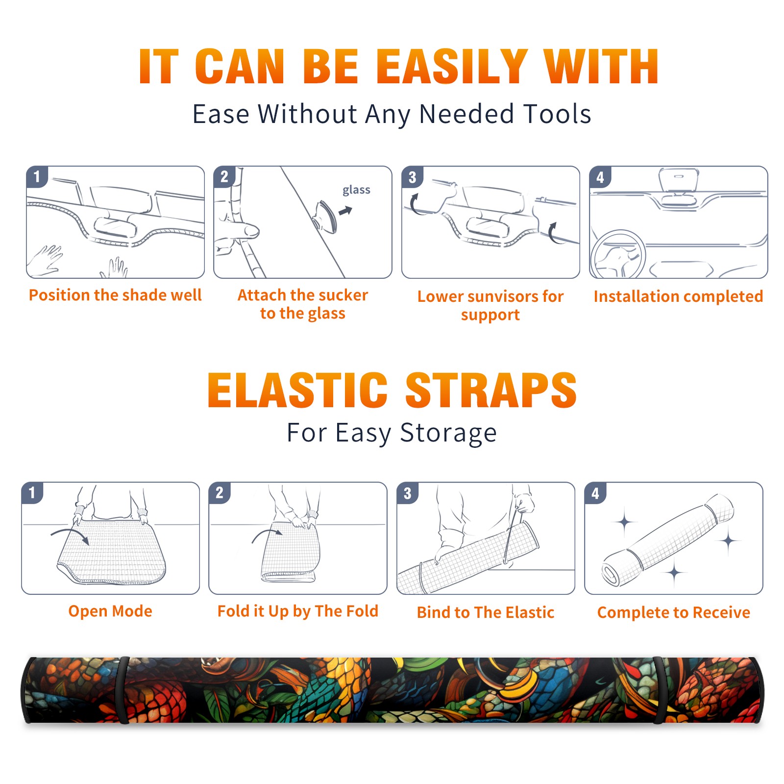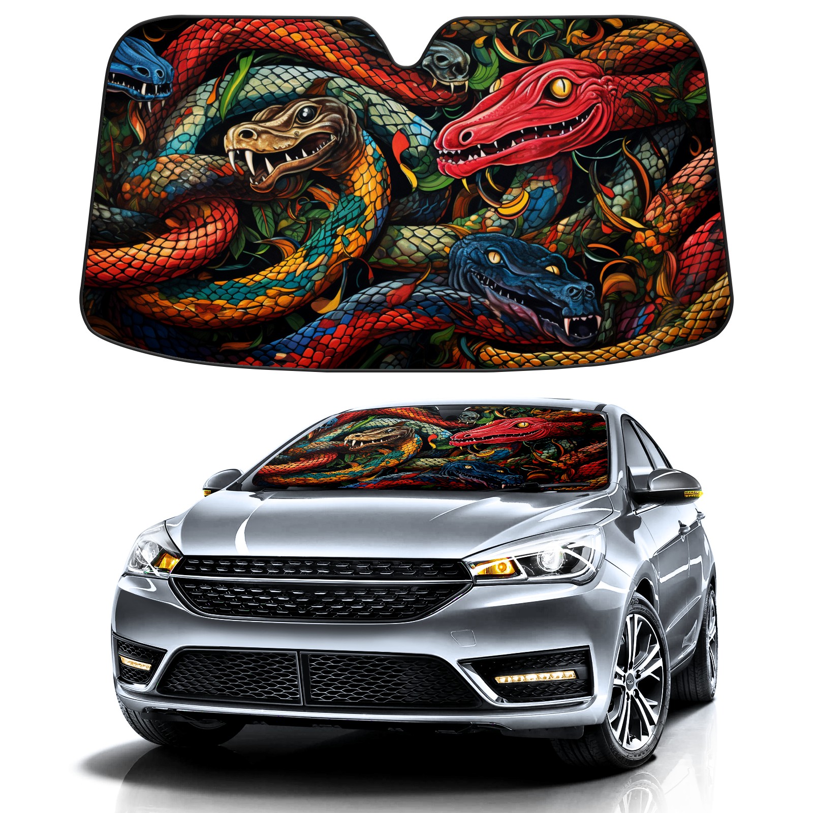 Car Windshield Sun Shade for Front Window Retro Hand Drawn Snake Foldable Vehicle Windshield Car Sun Visor Covers Automotive Window Protector Car Privacy Sun Blocker