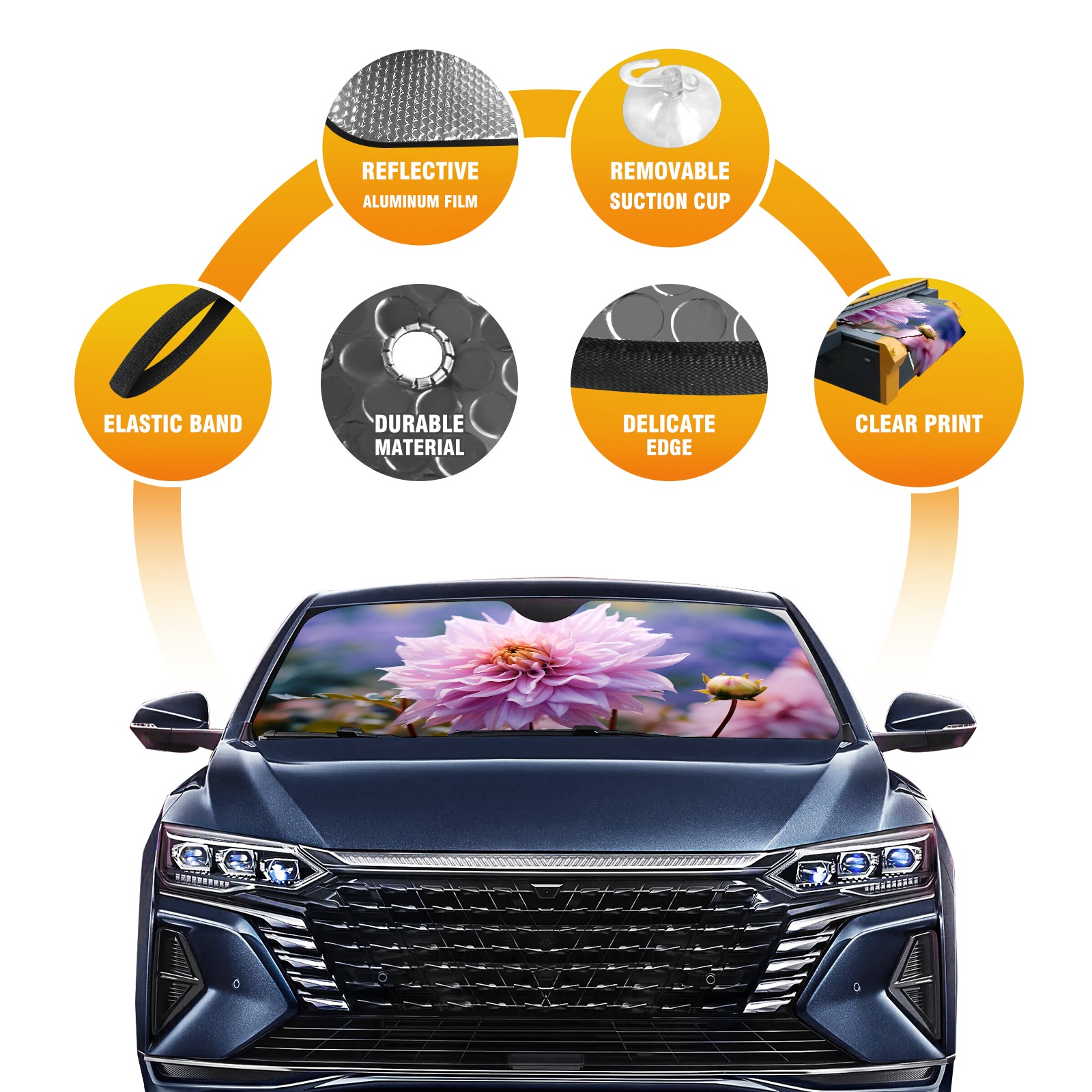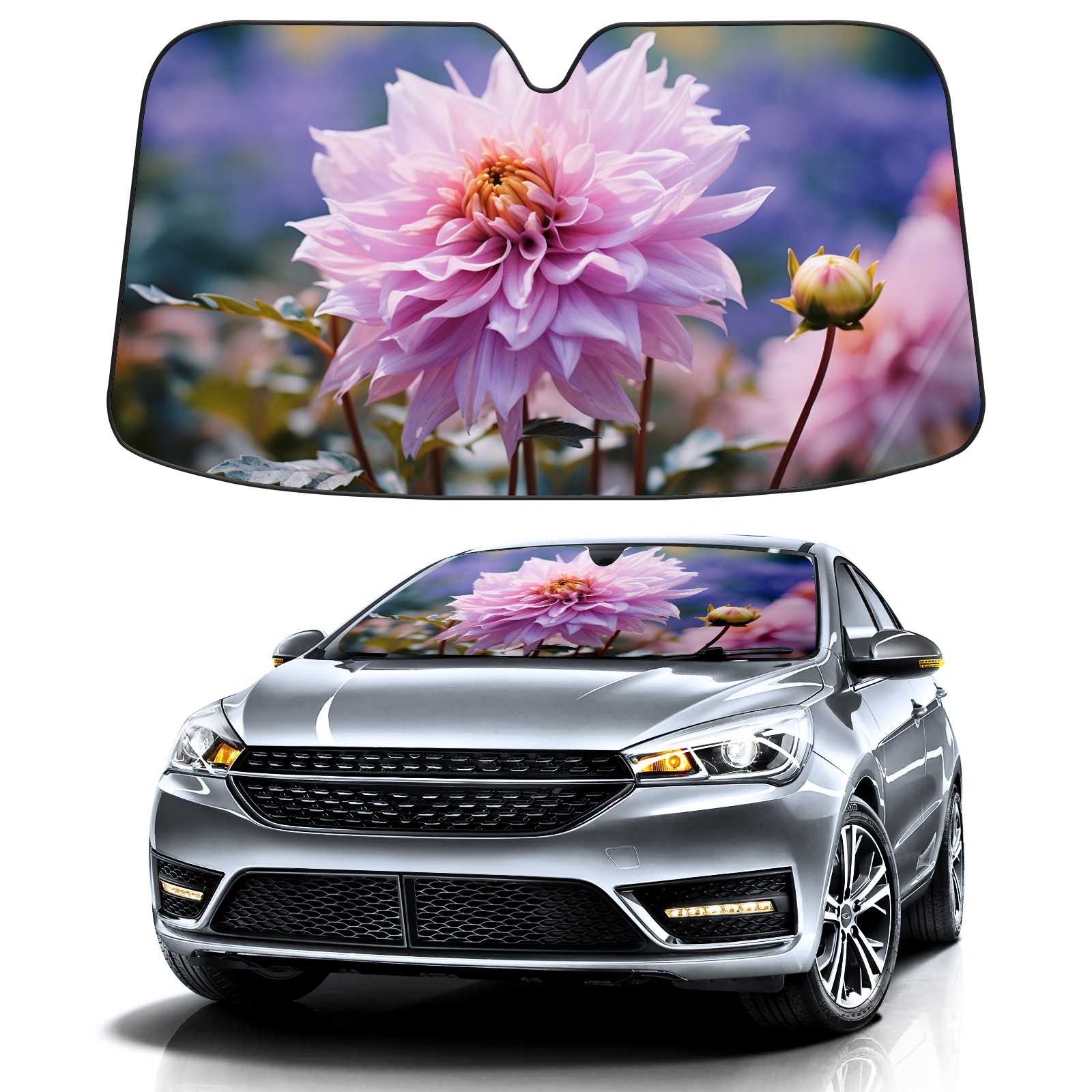 Car Windshield Sun Shade for Front Window Chrysanthemum Beautiful Flowers Foldable Vehicle Windshield Car Sun Visor Covers Automotive Window Protector Car Privacy Sun Blocker