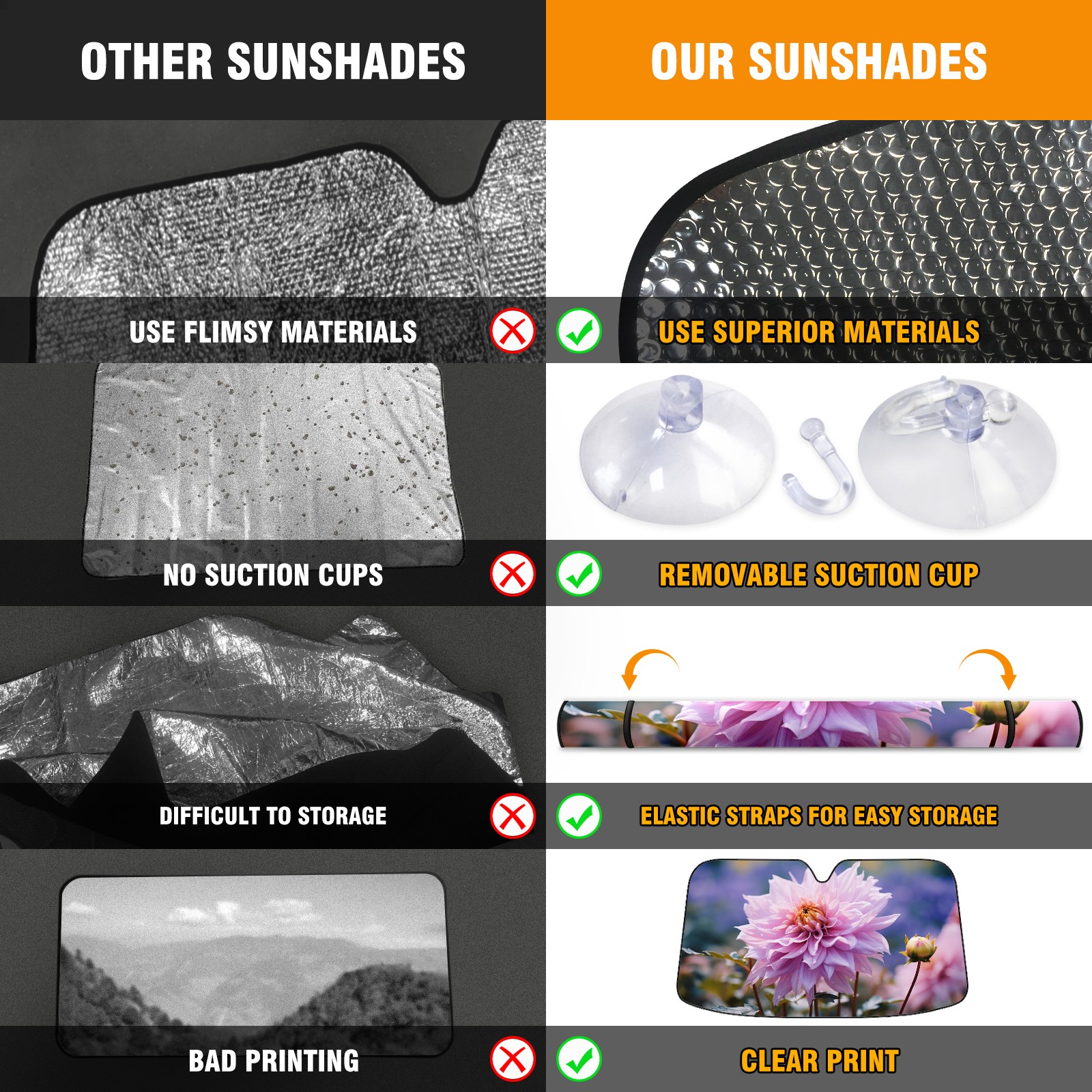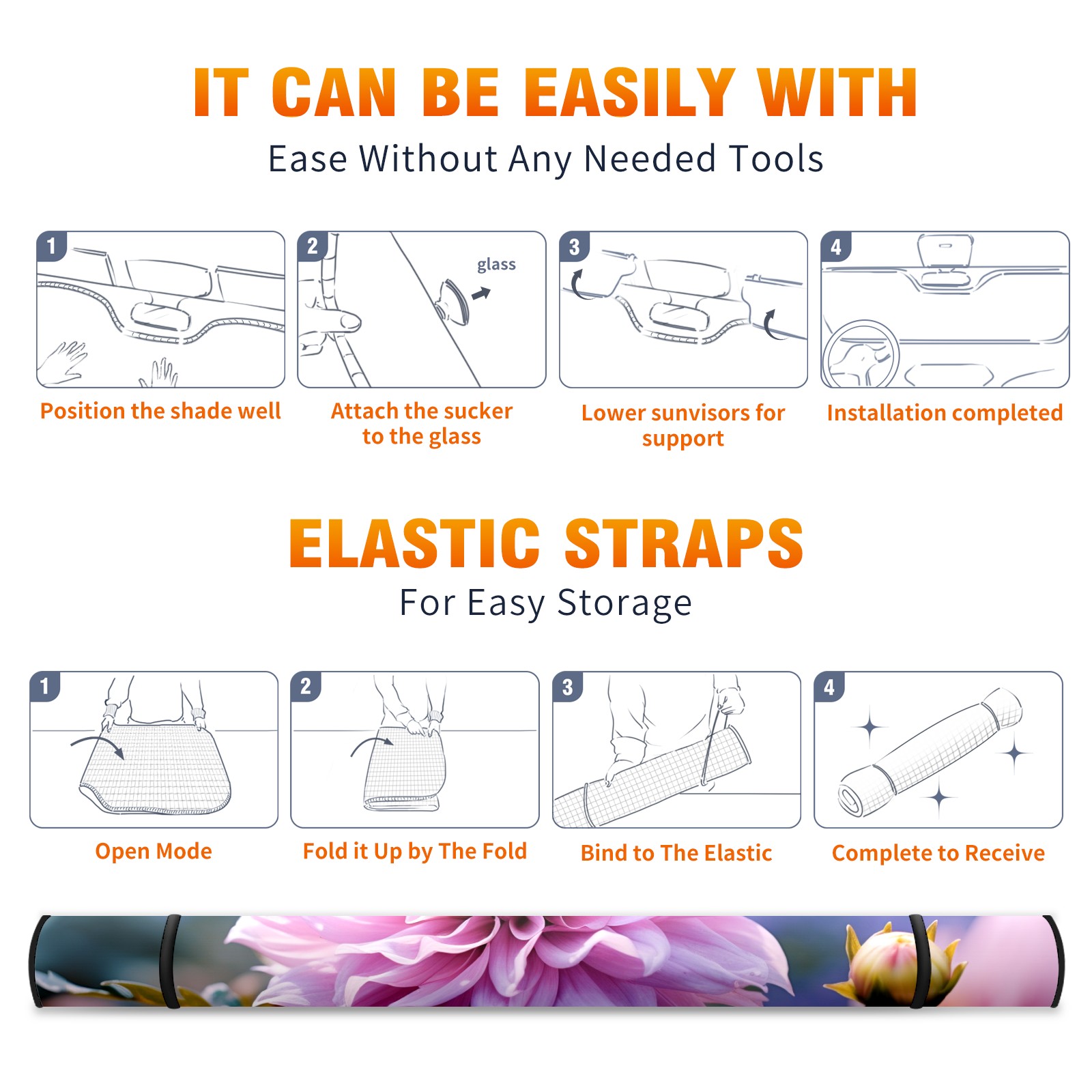 • <b>ZXIVGOQFR Foldable Premium Car Windshield Sunshade is your great solution to reduce your car’s interior temperature dramatically! This is definitely a must-have item for your summer travel! </b> <br> ●<b>Size: 63"L x 33.5"W </b> <br></b> ●<b>Blocking Uv Rays & Heat Insulation<br></b> Our vehicle sunshade provides effective UV, sun, and summer heat protection .Maintains dashboards by preventing fading and cracking <br> ●<b>Easy-To-Store Folding Design Makes Storage Convenient <br></b> ZXIVGOQFR car sunshades come with removable suction cups and elastic bands that you can install easily and quickly, and the removable suction cups will not leave any marks on your windows when removed. Within seconds, windshield visor can be installed and removed. When not in use,the front windshield can be easily and effectively placed on the door pocket or the dashboard, which is beautiful and does not take up space in the car.<br> <br> <b>PUT UP A 'PROTECTIVE UMBRELLA' FOR YOUR BELOVED CAR!</b>