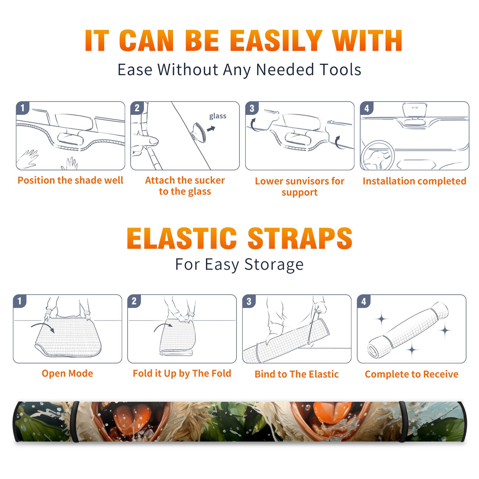 • <b>ZXIVGOQFR Foldable Premium Car Windshield Sunshade is your great solution to reduce your car’s interior temperature dramatically! This is definitely a must-have item for your summer travel! </b> <br> ●<b>Size: 63"L x 33.5"W </b> <br></b> ●<b>Blocking Uv Rays & Heat Insulation<br></b> Our vehicle sunshade provides effective UV, sun, and summer heat protection .Maintains dashboards by preventing fading and cracking <br> ●<b>Easy-To-Store Folding Design Makes Storage Convenient <br></b> ZXIVGOQFR car sunshades come with removable suction cups and elastic bands that you can install easily and quickly, and the removable suction cups will not leave any marks on your windows when removed. Within seconds, windshield visor can be installed and removed. When not in use,the front windshield can be easily and effectively placed on the door pocket or the dashboard, which is beautiful and does not take up space in the car.<br> <br> <b>PUT UP A 'PROTECTIVE UMBRELLA' FOR YOUR BELOVED CAR!</b>