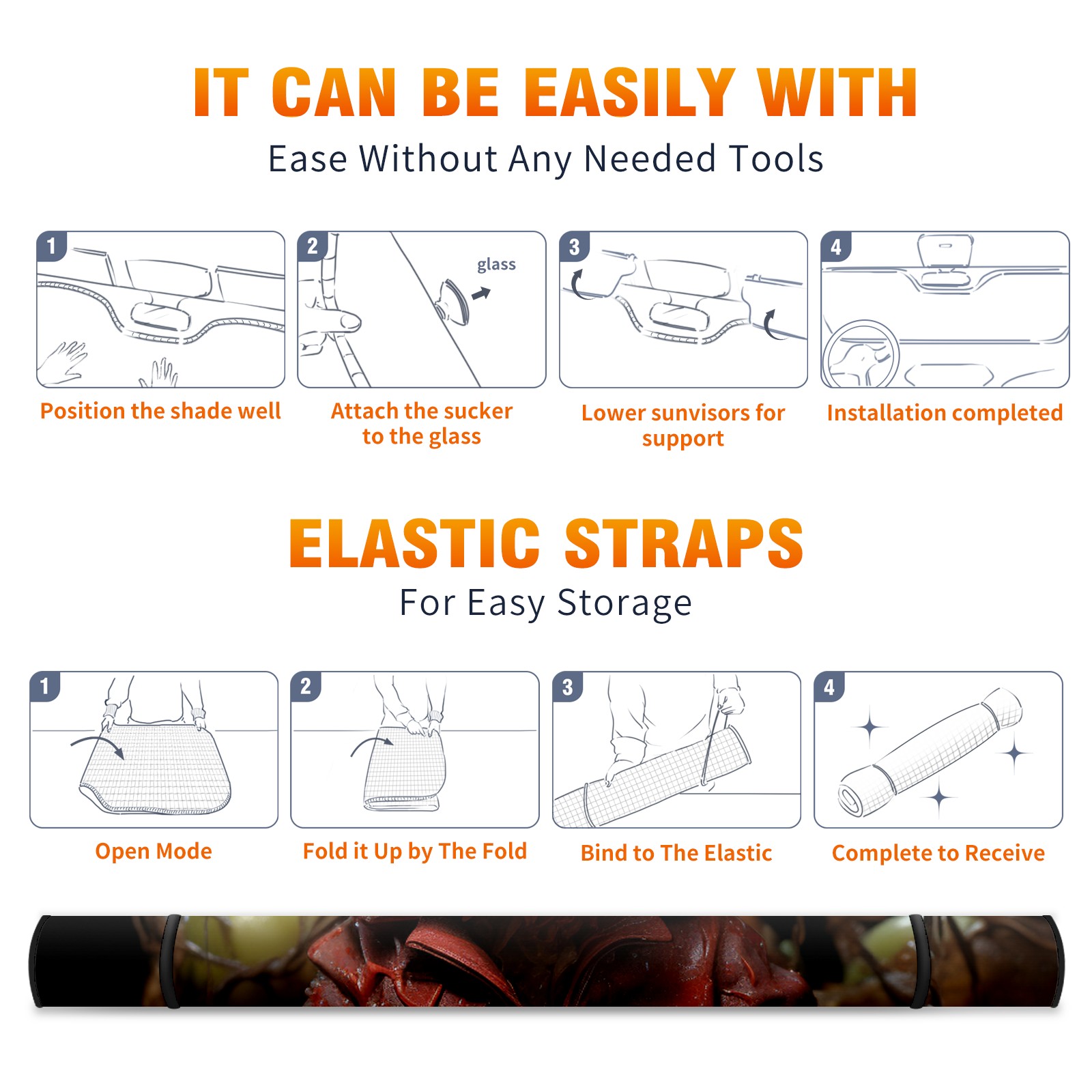 • <b>ZXIVGOQFR Foldable Premium Car Windshield Sunshade is your great solution to reduce your car’s interior temperature dramatically! This is definitely a must-have item for your summer travel! </b> <br> ●<b>Size: 63"L x 33.5"W </b> <br></b> ●<b>Blocking Uv Rays & Heat Insulation<br></b> Our vehicle sunshade provides effective UV, sun, and summer heat protection .Maintains dashboards by preventing fading and cracking <br> ●<b>Easy-To-Store Folding Design Makes Storage Convenient <br></b> ZXIVGOQFR car sunshades come with removable suction cups and elastic bands that you can install easily and quickly, and the removable suction cups will not leave any marks on your windows when removed. Within seconds, windshield visor can be installed and removed. When not in use,the front windshield can be easily and effectively placed on the door pocket or the dashboard, which is beautiful and does not take up space in the car.<br> <br> <b>PUT UP A 'PROTECTIVE UMBRELLA' FOR YOUR BELOVED CAR!</b>