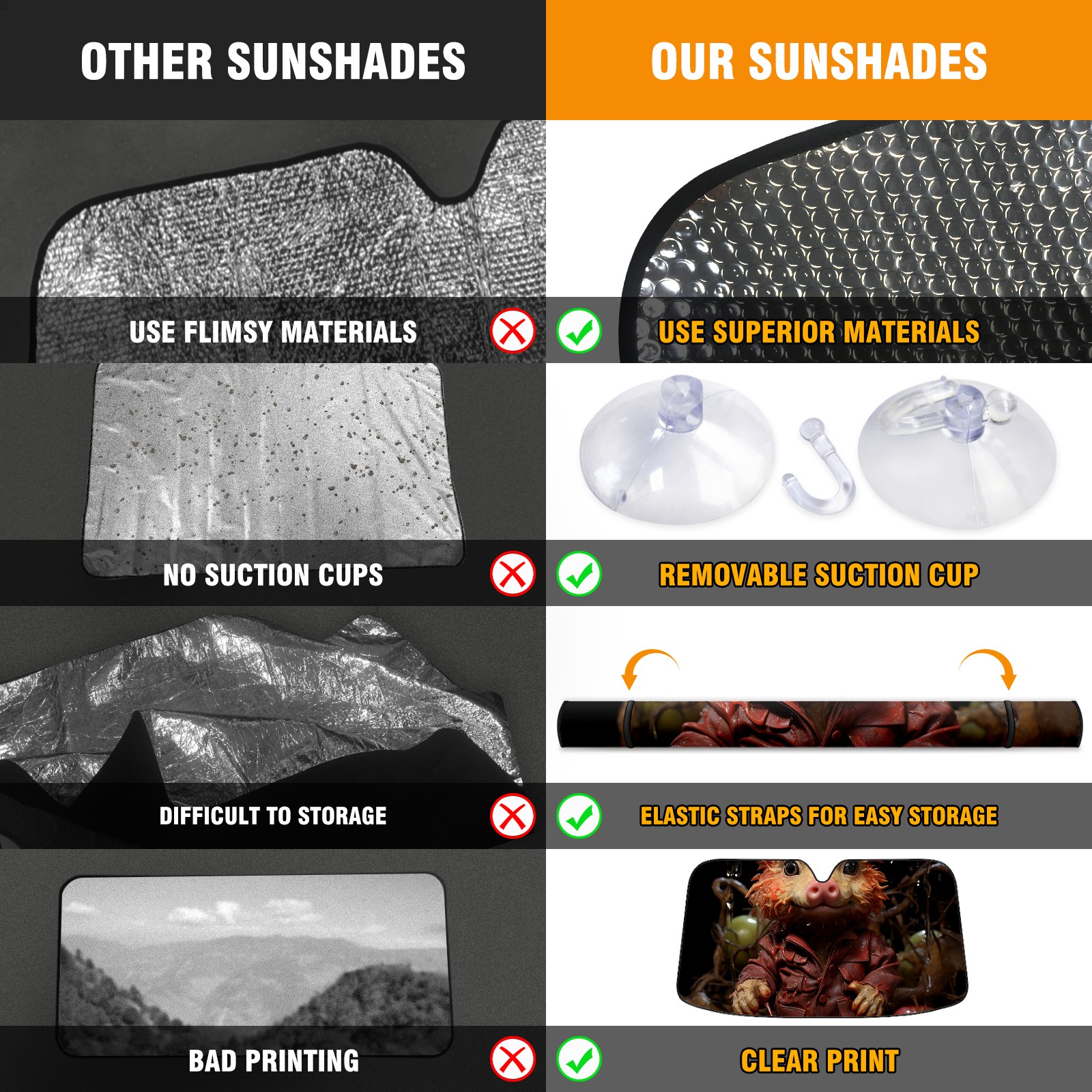 <b>ZXIVGOQFR Foldable Premium Car Windshield Sunshade is your great solution to reduce your car’s interior temperature dramatically! This is definitely a must-have item for your summer travel! </b> <br> ●<b>Size: 63"L x 33.5"W </b> <br></b> ●<b>Blocking Uv Rays & Heat Insulation<br></b> Our vehicle sunshade provides effective UV, sun, and summer heat protection .Maintains dashboards by preventing fading and cracking <br> ●<b>Easy-To-Store Folding Design Makes Storage Convenient <br></b> ZXIVGOQFR car sunshades come with removable suction cups and elastic bands that you can install easily and quickly, and the removable suction cups will not leave any marks on your windows when removed. Within seconds, windshield visor can be installed and removed. When not in use,the front windshield can be easily and effectively placed on the door pocket or the dashboard, which is beautiful and does not take up space in the car.<br> <br> <b>PUT UP A 'PROTECTIVE UMBRELLA' FOR YOUR BELOVED CAR!</b>