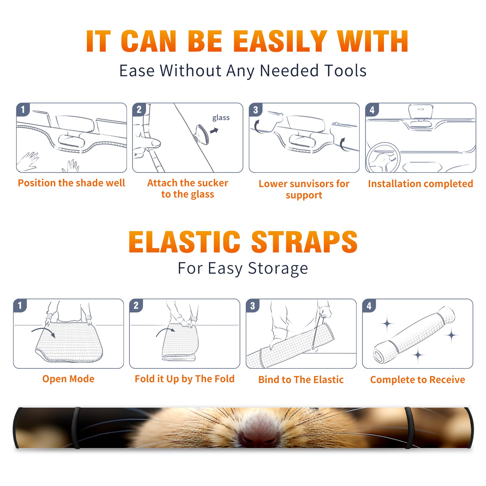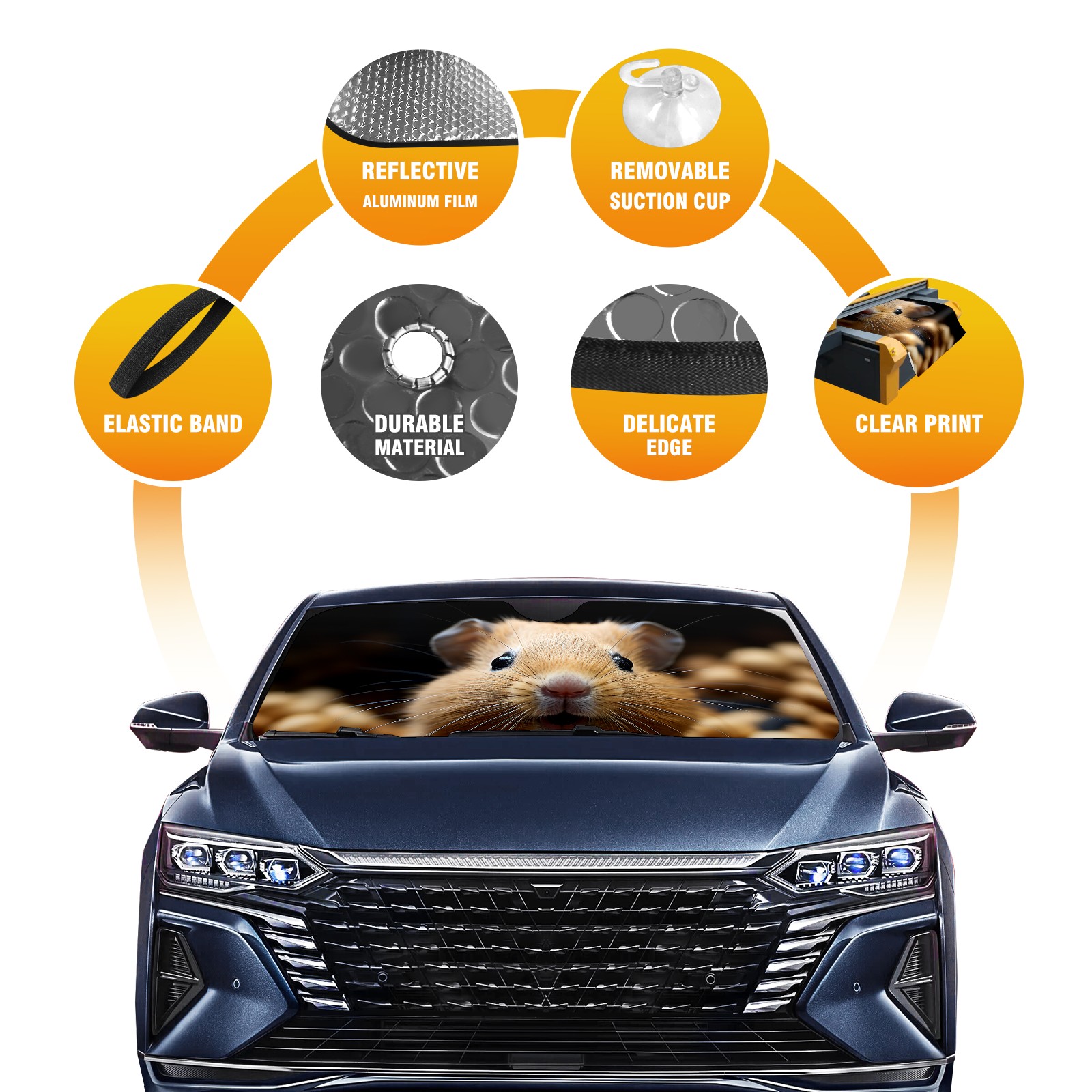Car Windshield Sun Shade for Front Window Hamster Foldable Vehicle Windshield Car Sun Visor Covers Automotive Window Protector Car Privacy Sun Blocker