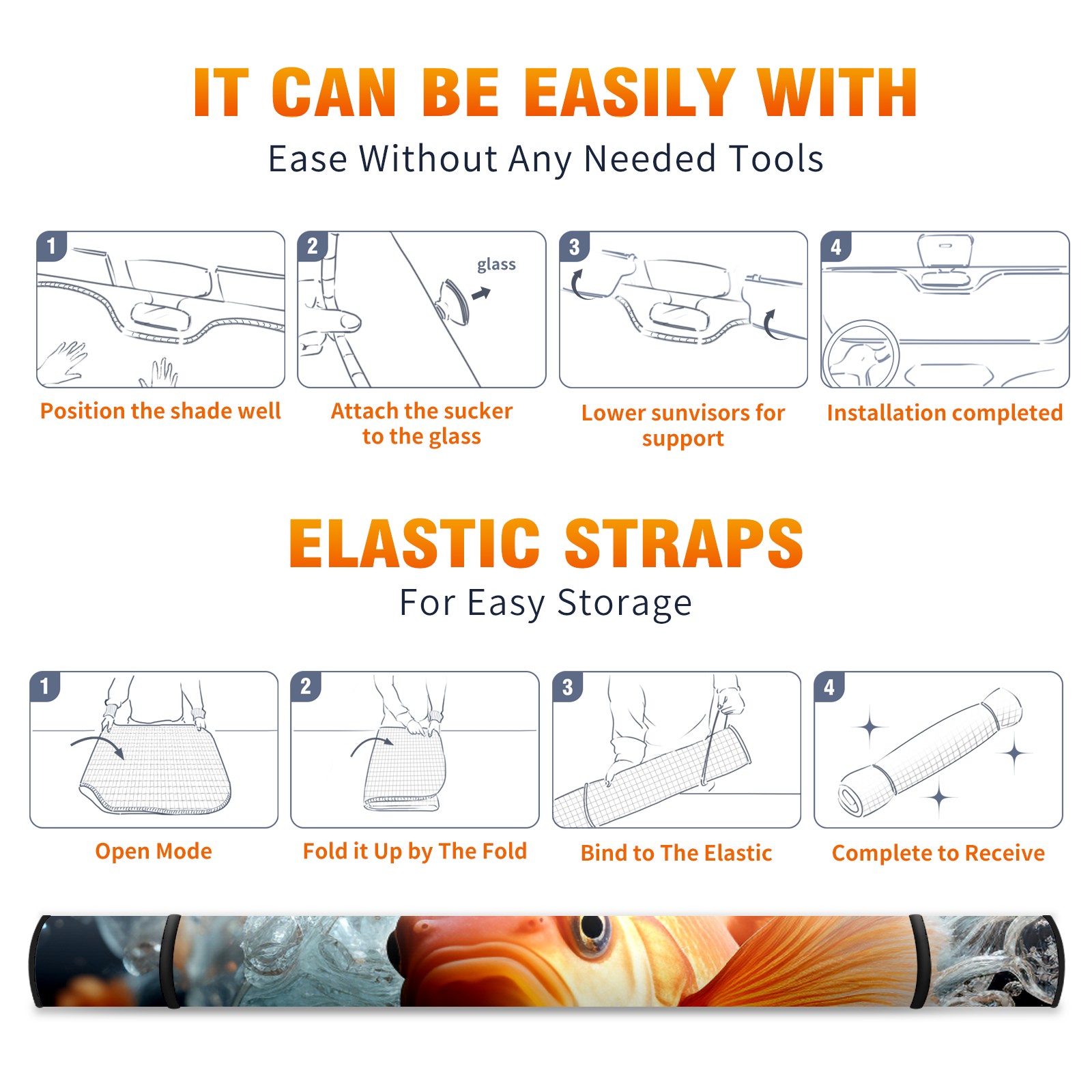 <b>ZXIVGOQFR Foldable Premium Car Windshield Sunshade is your great solution to reduce your car’s interior temperature dramatically! This is definitely a must-have item for your summer travel! </b> <br> ●<b>Size: 63"L x 33.5"W </b> <br></b> ●<b>Blocking Uv Rays & Heat Insulation<br></b> Our vehicle sunshade provides effective UV, sun, and summer heat protection .Maintains dashboards by preventing fading and cracking <br> ●<b>Easy-To-Store Folding Design Makes Storage Convenient <br></b> ZXIVGOQFR car sunshades come with removable suction cups and elastic bands that you can install easily and quickly, and the removable suction cups will not leave any marks on your windows when removed. Within seconds, windshield visor can be installed and removed. When not in use,the front windshield can be easily and effectively placed on the door pocket or the dashboard, which is beautiful and does not take up space in the car.<br> <br> <b>PUT UP A 'PROTECTIVE UMBRELLA' FOR YOUR BELOVED CAR!</b>