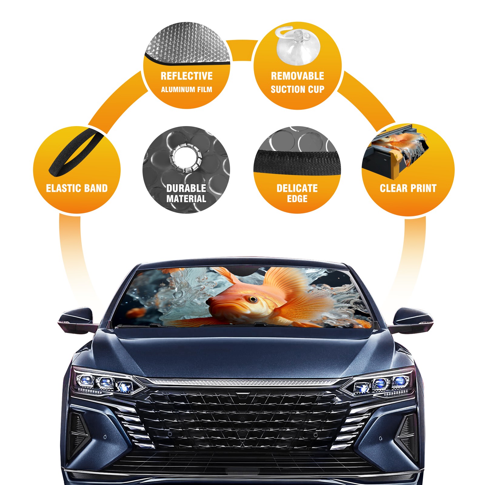Car Windshield Sun Shade for Front Window Koi Carp Foldable Vehicle Windshield Car Sun Visor Covers Automotive Window Protector Car Privacy Sun Blocker