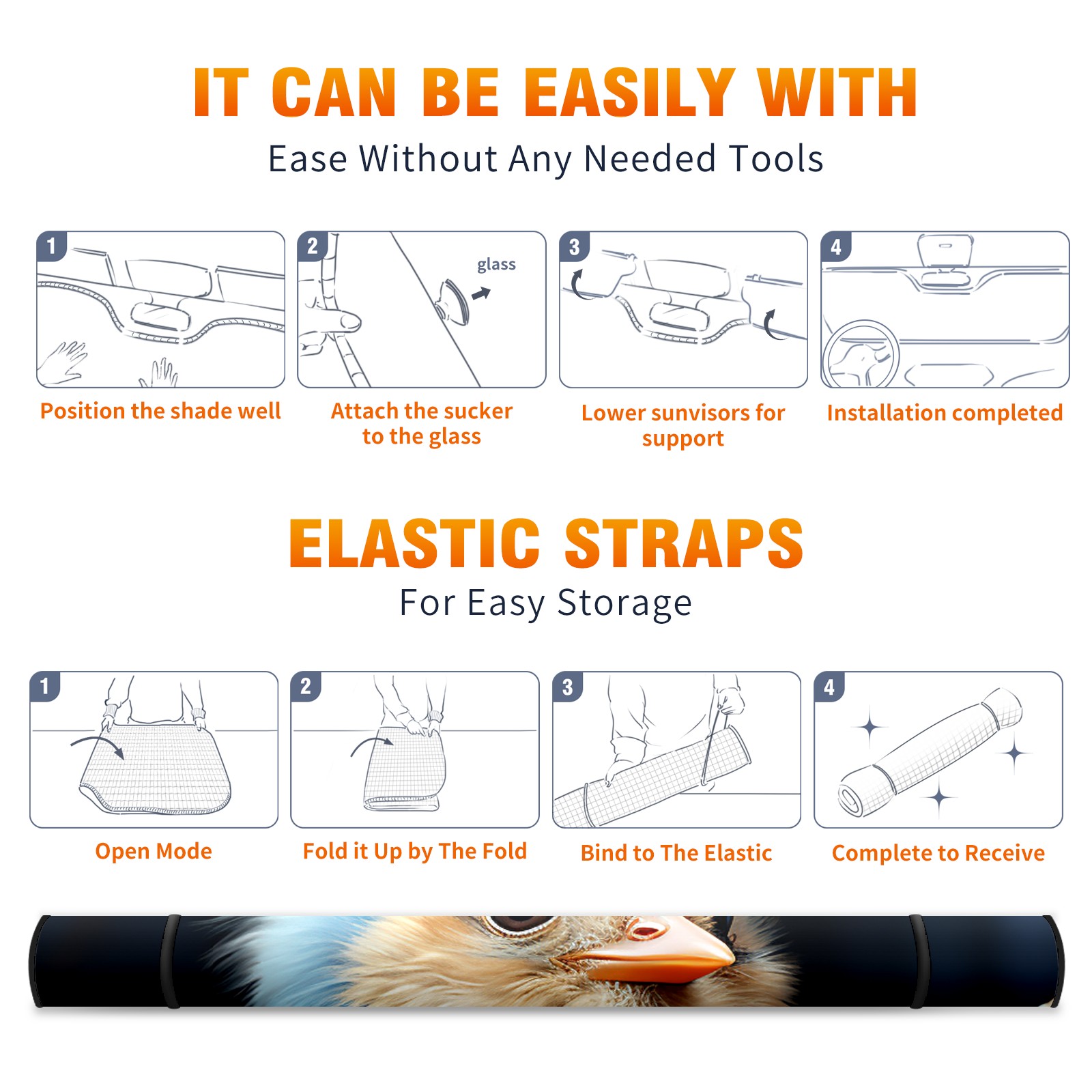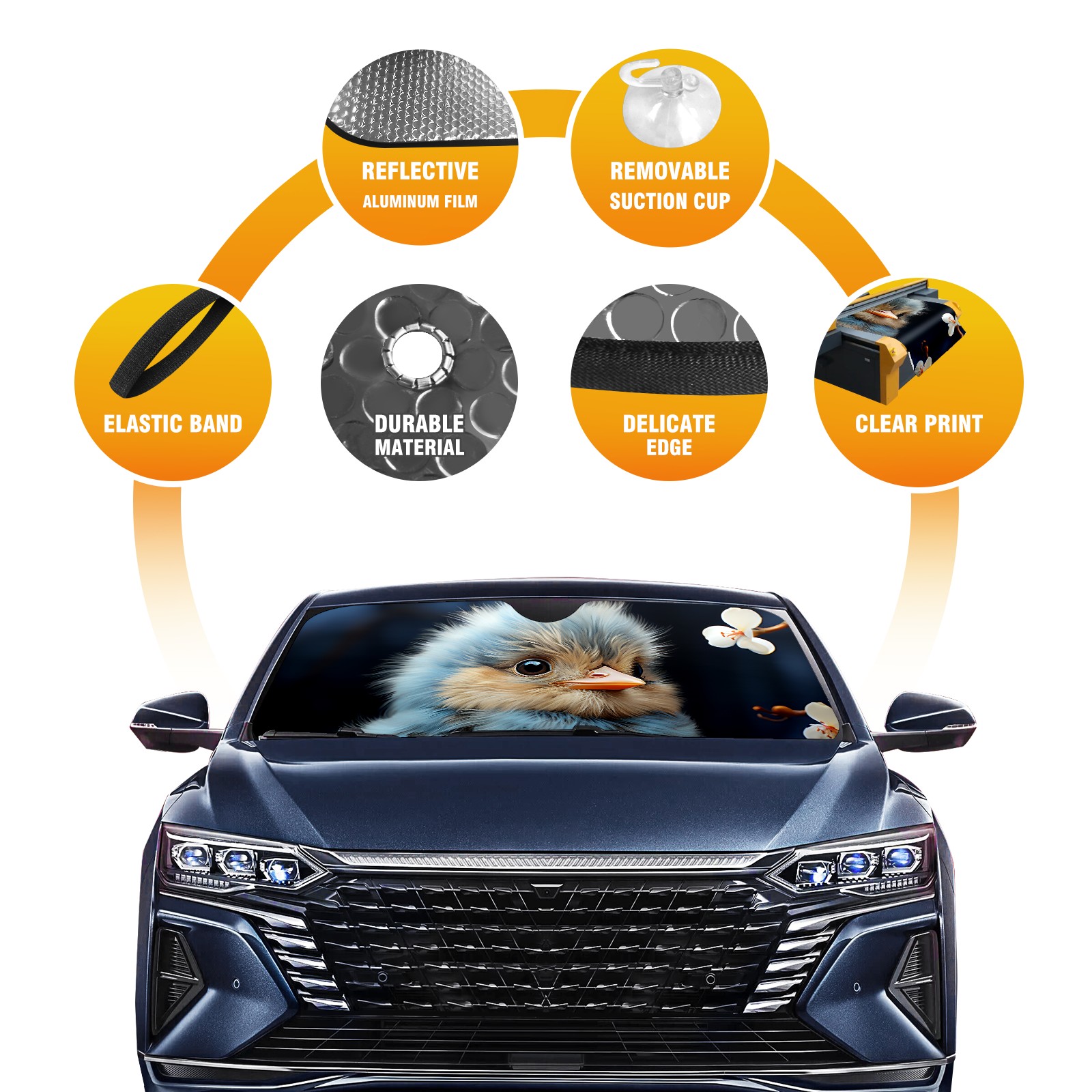 • <b>ZXIVGOQFR Foldable Premium Car Windshield Sunshade is your great solution to reduce your car’s interior temperature dramatically! This is definitely a must-have item for your summer travel! </b> <br> ●<b>Size: 63"L x 33.5"W </b> <br></b> ●<b>Blocking Uv Rays & Heat Insulation<br></b> Our vehicle sunshade provides effective UV, sun, and summer heat protection .Maintains dashboards by preventing fading and cracking <br> ●<b>Easy-To-Store Folding Design Makes Storage Convenient <br></b> ZXIVGOQFR car sunshades come with removable suction cups and elastic bands that you can install easily and quickly, and the removable suction cups will not leave any marks on your windows when removed. Within seconds, windshield visor can be installed and removed. When not in use,the front windshield can be easily and effectively placed on the door pocket or the dashboard, which is beautiful and does not take up space in the car.<br> <br> <b>PUT UP A 'PROTECTIVE UMBRELLA' FOR YOUR BELOVED CAR!</b>