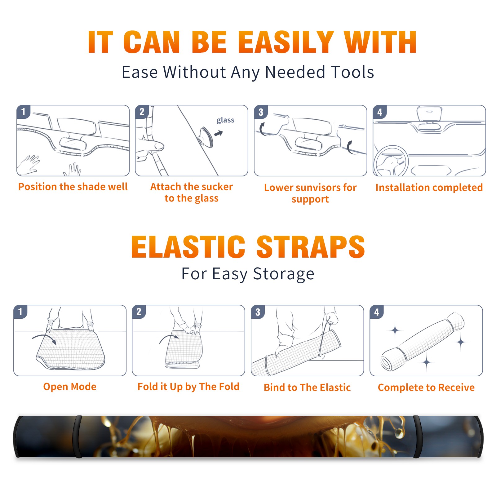 • <b>ZXIVGOQFR Foldable Premium Car Windshield Sunshade is your great solution to reduce your car’s interior temperature dramatically! This is definitely a must-have item for your summer travel! </b> <br> ●<b>Size: 63"L x 33.5"W </b> <br></b> ●<b>Blocking Uv Rays & Heat Insulation<br></b> Our vehicle sunshade provides effective UV, sun, and summer heat protection .Maintains dashboards by preventing fading and cracking <br> ●<b>Easy-To-Store Folding Design Makes Storage Convenient <br></b> ZXIVGOQFR car sunshades come with removable suction cups and elastic bands that you can install easily and quickly, and the removable suction cups will not leave any marks on your windows when removed. Within seconds, windshield visor can be installed and removed. When not in use,the front windshield can be easily and effectively placed on the door pocket or the dashboard, which is beautiful and does not take up space in the car.<br> <br> <b>PUT UP A 'PROTECTIVE UMBRELLA' FOR YOUR BELOVED CAR!</b>